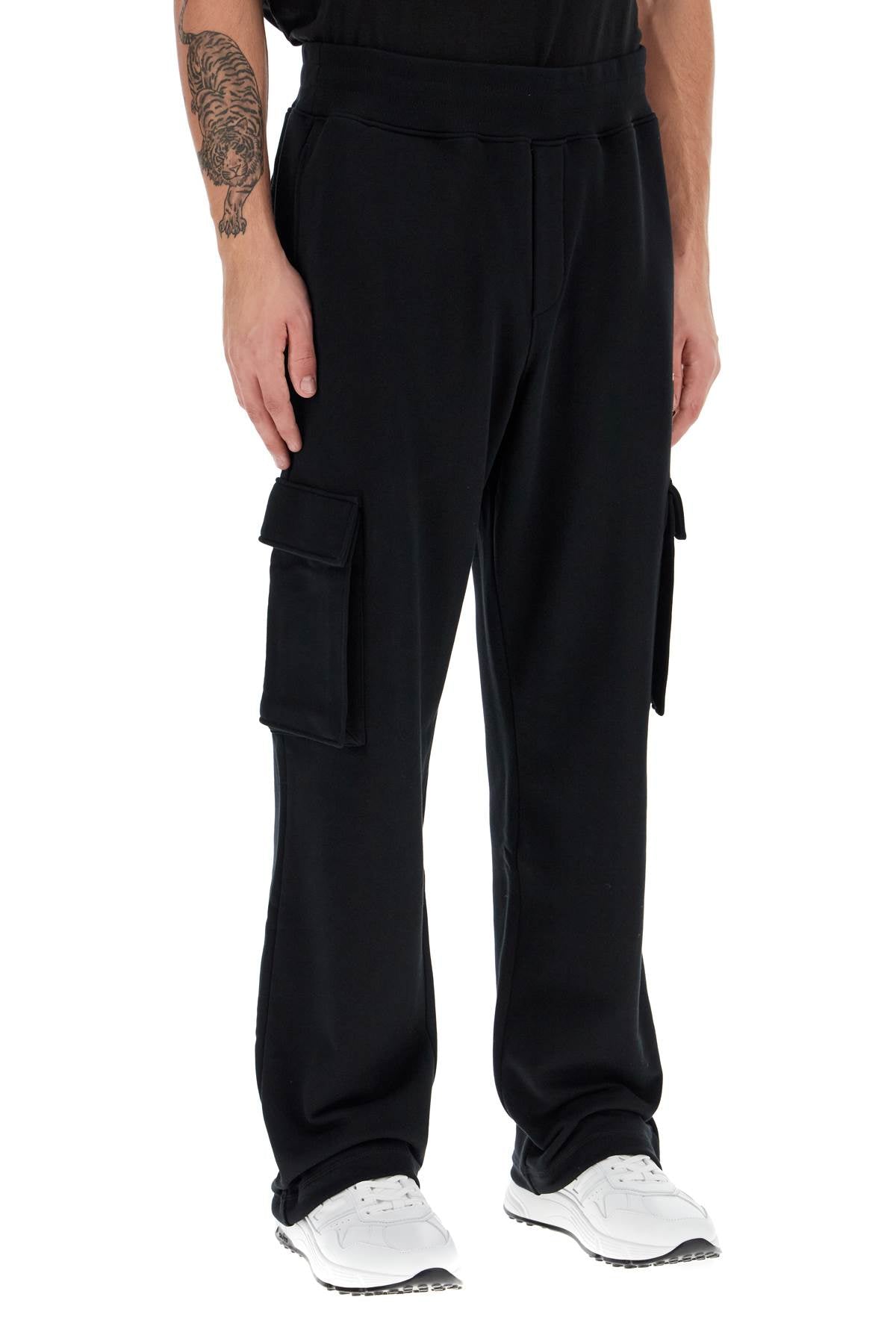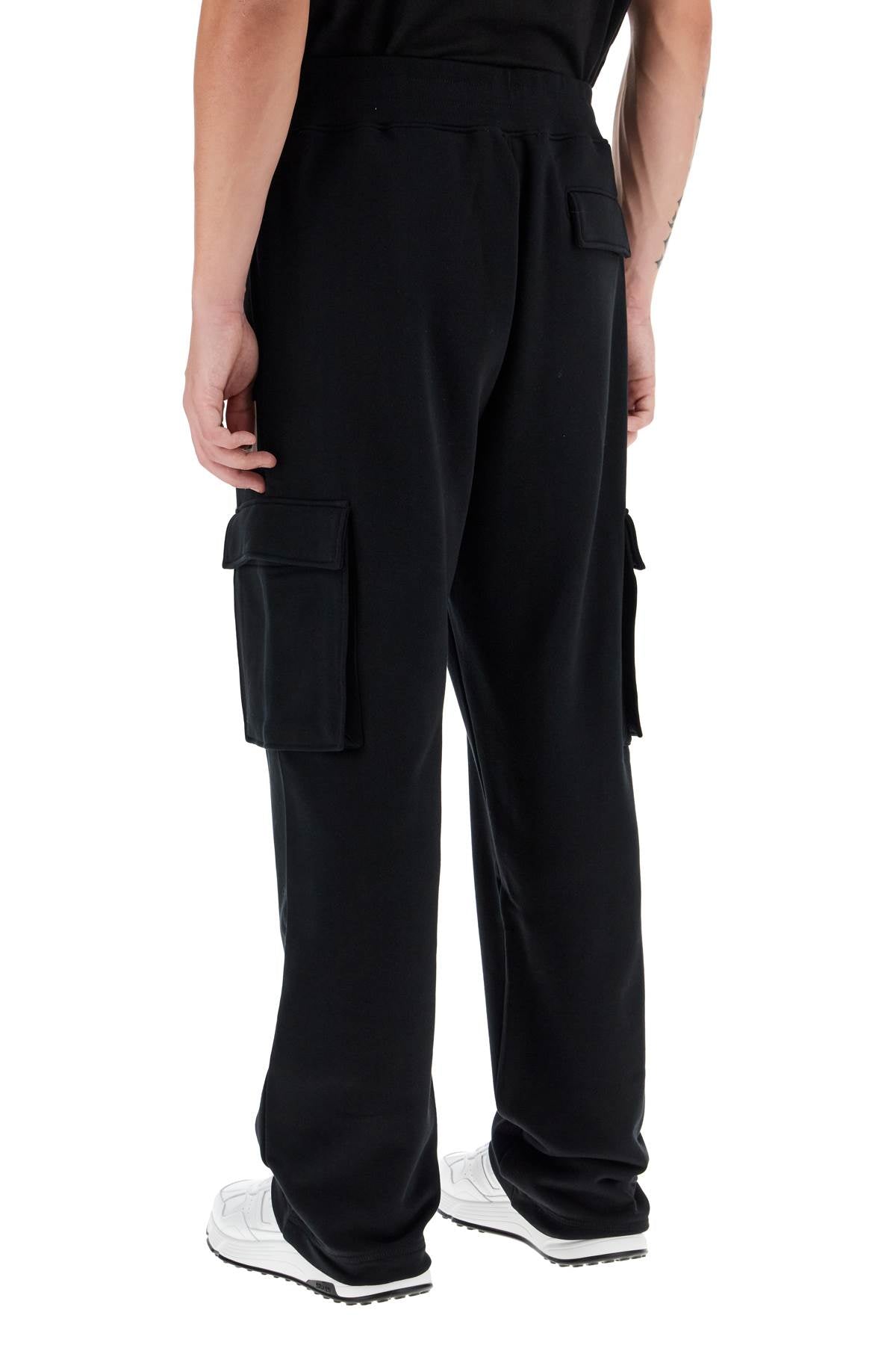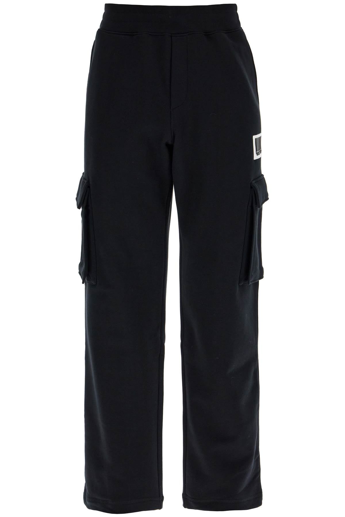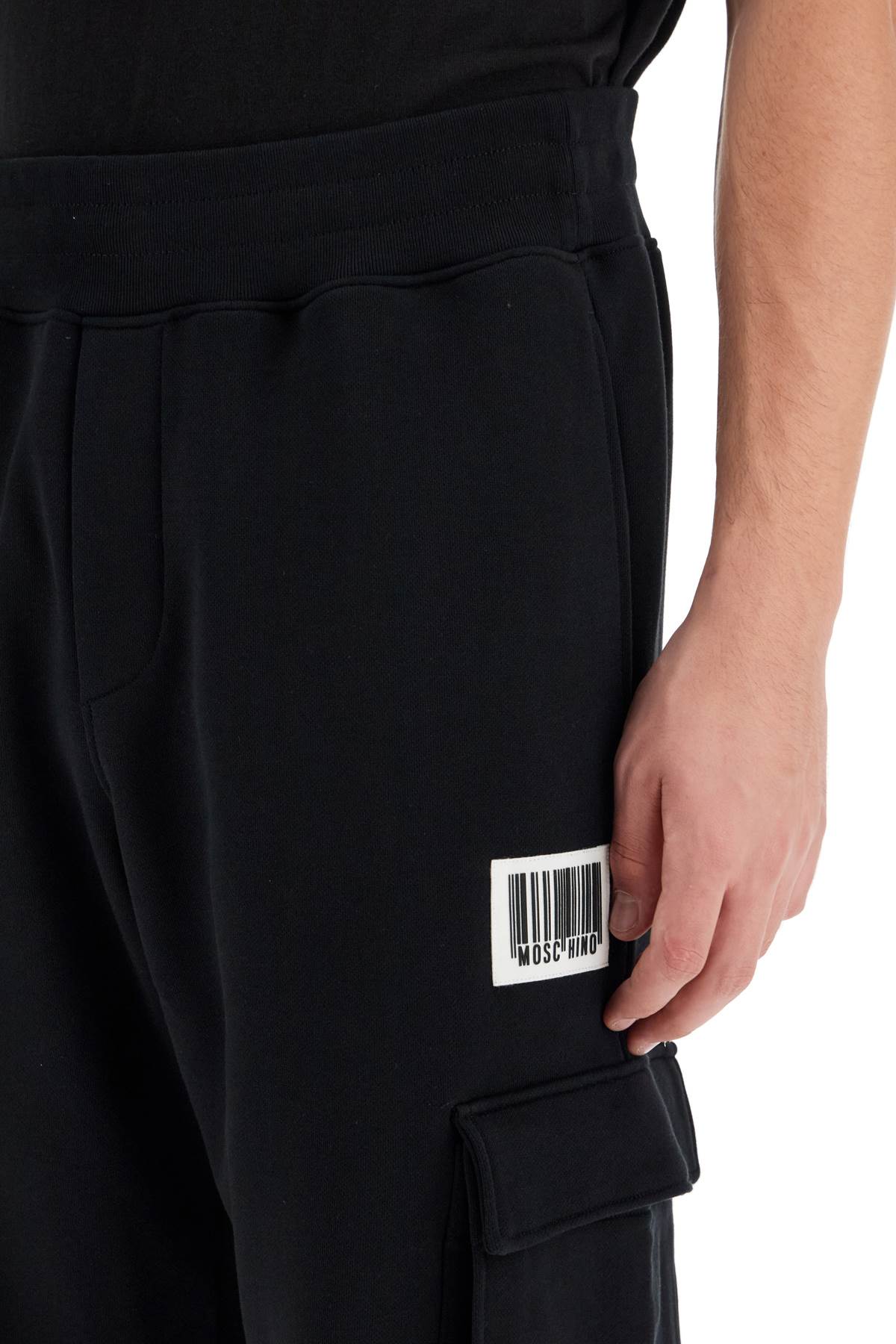 These Moschino joggers are made of brushed cotton jersey and feature a Barcode patch applied on the left leg. They have an elasticated waistband with an internal drawstring, French pockets, two cargo pockets, and one flap pocket at the back. The fit is regular. The model is 182 cm tall and wears size IT 48.