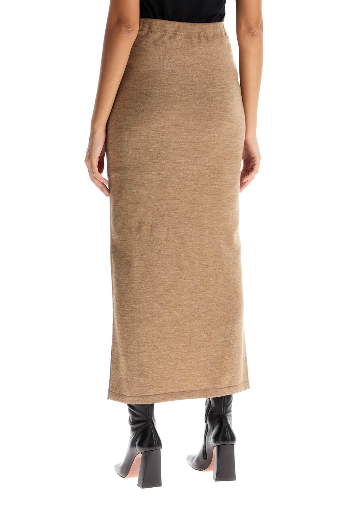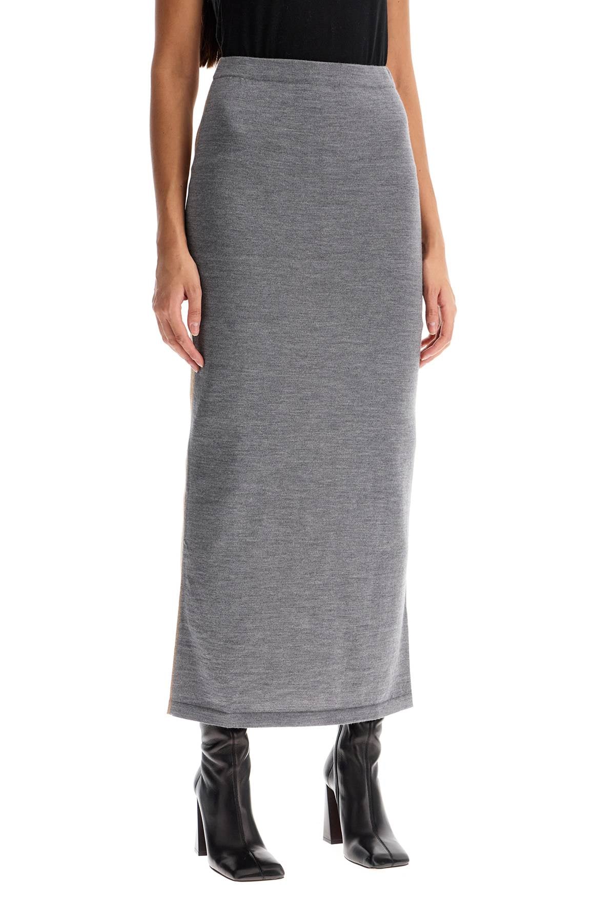 This long Moschino skirt is made of pure virgin wool and features a two-tone design. The column silhouette is finished with an elasticated waistband. The model is 177 cm tall and wears size IT 40.