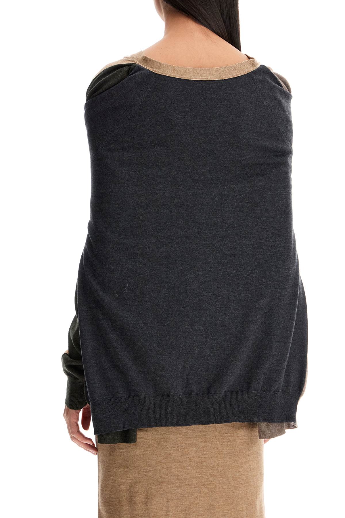 Made from pure virgin wool with a color-block design, this Moschino cardigan stands out for its unique construction with double sleeves. The deep V-neckline and classic button closure complete the oversized volume of the garment. The model is 177 cm tall and wears size IT 40.