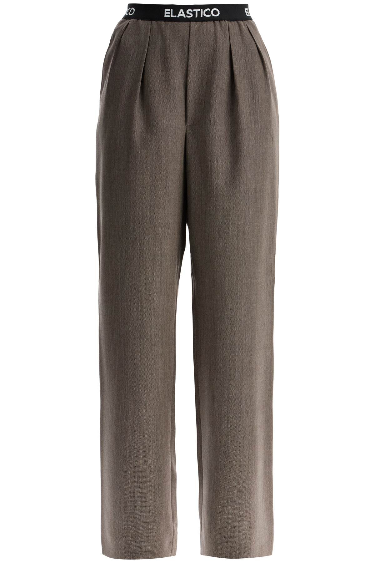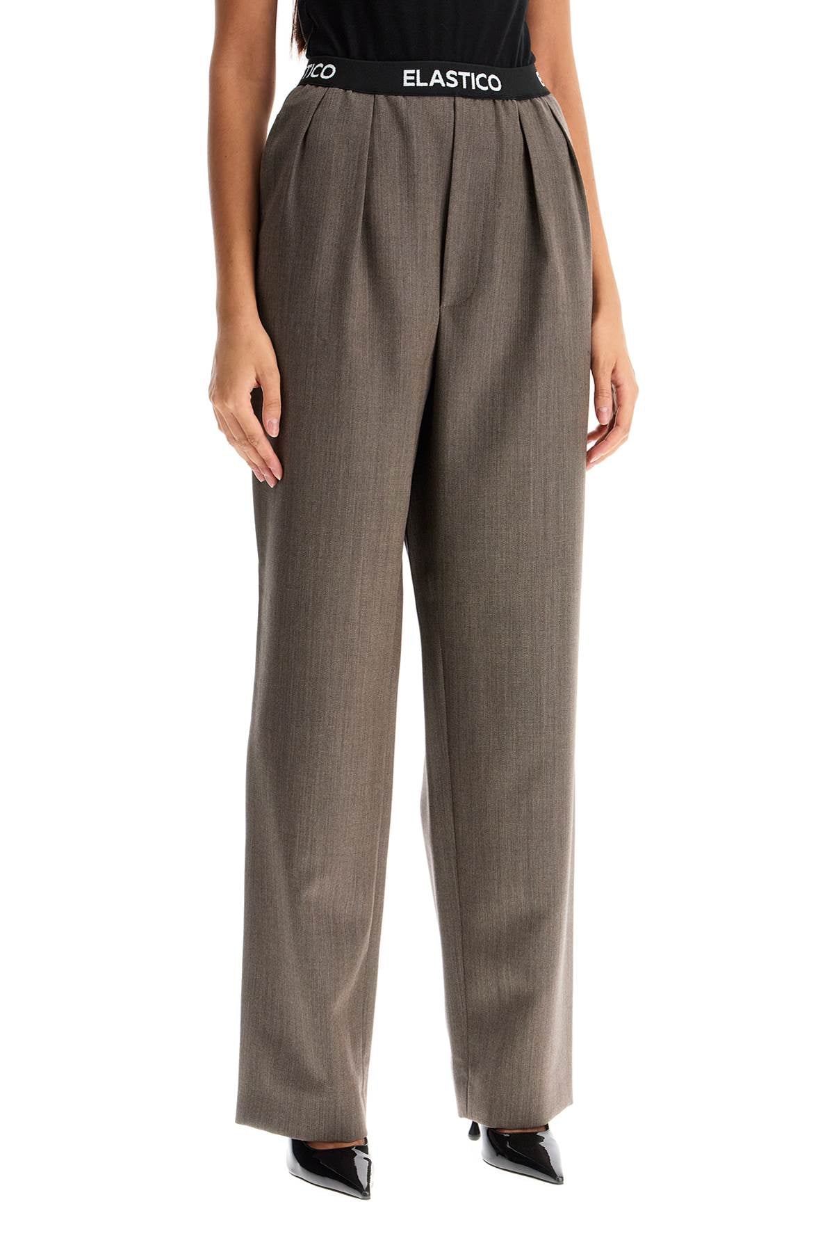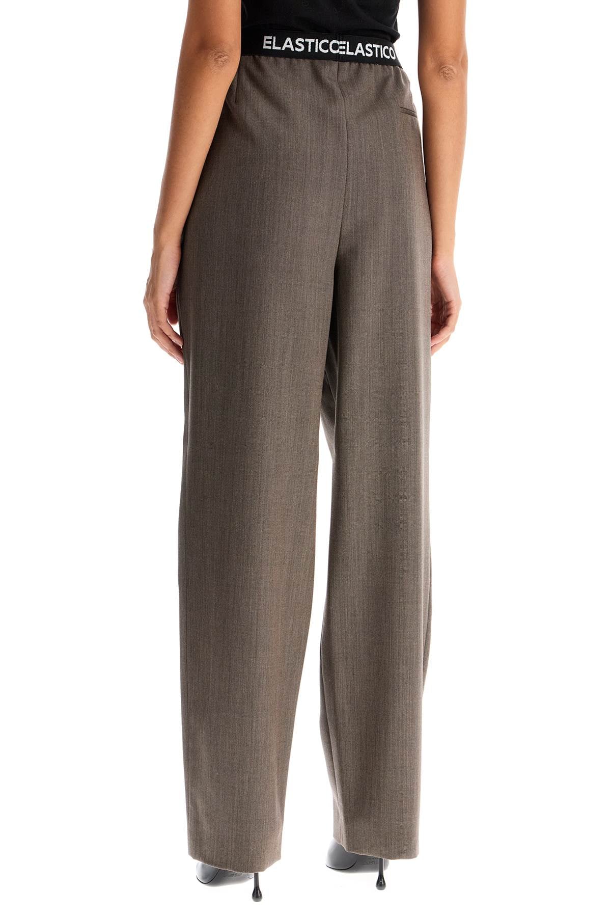 Moschino trousers in pure virgin wool with printed elastic waistband. It has a soft cut on the hips with double pleats and a slightly tapered leg. Side pockets and a back pocket complete the design. The model is 177 cm tall and wears size IT 40.