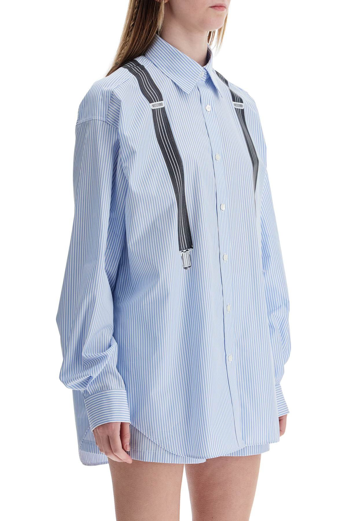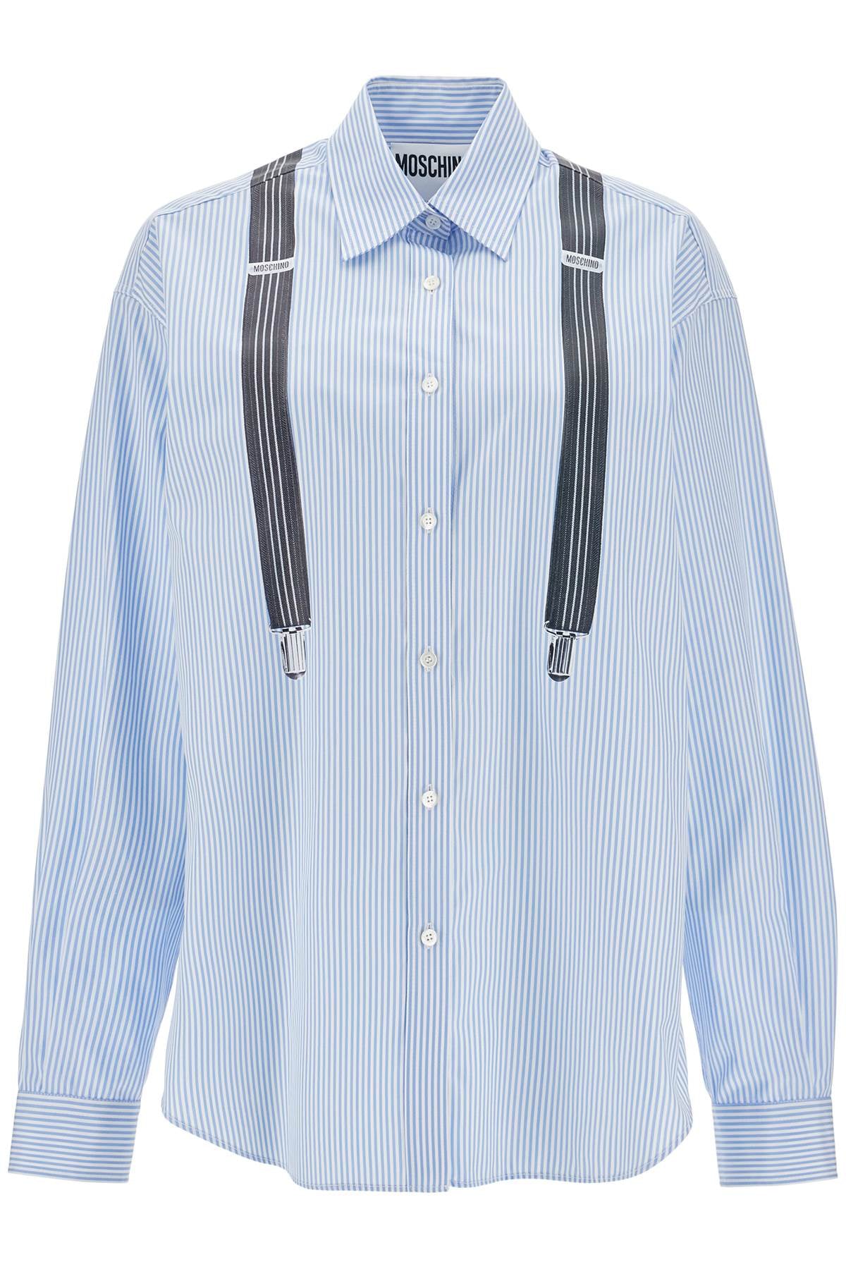 The Moschino women's shirt offers contemporary elegance in blue cotton with vertical stripes. Oversized and versatile, it combines comfort and style for a sophisticated look on any occasion.