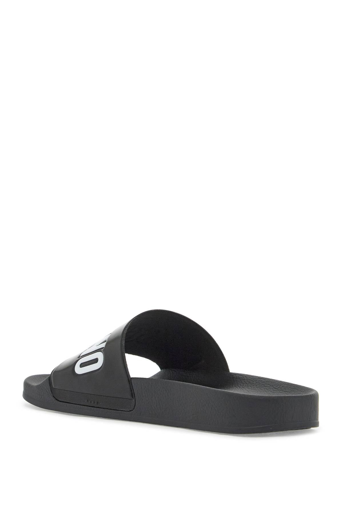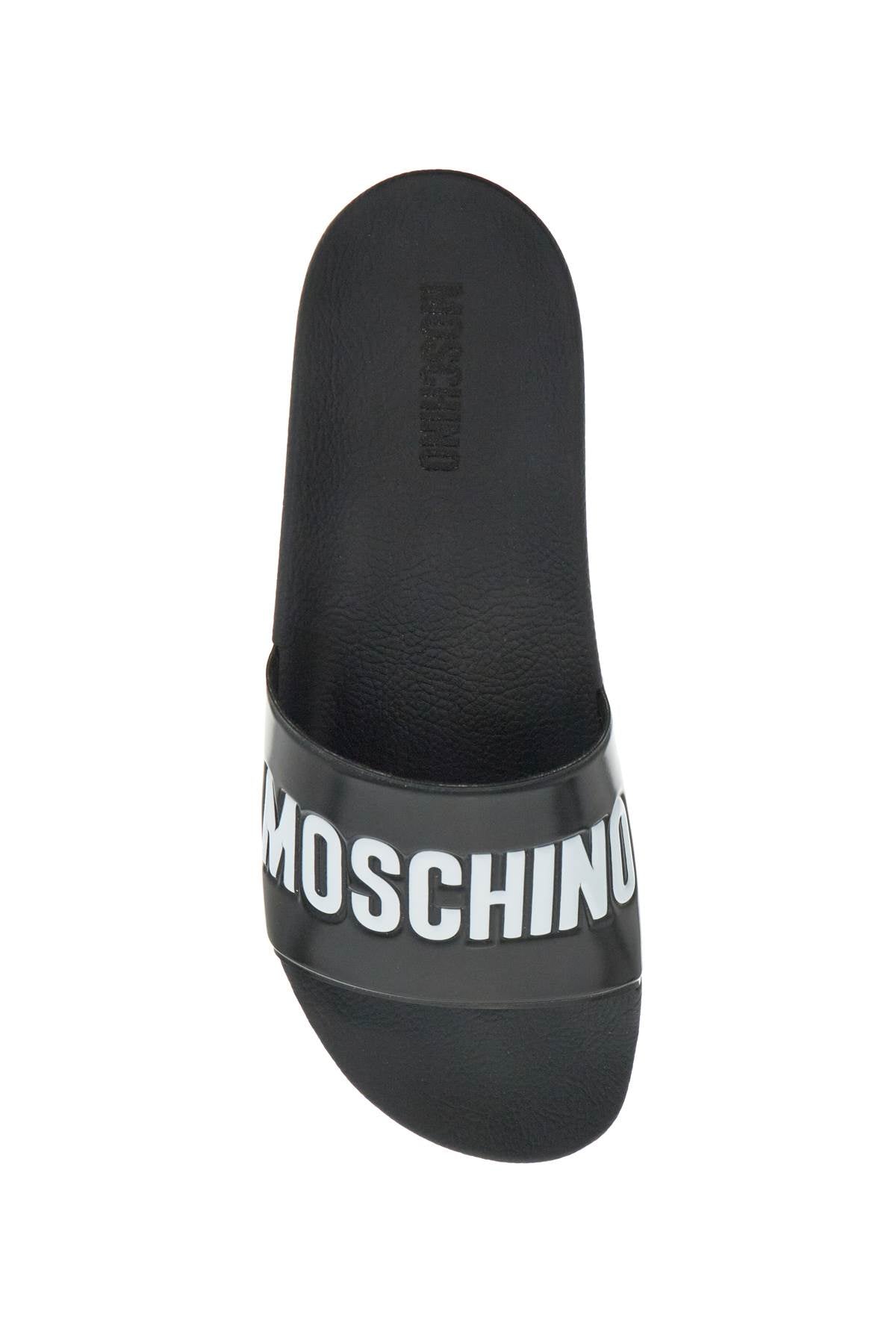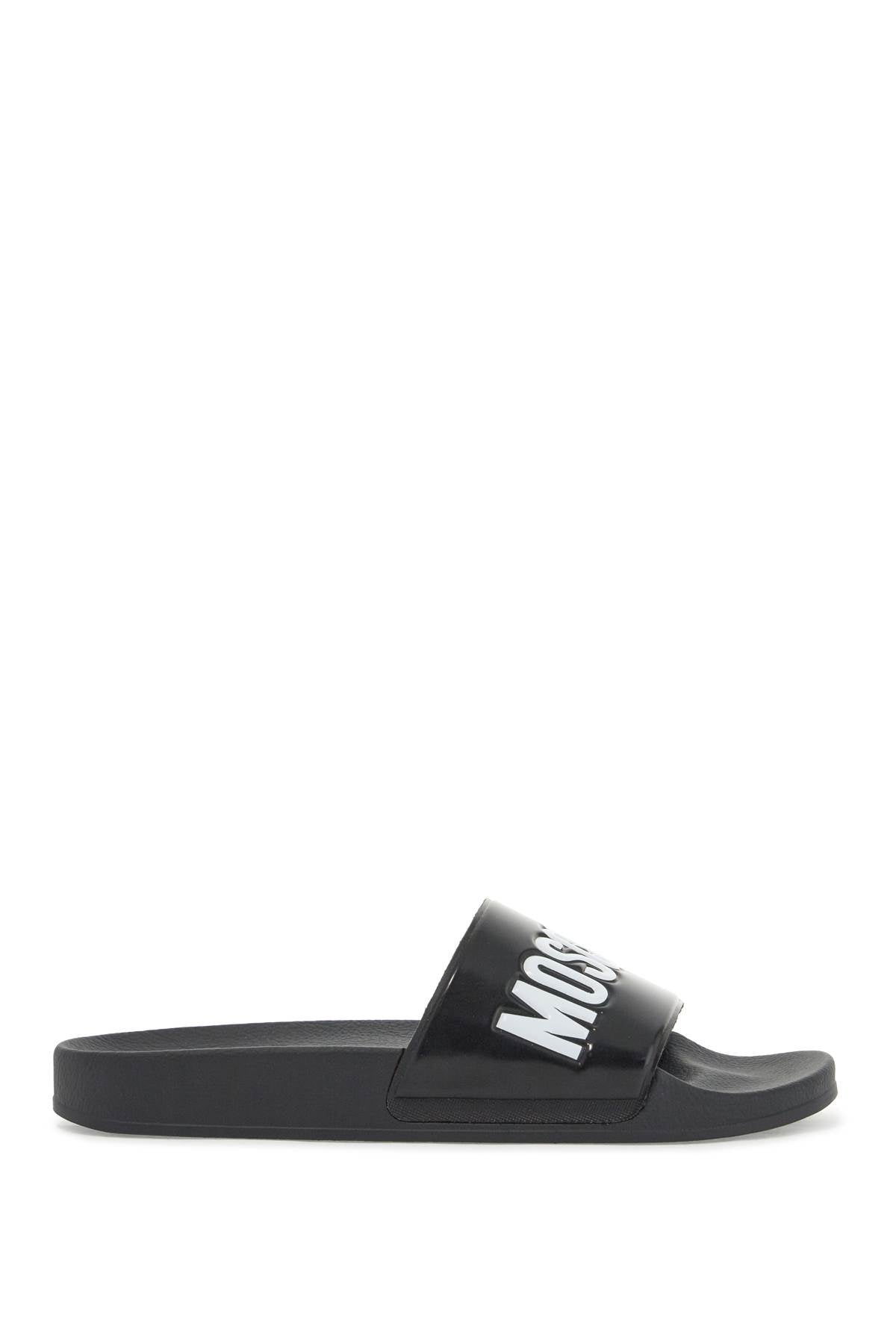 Moschino slides characterized by the PVC band with contrast printed logo lettering. Rubber sole with anatomical insole.