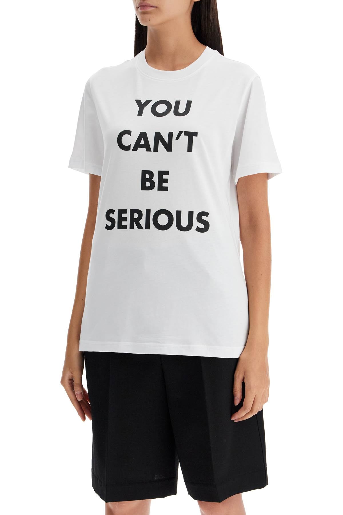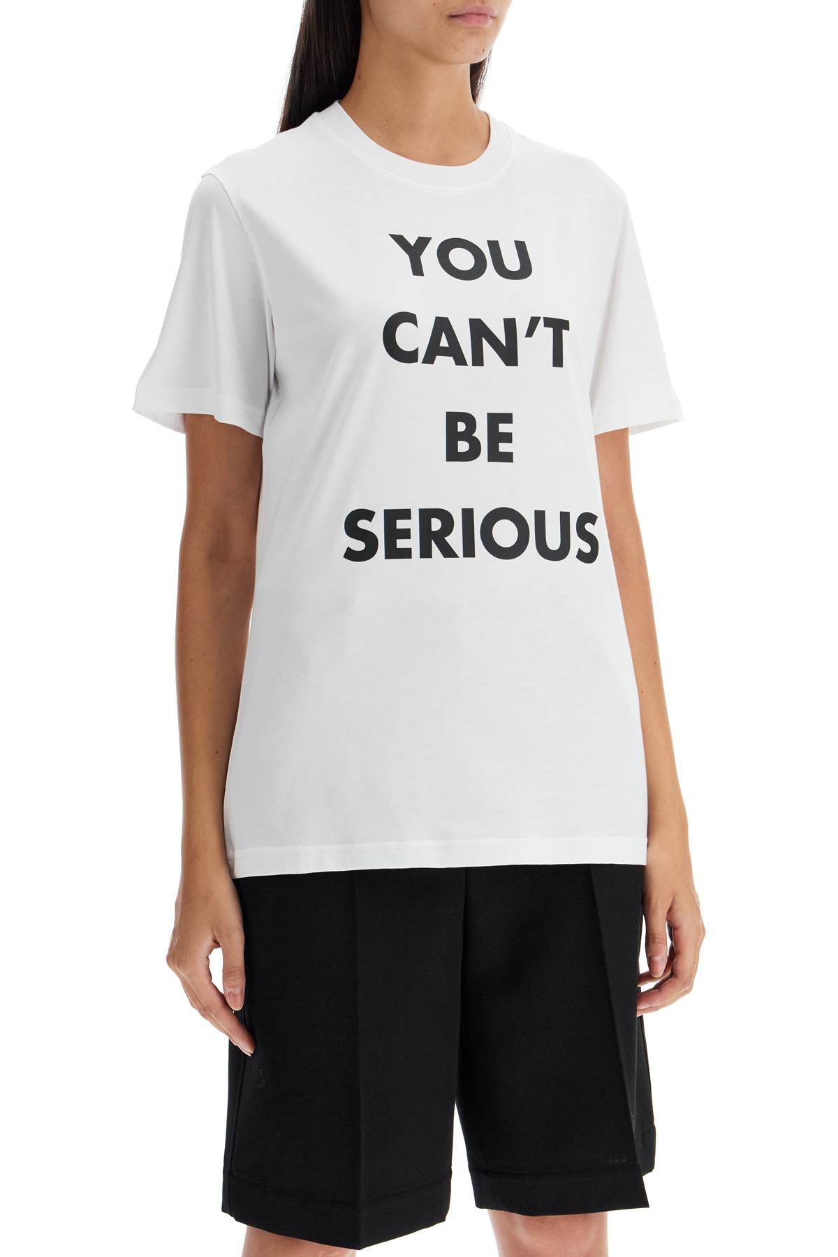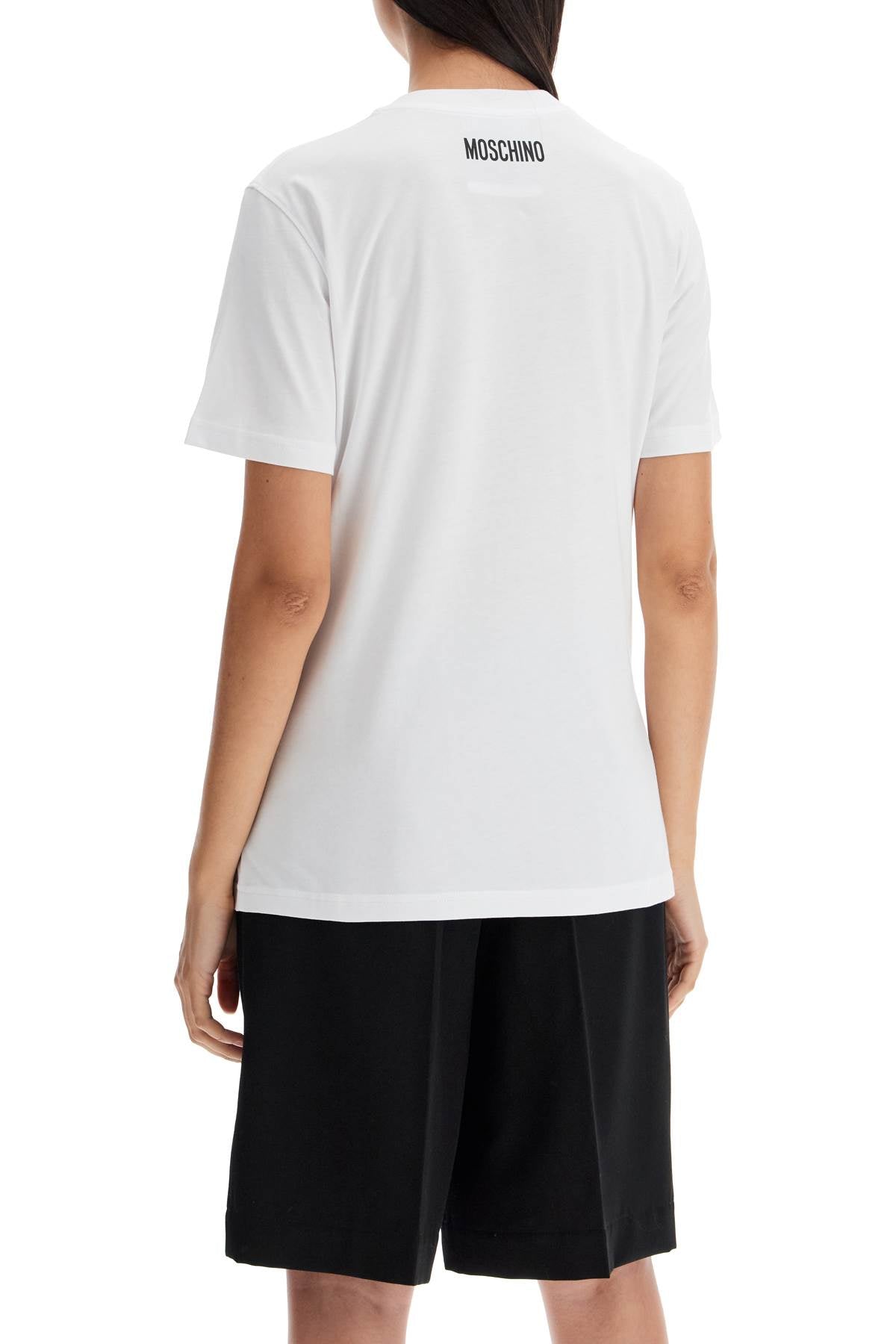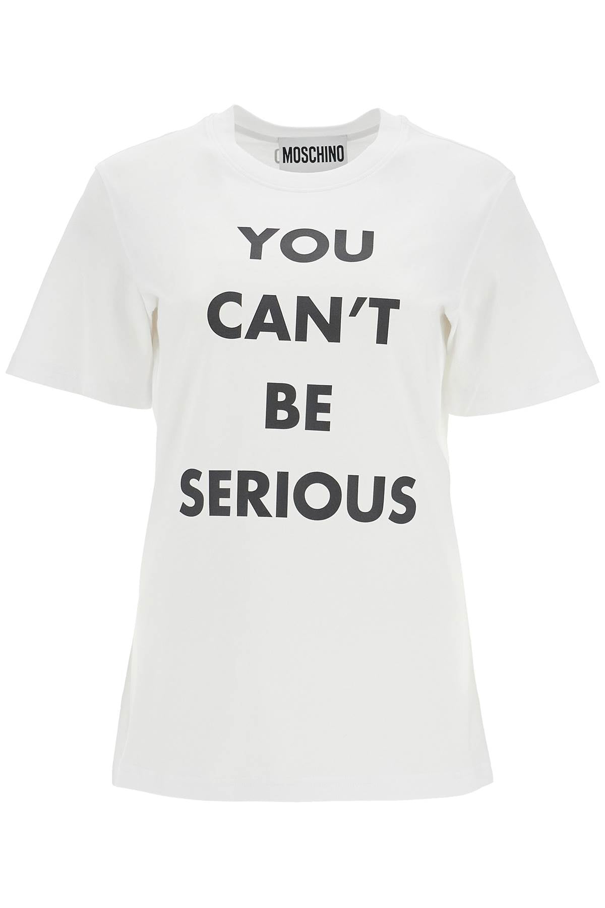 This Moschino crew neck t-shirt is made of cotton jersey with contrasting lettering print on the front and logo lettering printed on the back of the collar. Relaxed fit. The model is 187 cm tall and wears size XS.