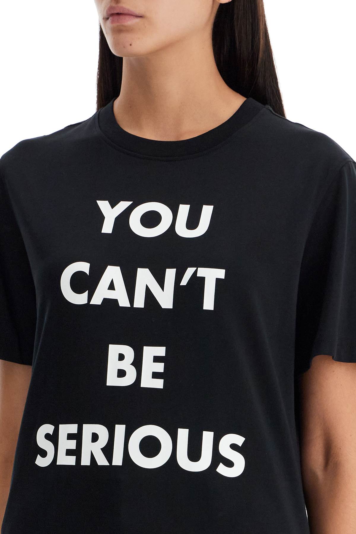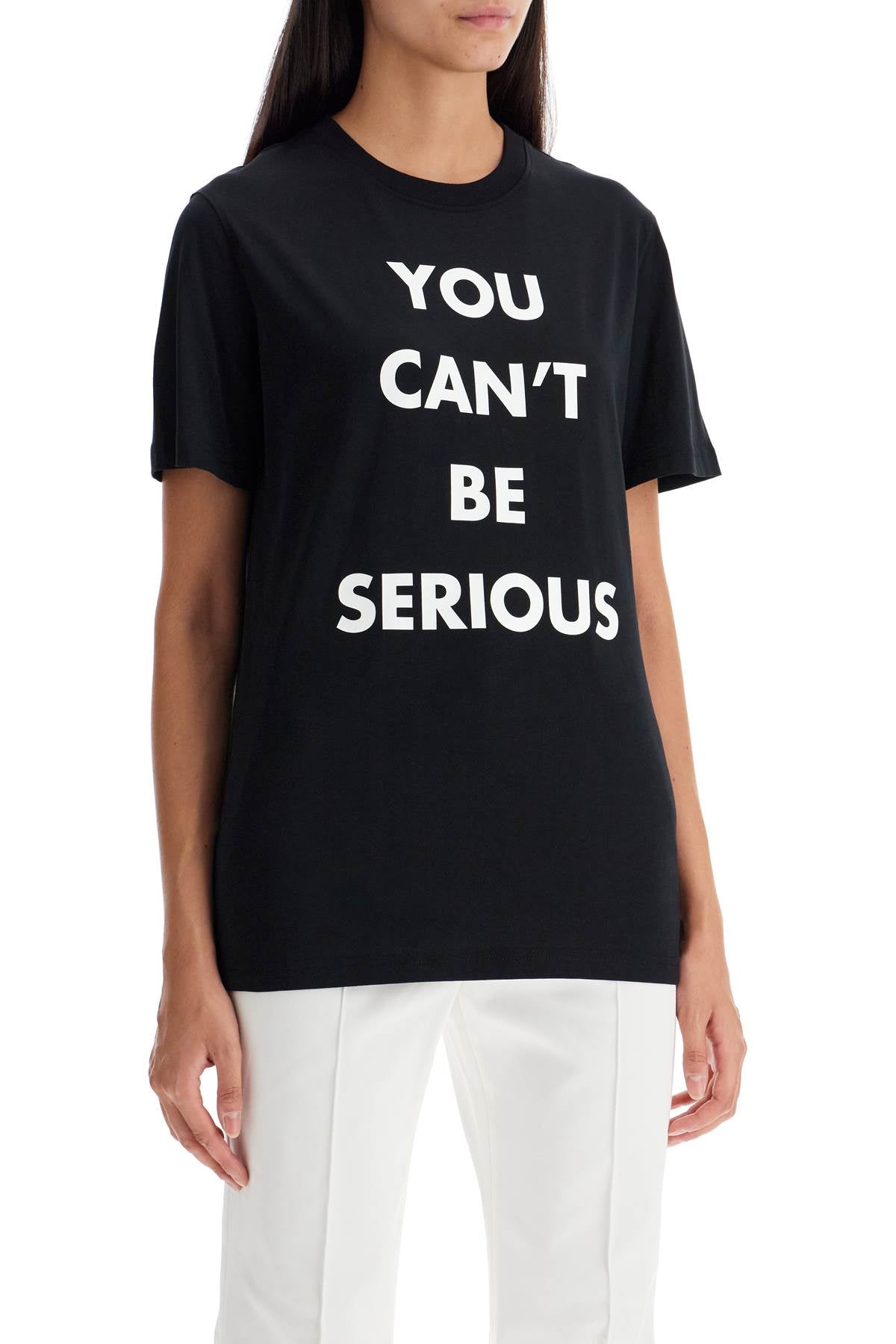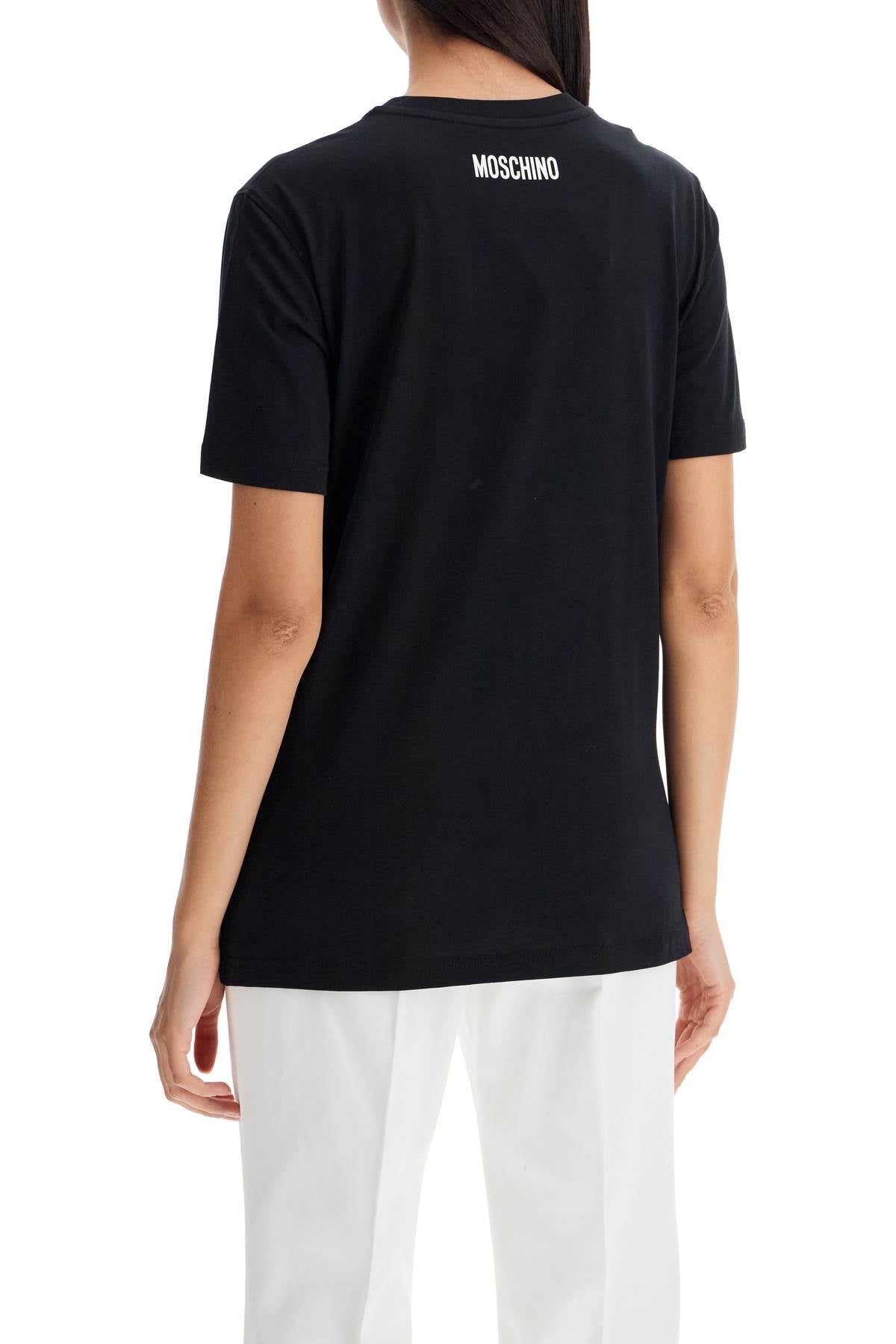 This Moschino crew neck t-shirt is made of cotton jersey with contrasting lettering print on the front and logo lettering printed on the back of the collar. Relaxed fit. The model is 187 cm tall and wears size XS.