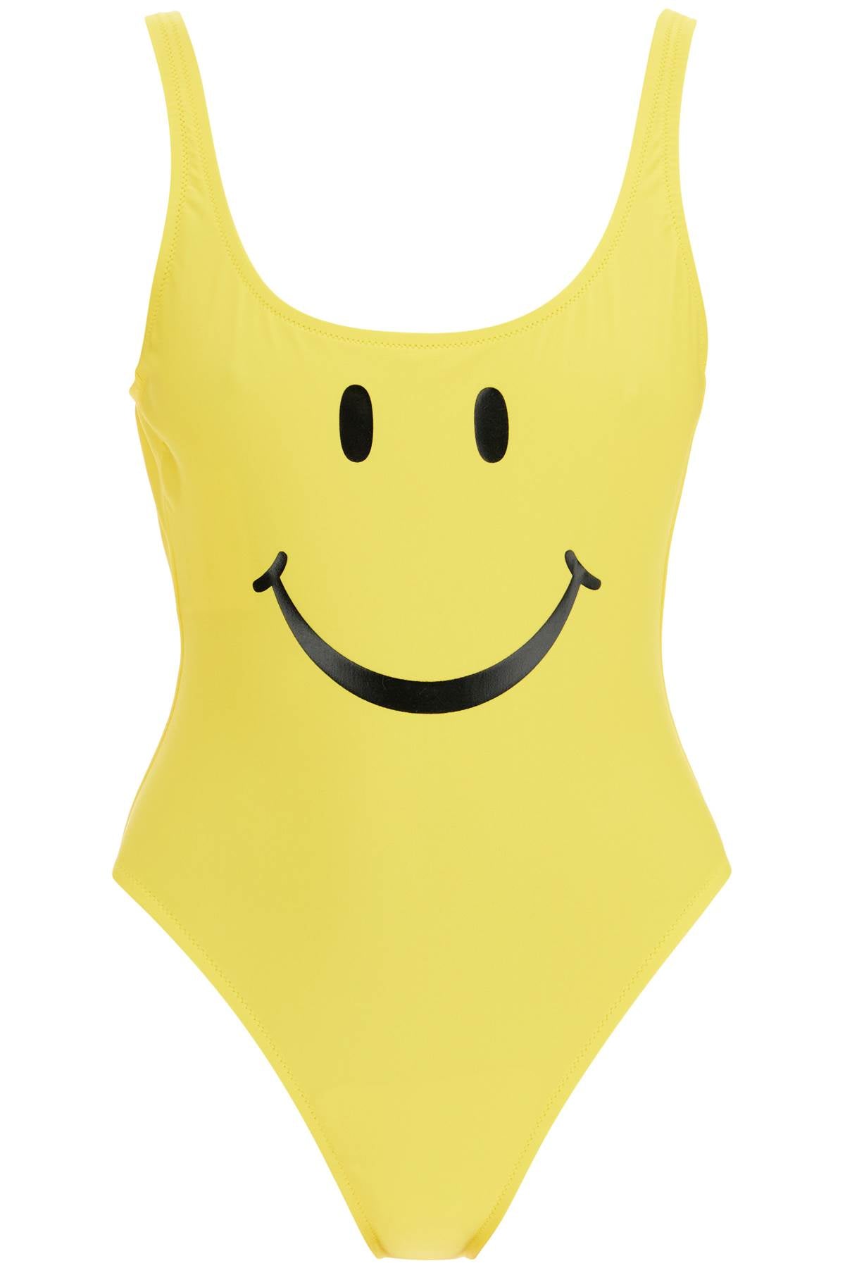 This Moschino one-piece swimsuit is made of stretch lycra in collaboration with Smiley® . It features a round neckline and a wide open back. Fully lined. The model is 177 cm tall and wears an IT size 40.
