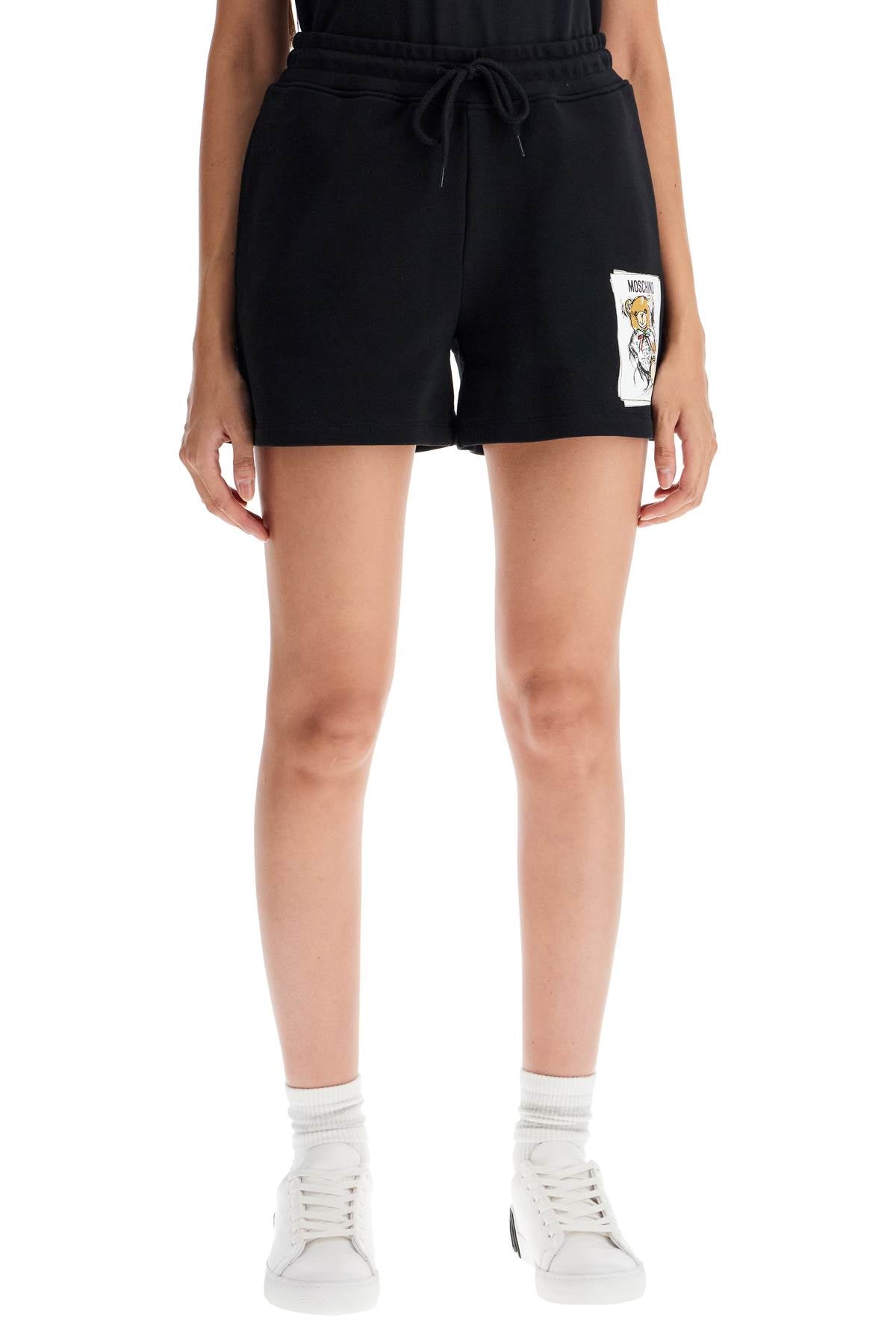 Moschino sport shorts made of pure cotton slub jersey, enriched with a Teddy Bear print on the leg. They feature an adjustable elasticated waistband with drawstring and French side pockets. Relaxed fit. The model is 177 cm tall and wears an IT size 38.
