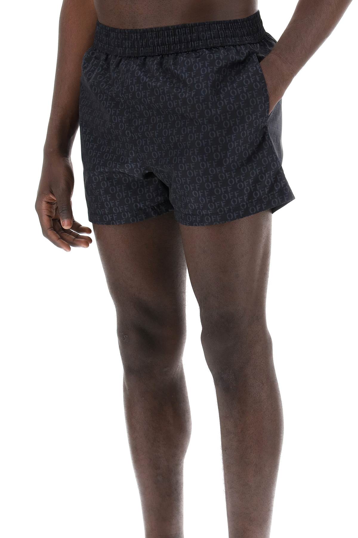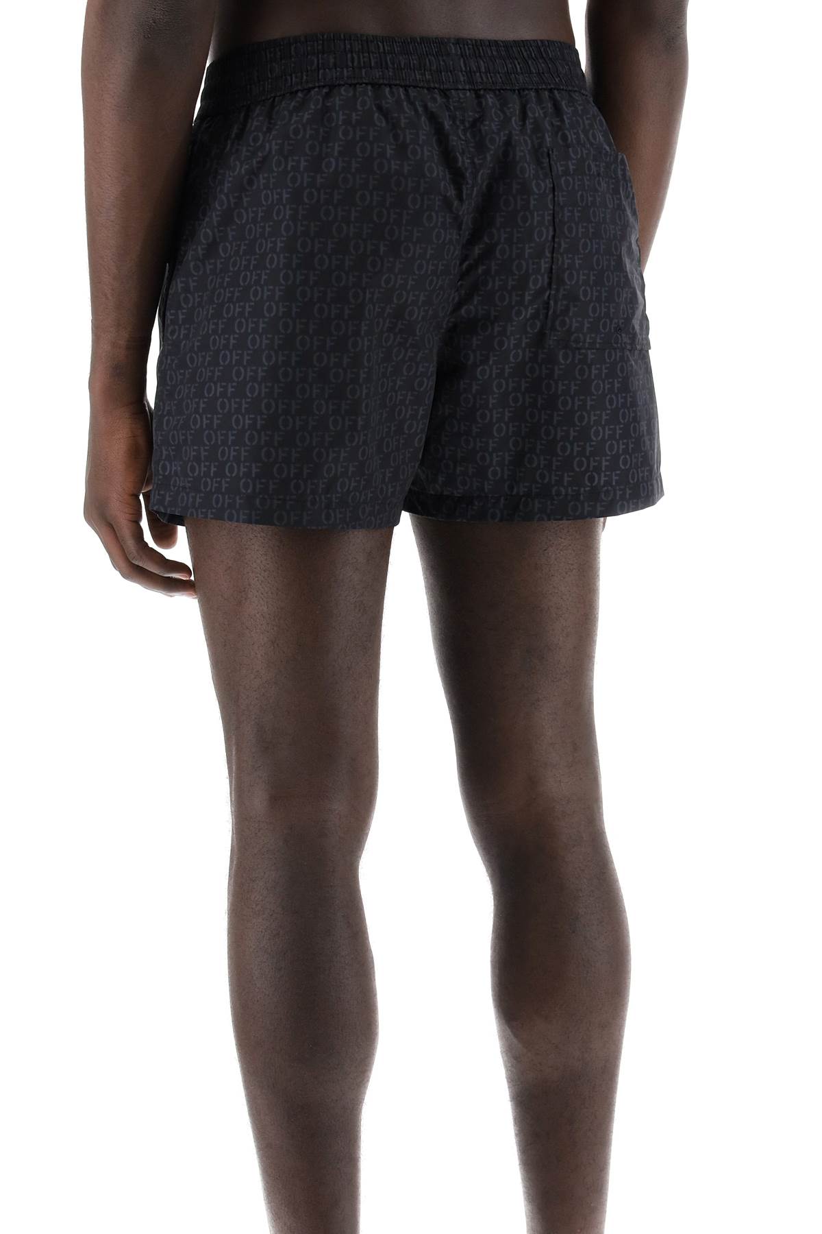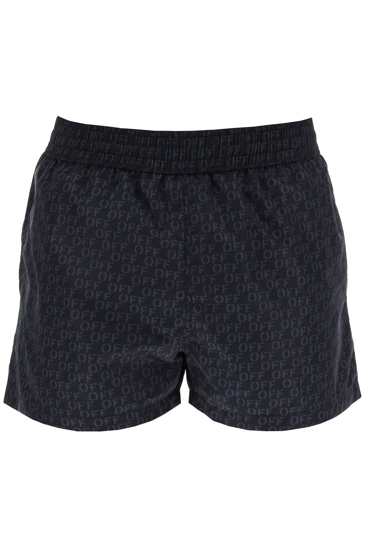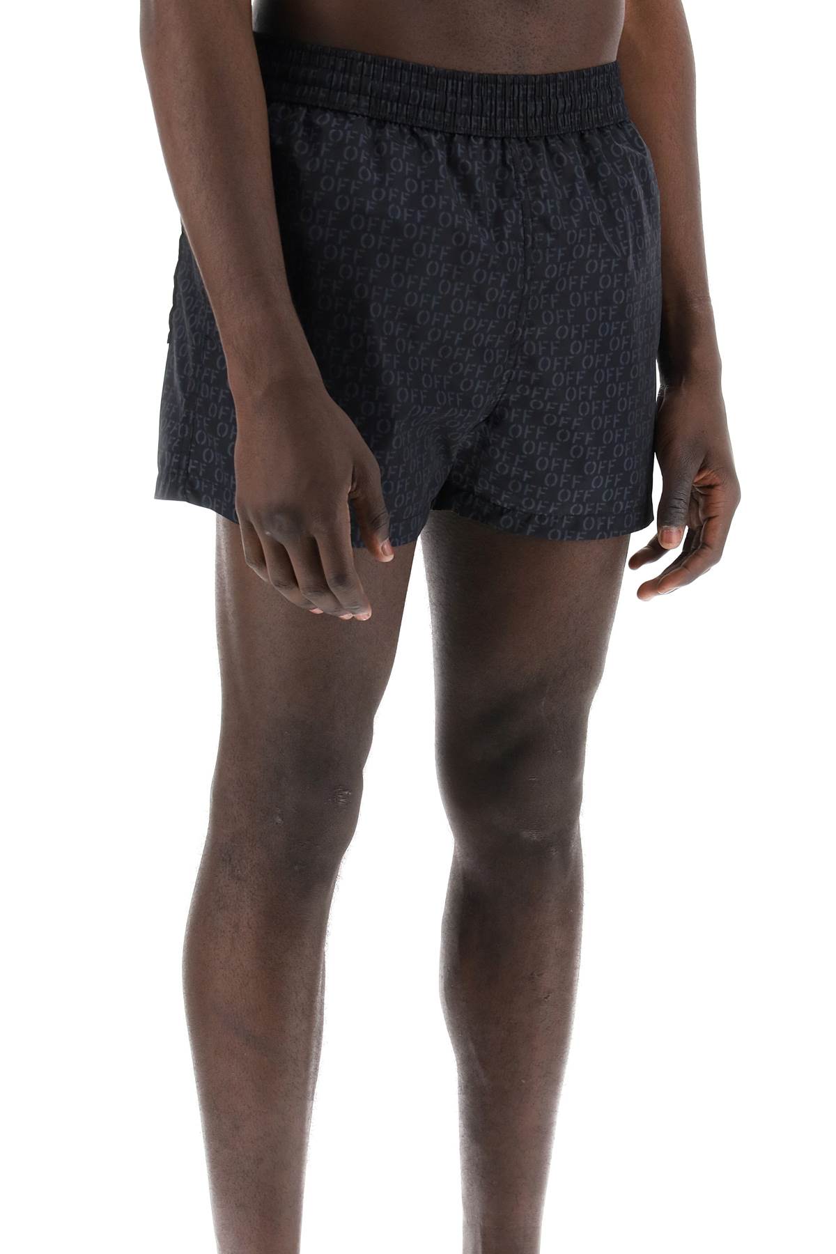Off-White's women's Bermuda shorts are made of nylon poplin with the iconic OFF jacquard pattern throughout. The elasticated waistband is adjustable with an internal drawstring, and they feature side pockets inserted into the seams, a patch pocket on the back, and a mesh lining. They also come with a travel pouch. The model is 187 cm tall and wears a size M.