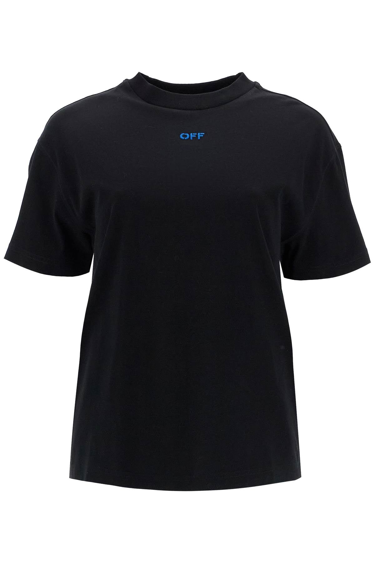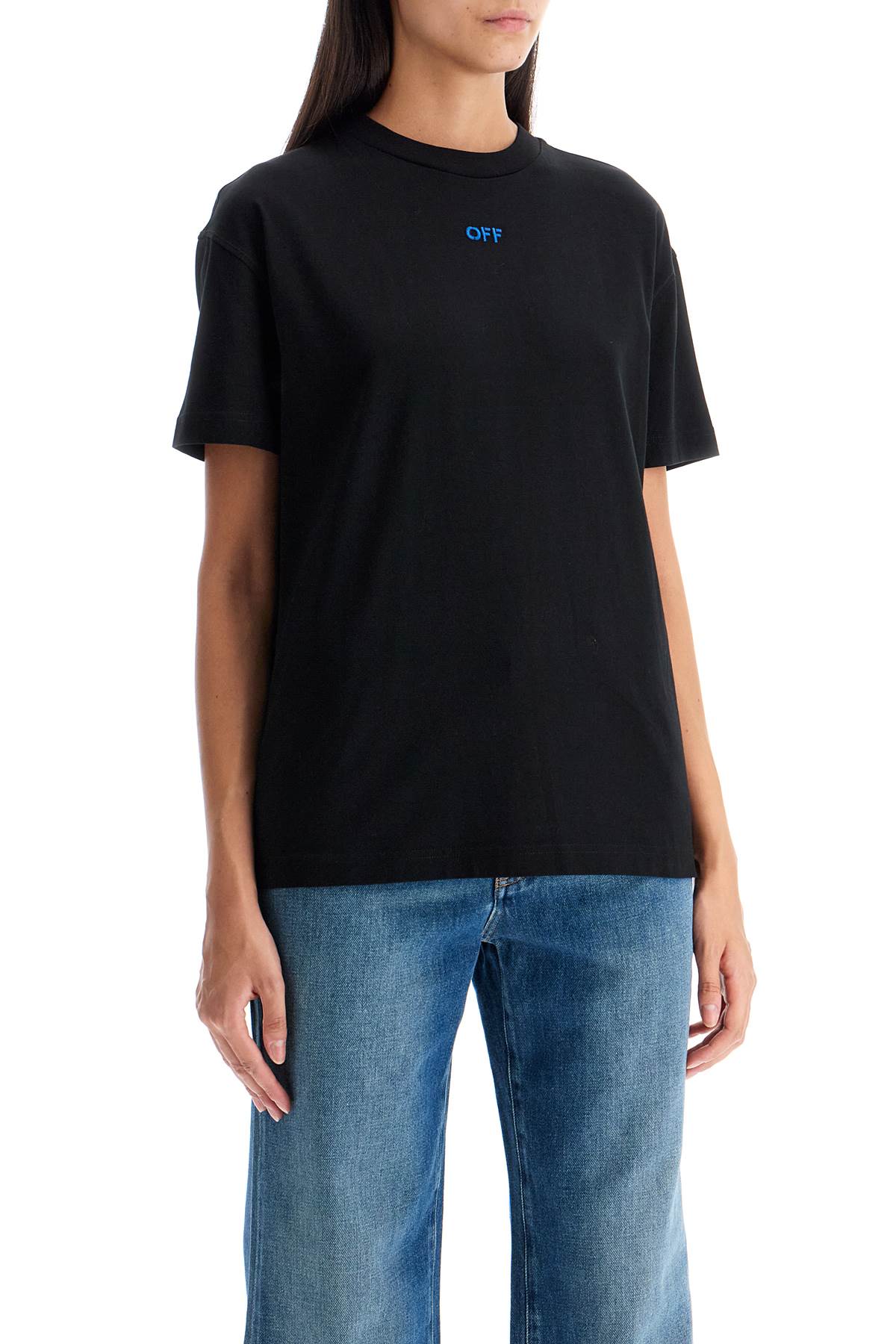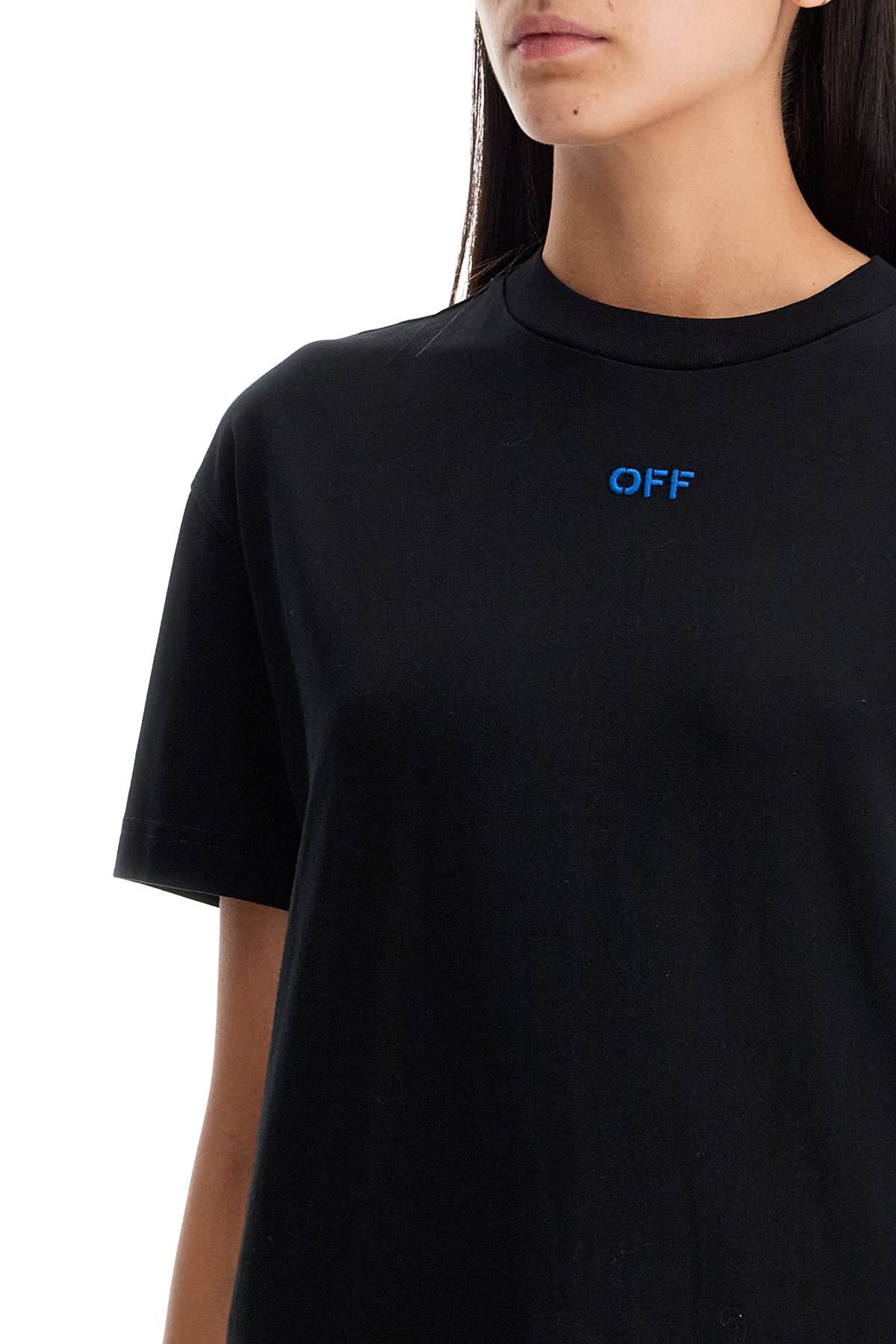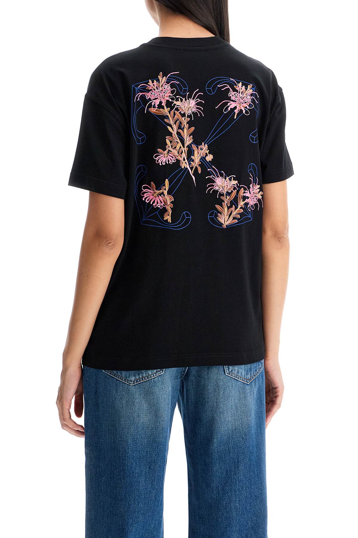 This Off-White crew neck T-shirt is embroidered with a Pinkflower Arrow motif on the back and features a logo detail in the center of the chest. Made from cotton jersey with a relaxed fit, it is finished with ribbed trim around the neckline. The model is 177 cm tall and wears size XS.