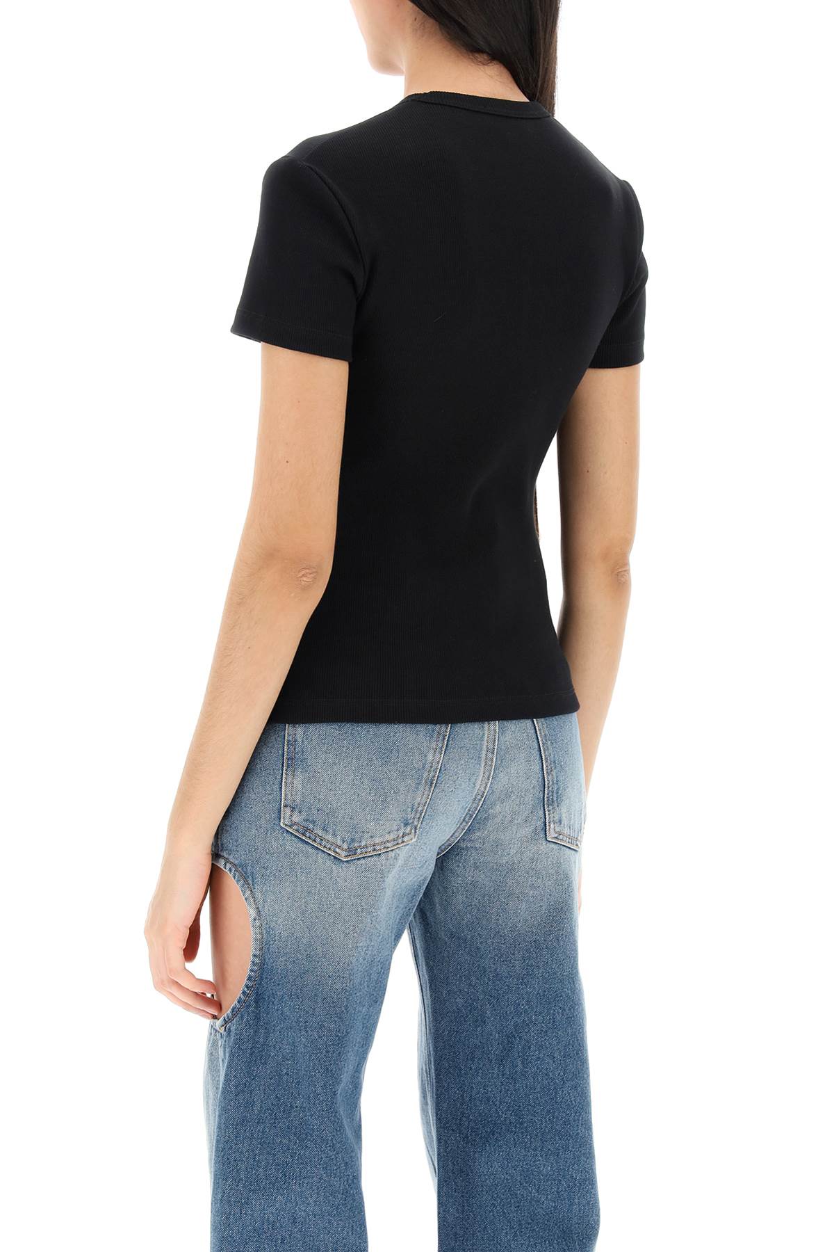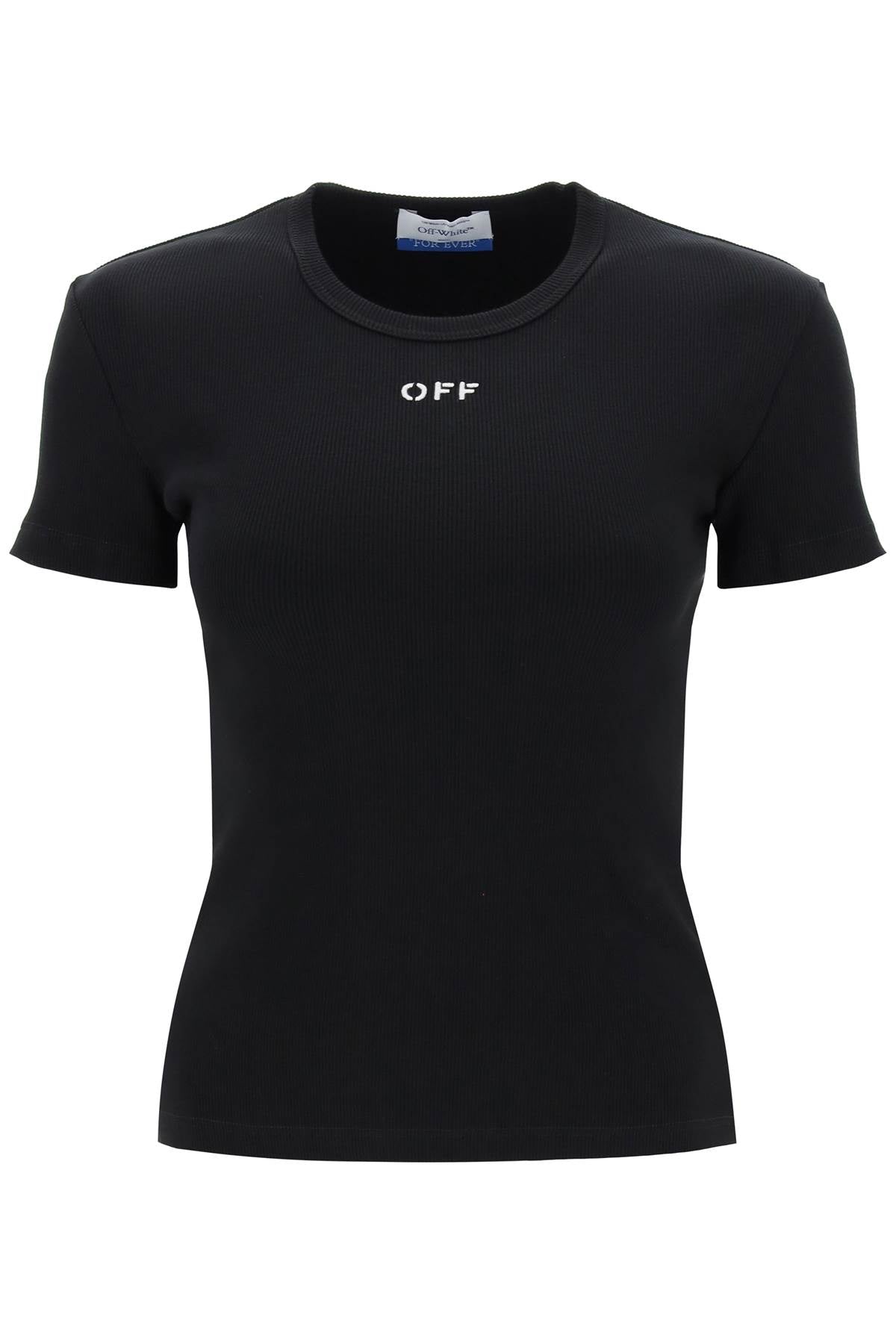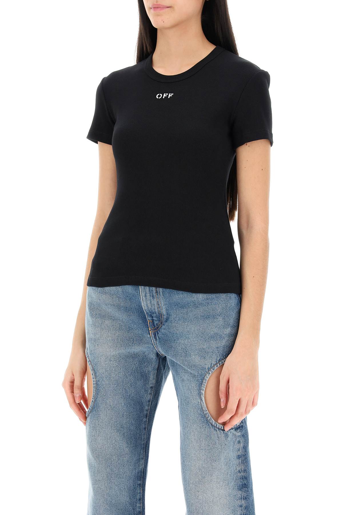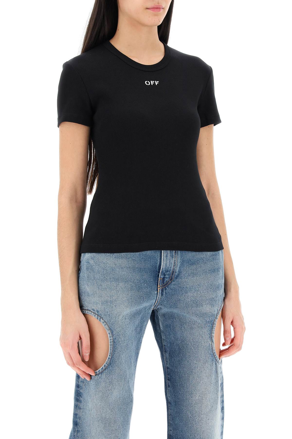 Off-White crewneck T-shirt in ribbed cotton jersey with contrast OFF embroidery at center chest. Slim fit. The model is 177 cm tall and wears size IT 38.
