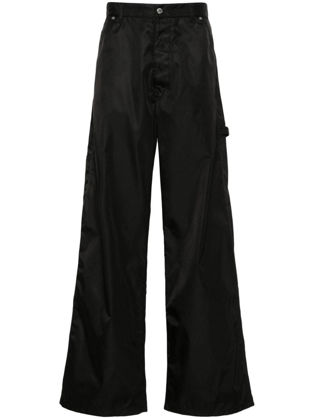 black recycled polyamide blend taffeta belt loops two diagonal pockets to the sides side patch pocket two rear patch pockets tool loop signature Arrows motif embroidered to the rear wide leg concealed fly and button fastening This item is made from at least 50% recycled or upcycled materials. For recycled synthetic clothing products, we highly recommend using a microfibre-catching washing bag to ensure that no microplastics that can pollute water are released in the process. Learn more about what makes a product Conscious on our Conscious Criteria page Size and Fit - This piece fits true to size. We recommend you get your regular size. Model is 1,84m / 6ft 1in wearing size 48 (IT)