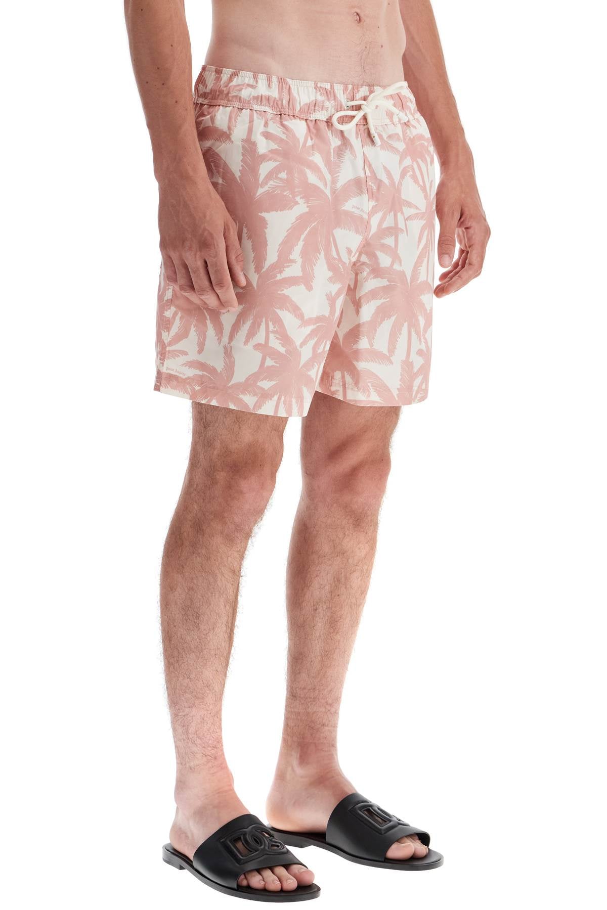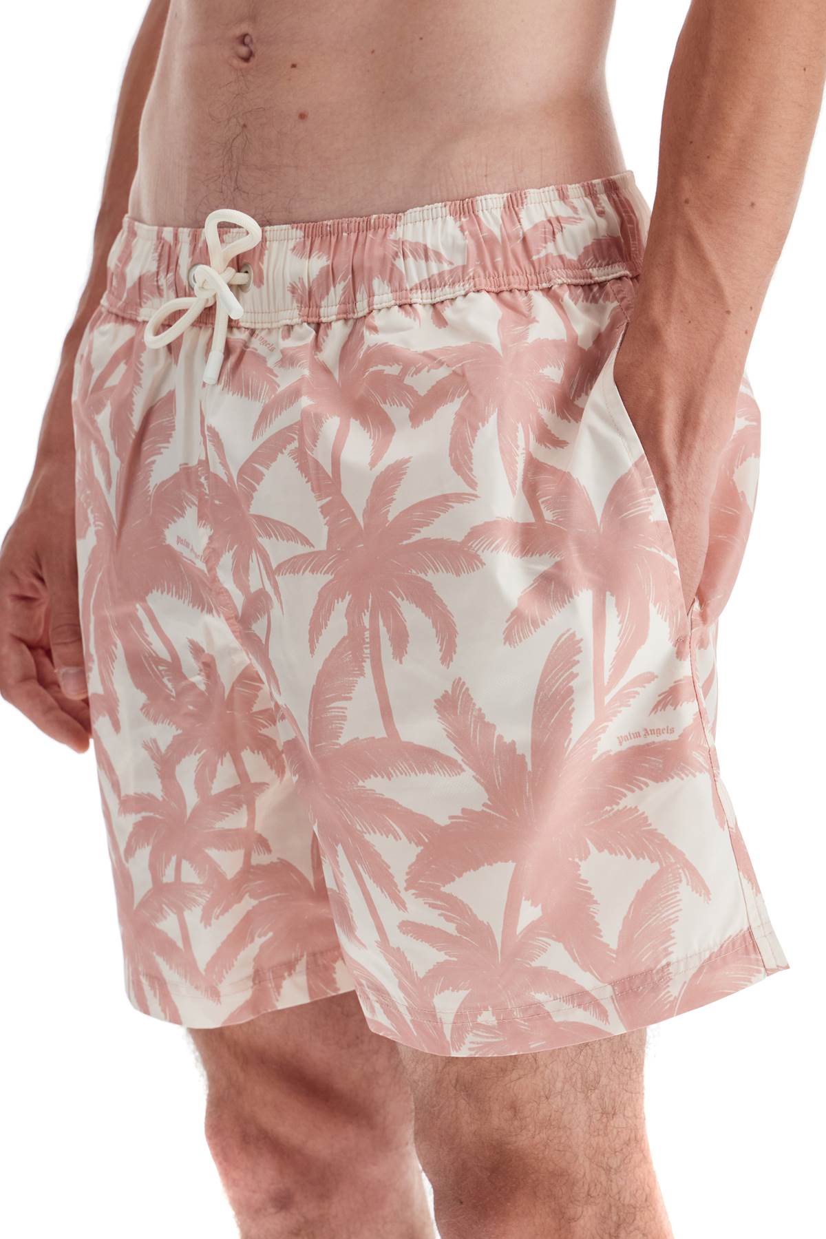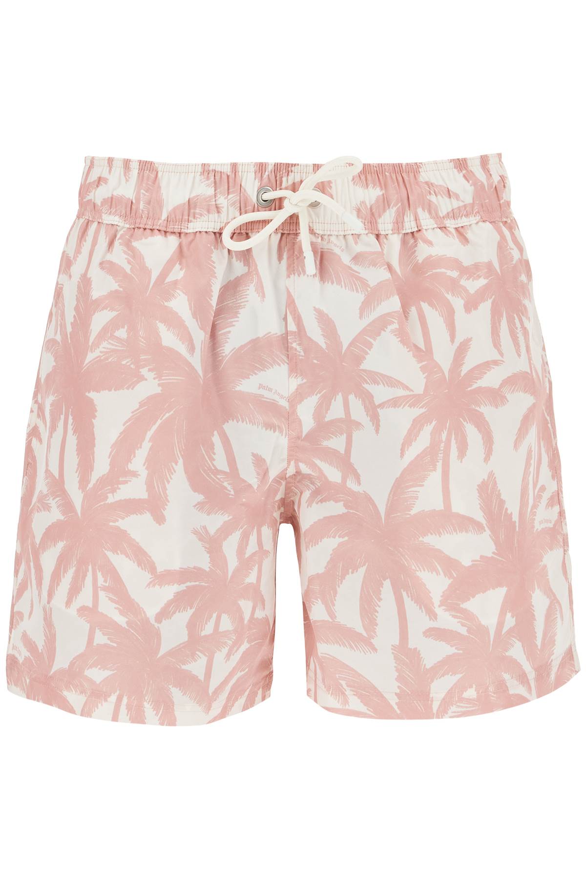 Palm Angels women's Bermuda shorts decorated with an all-over palm print. Featuring a relaxed fit with an elasticated waistband and drawstring, they are equipped with two side pockets and one back pocket. Inner mesh lining. The model is 187 cm tall and wears size M.