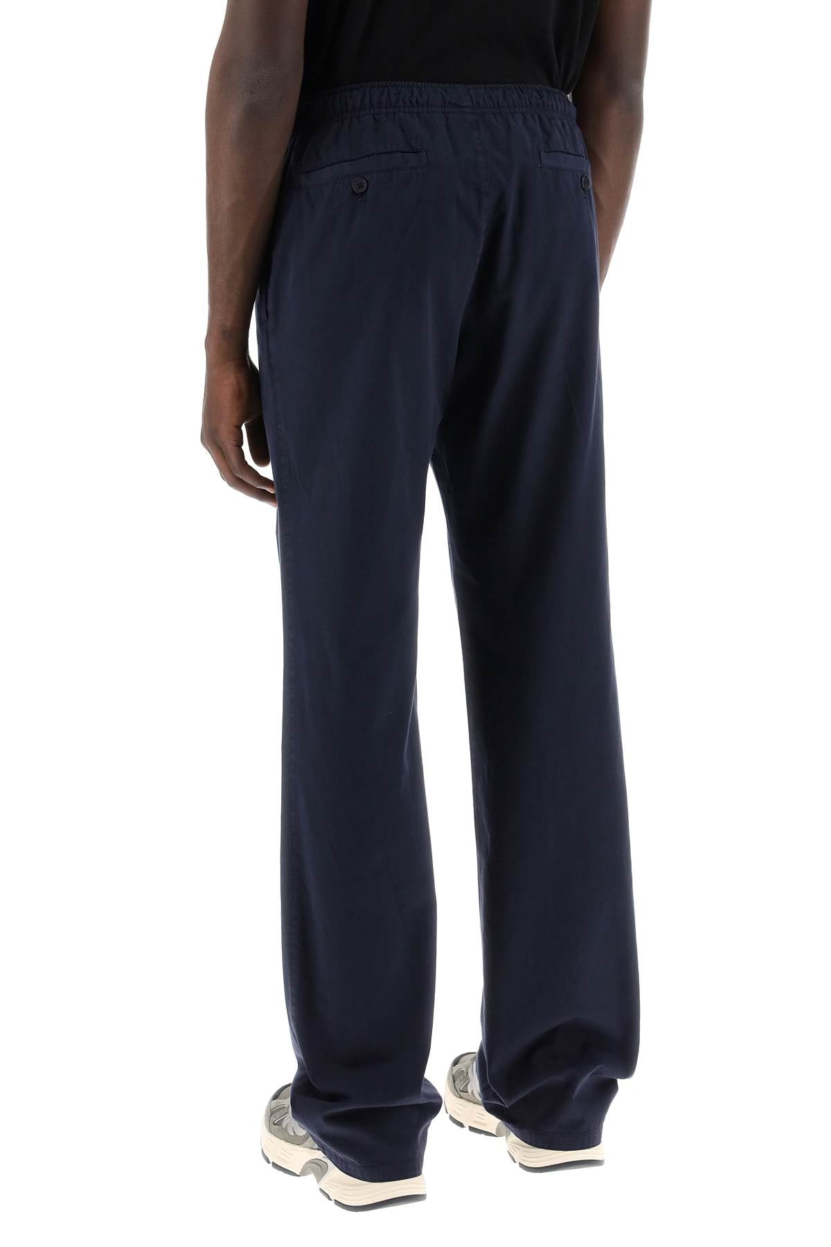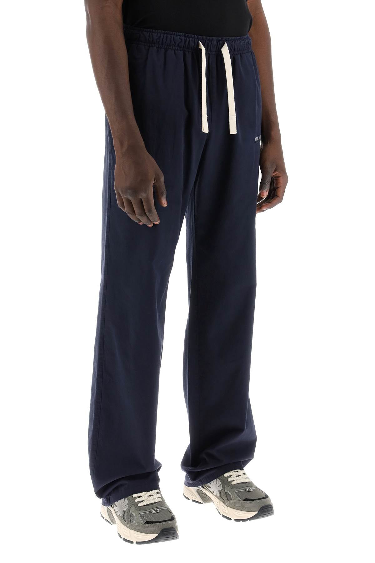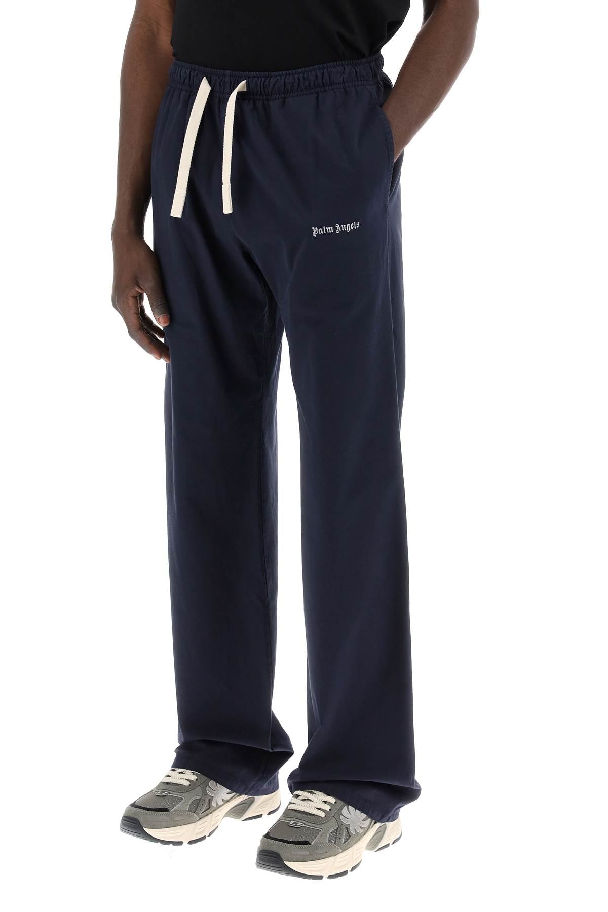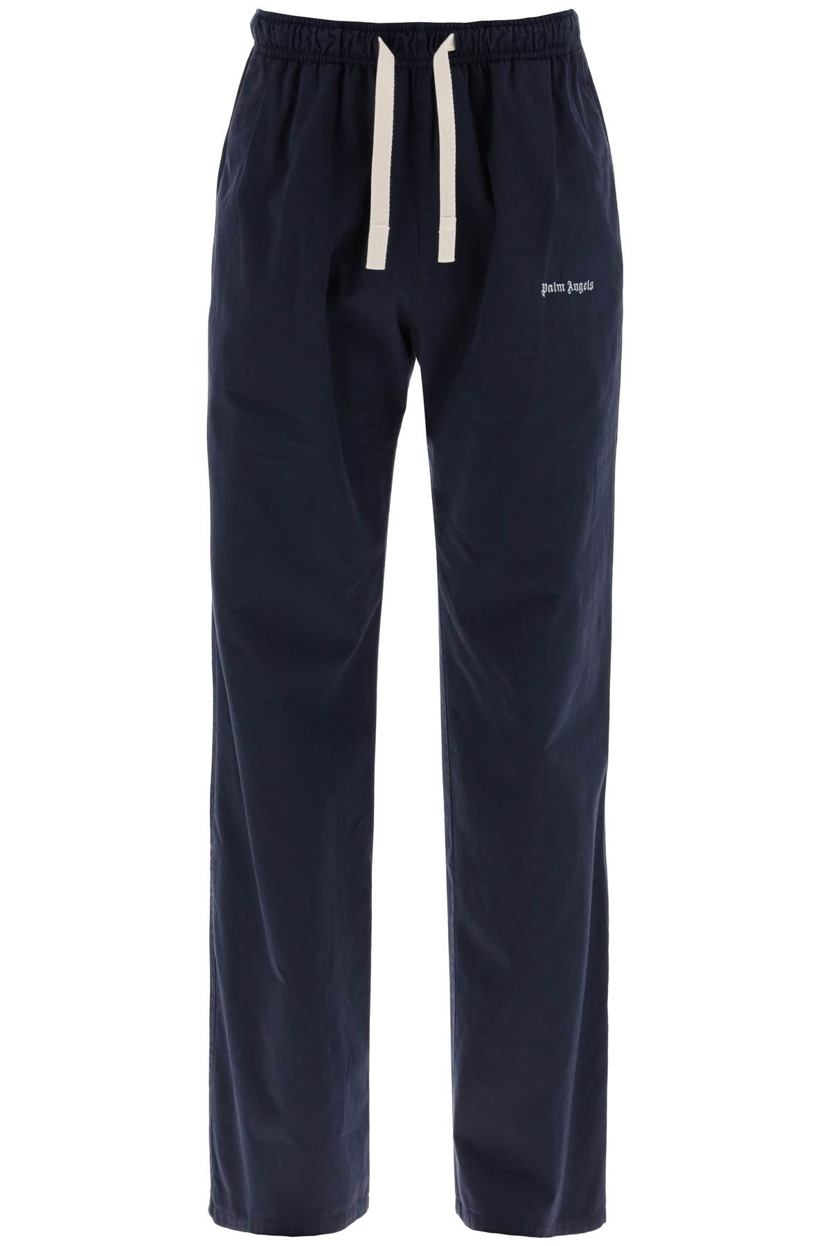 The Palm Angels Travel Pants are made of pure cotton gabardine with a small embroidered logo in contrast on the front. The elasticated waistband is adjustable with a drawstring, and there are side pockets inserted into the hips and back welt pockets with buttons. The fit is relaxed with a wide leg. The model is 187 cm tall and wears an IT size 48.