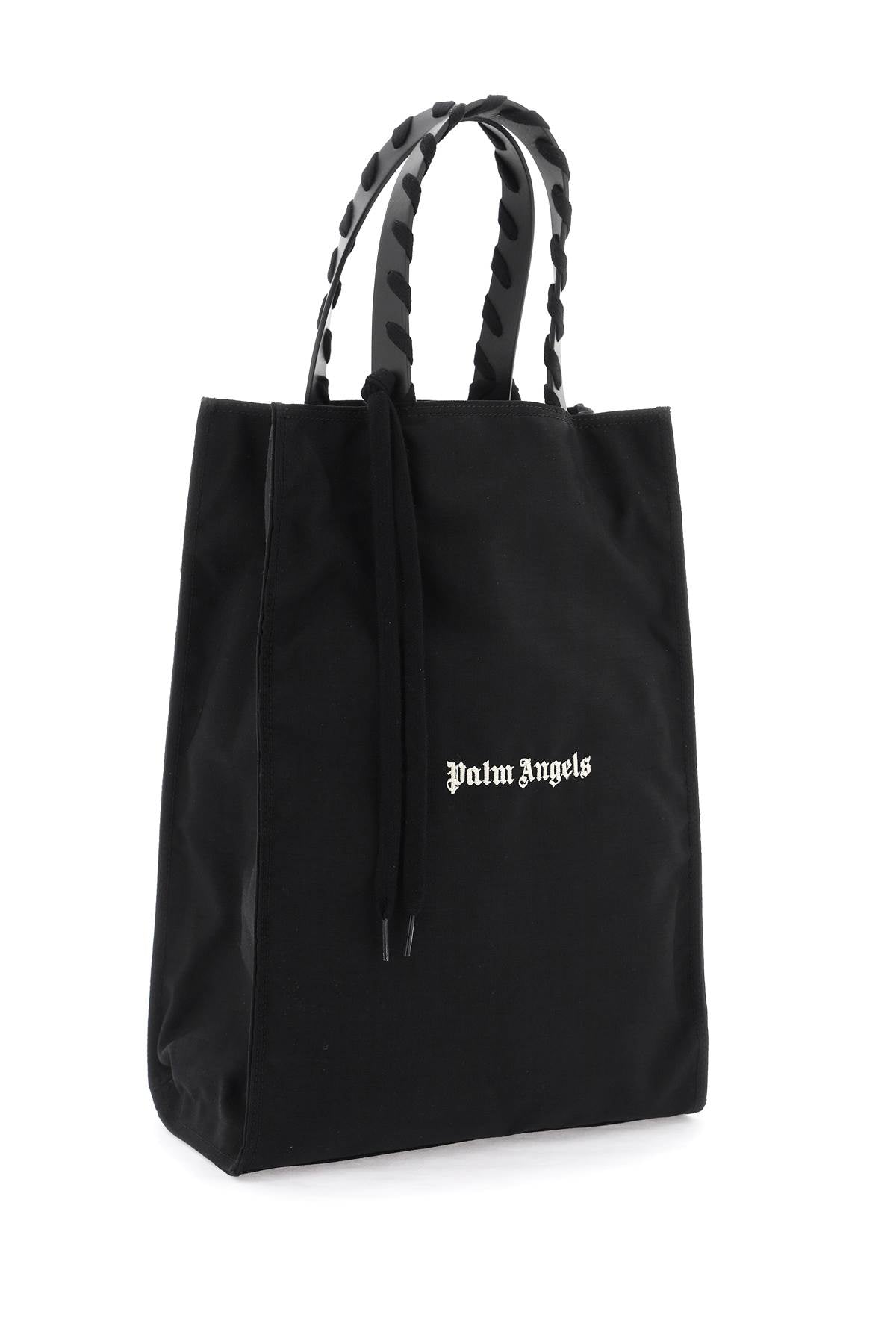 This Palm Angels tote bag is made of technical canvas and features leather handles with a long braided string. The contrasting embroidered logo lettering on the front adds a touch of style. The interior is lined with cotton and includes an open pocket for organization. Size and Fit - Bag Length = 27,5 cm, Bag Height = 40 cm, Bag Weight = 13 cm, Handle Height = 17 cm,