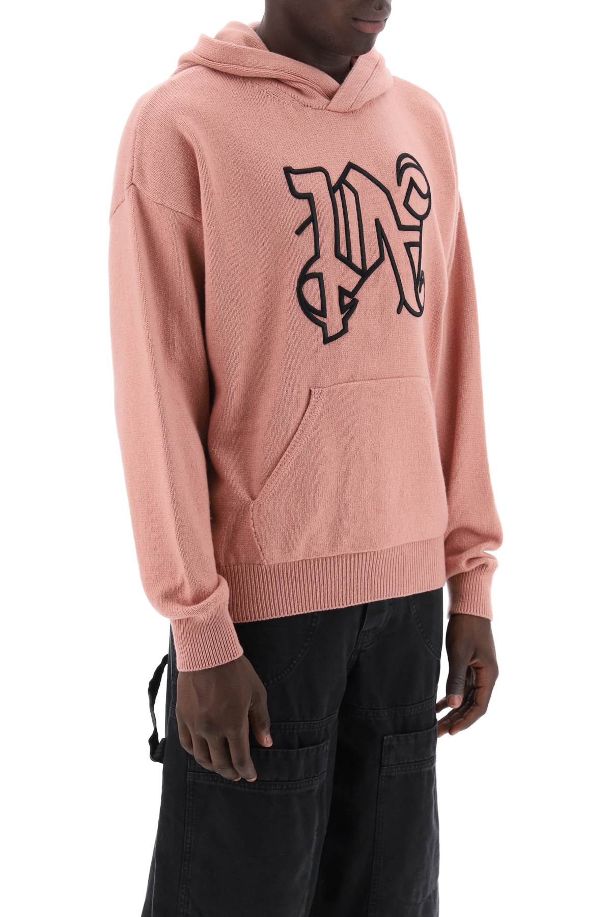 This Palm Angels hoodie is made of a blend of wool and cashmere, featuring an oversized monogram embroidery in contrast on the front. It has a kangaroo pocket, ribbed edges, and dropped shoulders. Regular fit. The model is 187 cm tall and wears size L.