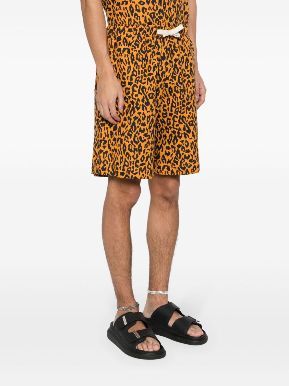 orange/black linen-cotton blend poplin texture all-over leopard print mid-rise thigh-length slip pockets to the sides rear patch pocket elasticated drawstring waistband unlined Size and Fit - This piece fits true to size. We recommend you get your regular size. Model is 1,84m / 6ft 1in wearing size 48 (IT)