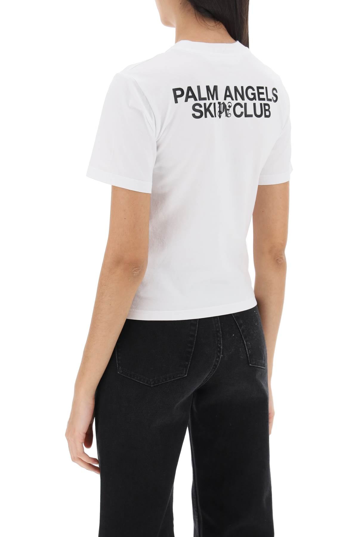 Palm Angels T-shirt crafted in pure cotton jersey, enriched by Palm Angels Ski Club print on the back and monogram patch on the chest. It features ribbed crew neck. Regular, slightly cropped cut. The model is 177 cm tall and wears size XS.