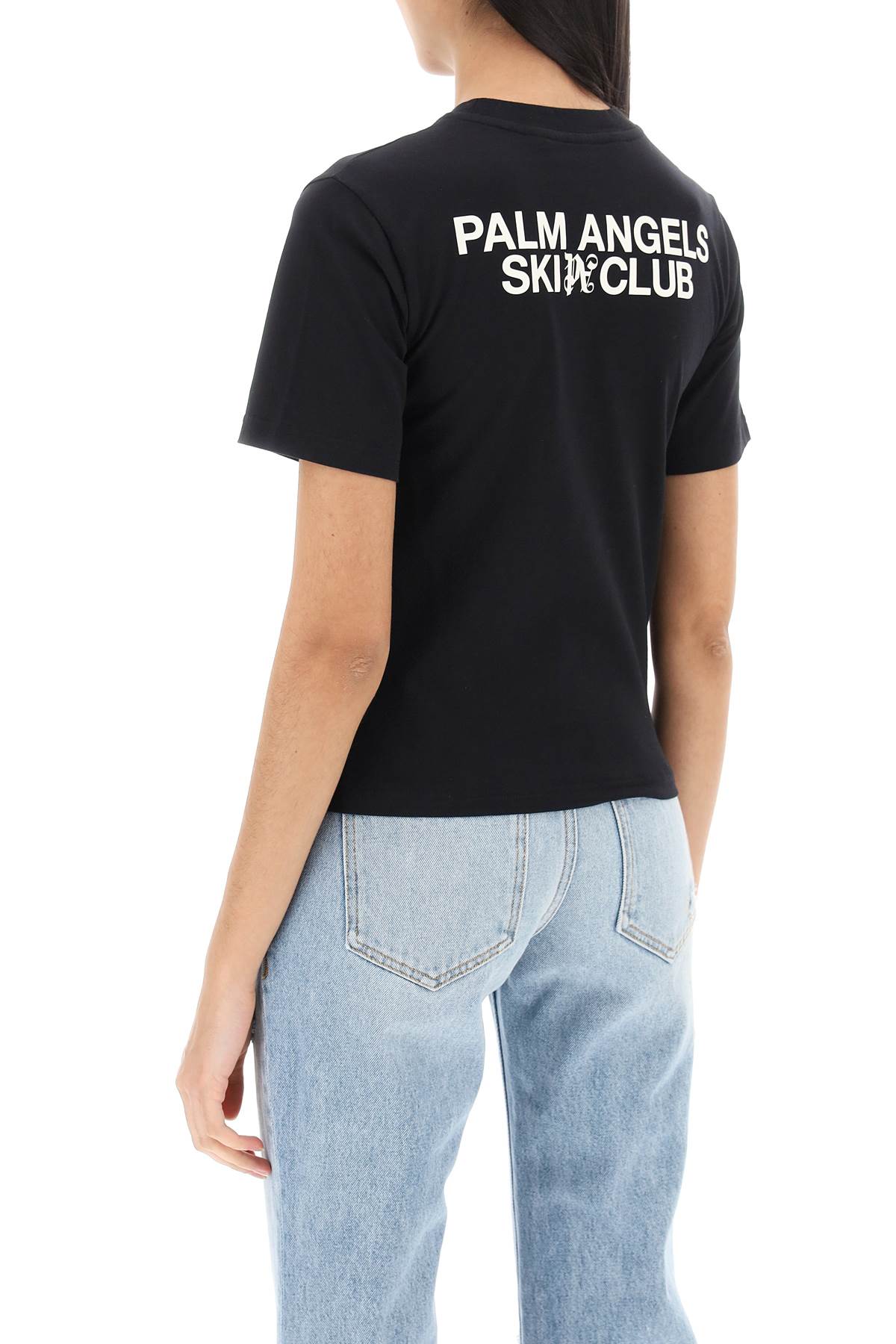 Palm Angels T-shirt crafted in pure cotton jersey, enriched by Palm Angels Ski Club print on the back and monogram patch on the chest. It features ribbed crew neck. Regular, slightly cropped cut. The model is 177 cm tall and wears size XS.