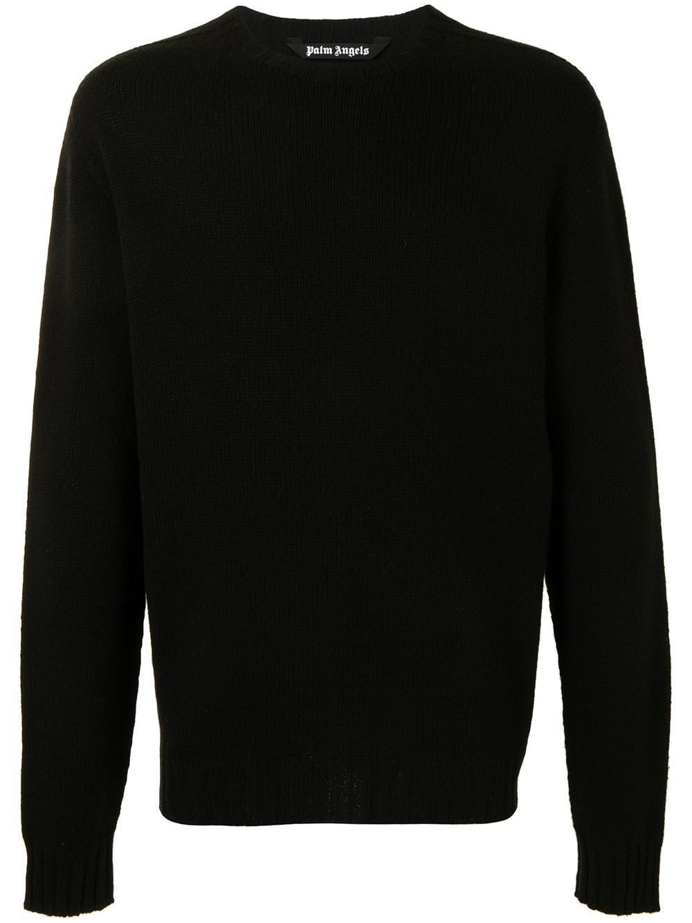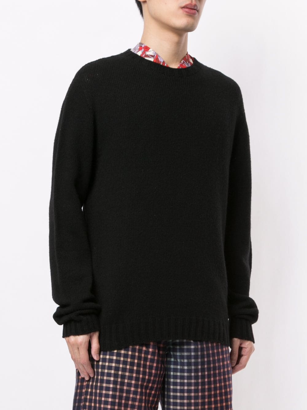 black wool-blend crew neck intarsia-knit logo Size and Fit - This piece fits true to size. We recommend you get your regular size. Model is 1,84m / 6ft 1in wearing size M