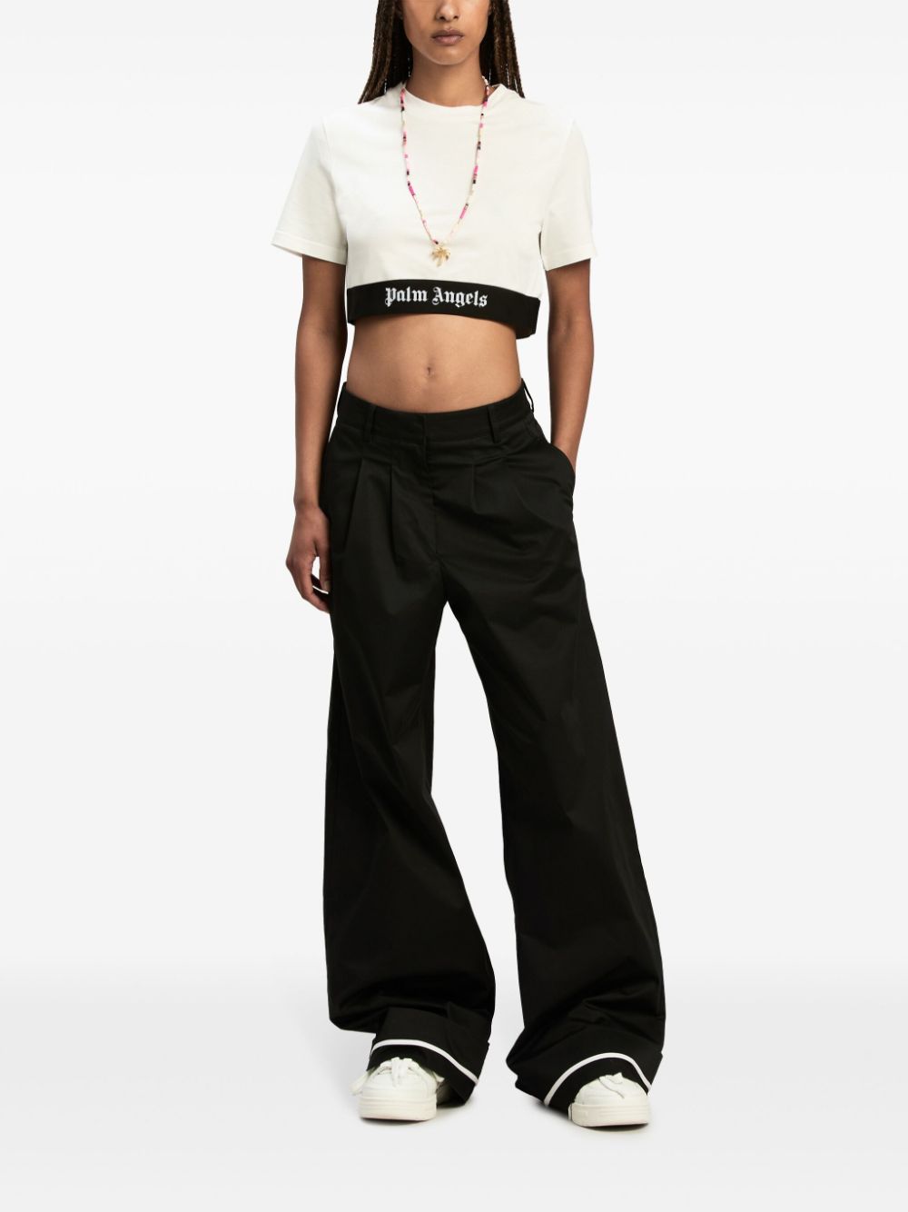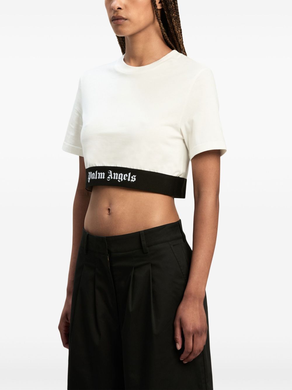 off-white/black cotton jersey texture logo underband crew neck short sleeves straight hem cropped Size and Fit - This piece fits true to size. We recommend you get your regular size. Model is 1,75m / 5ft 8in wearing size S
