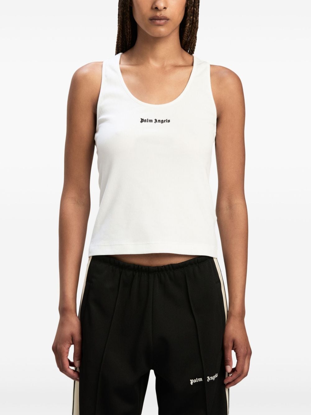 white/black stretch-cotton ribbed knit embroidered logo to the front scoop neck sleeveless racerback straight hem Size and Fit - This piece fits true to size. We recommend you get your regular size. Model is 1,75m / 5ft 8in wearing size S