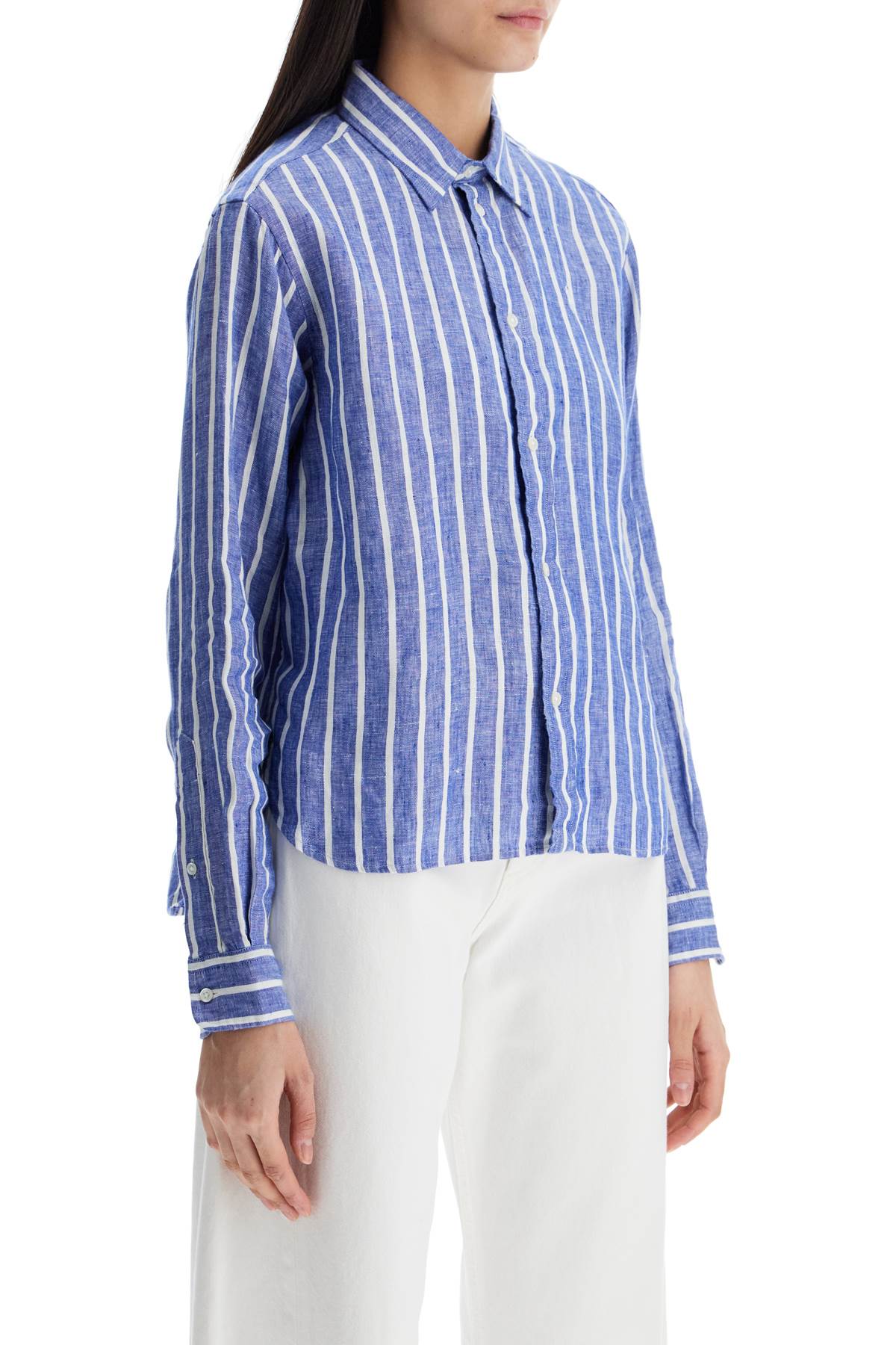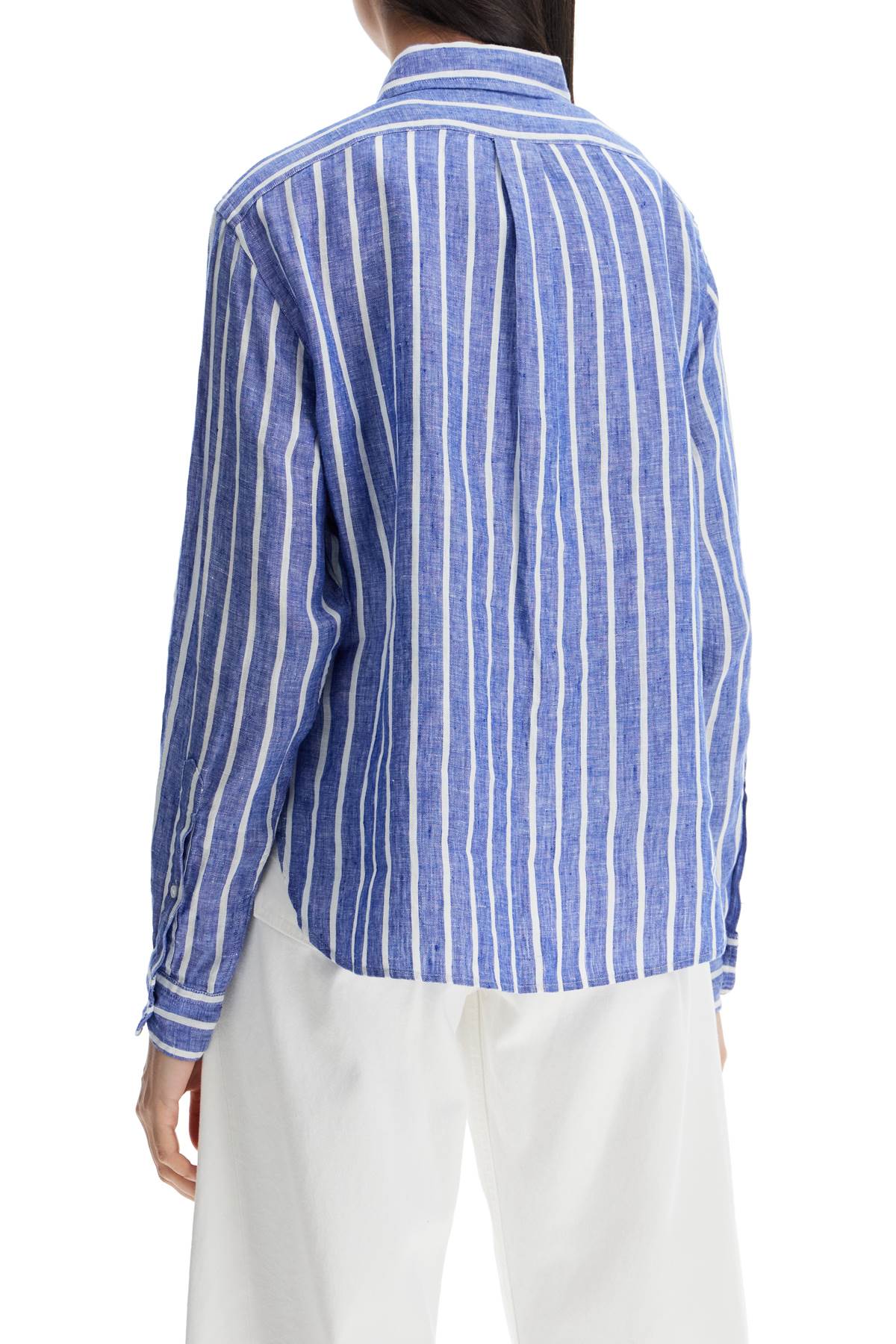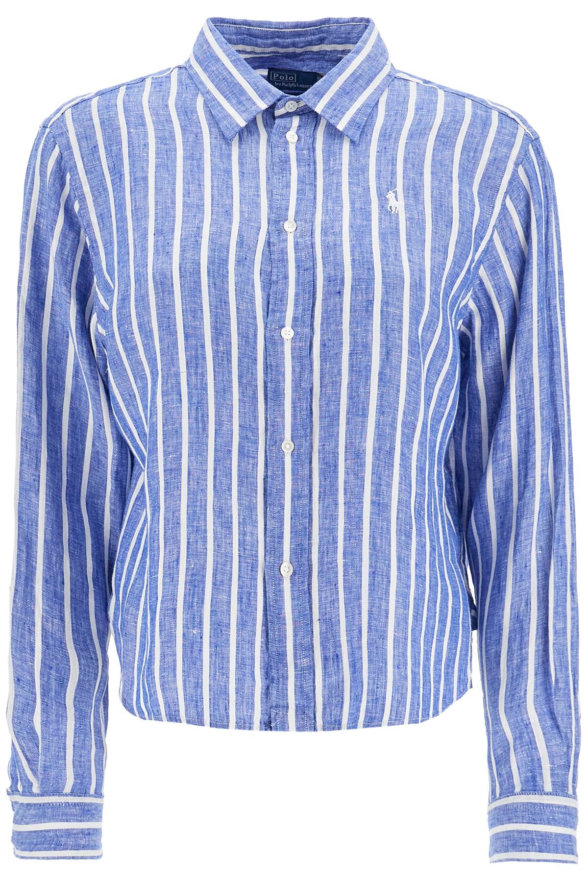 Polo Ralph Lauren camicia lino righe blu e bianca manica lunga regular