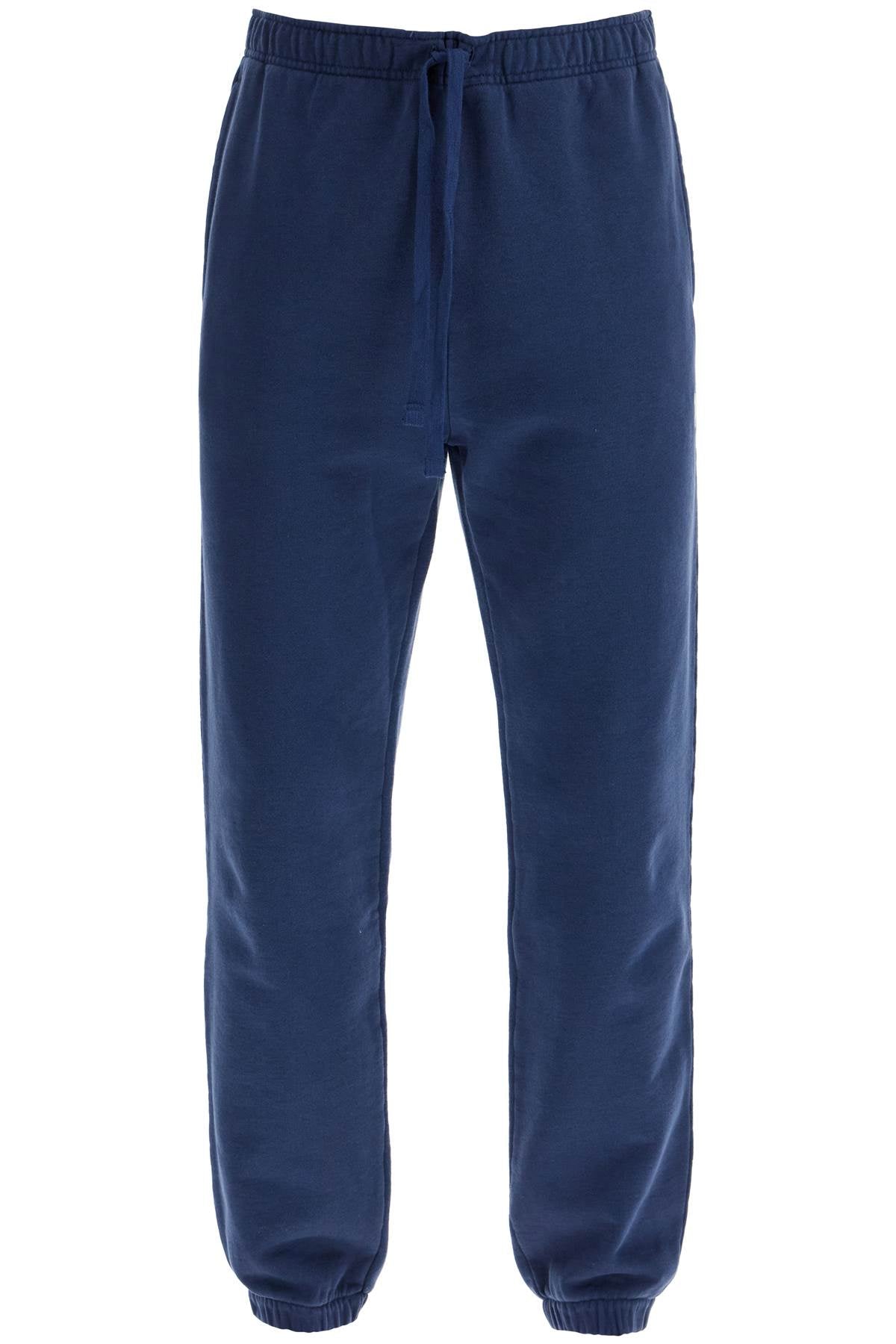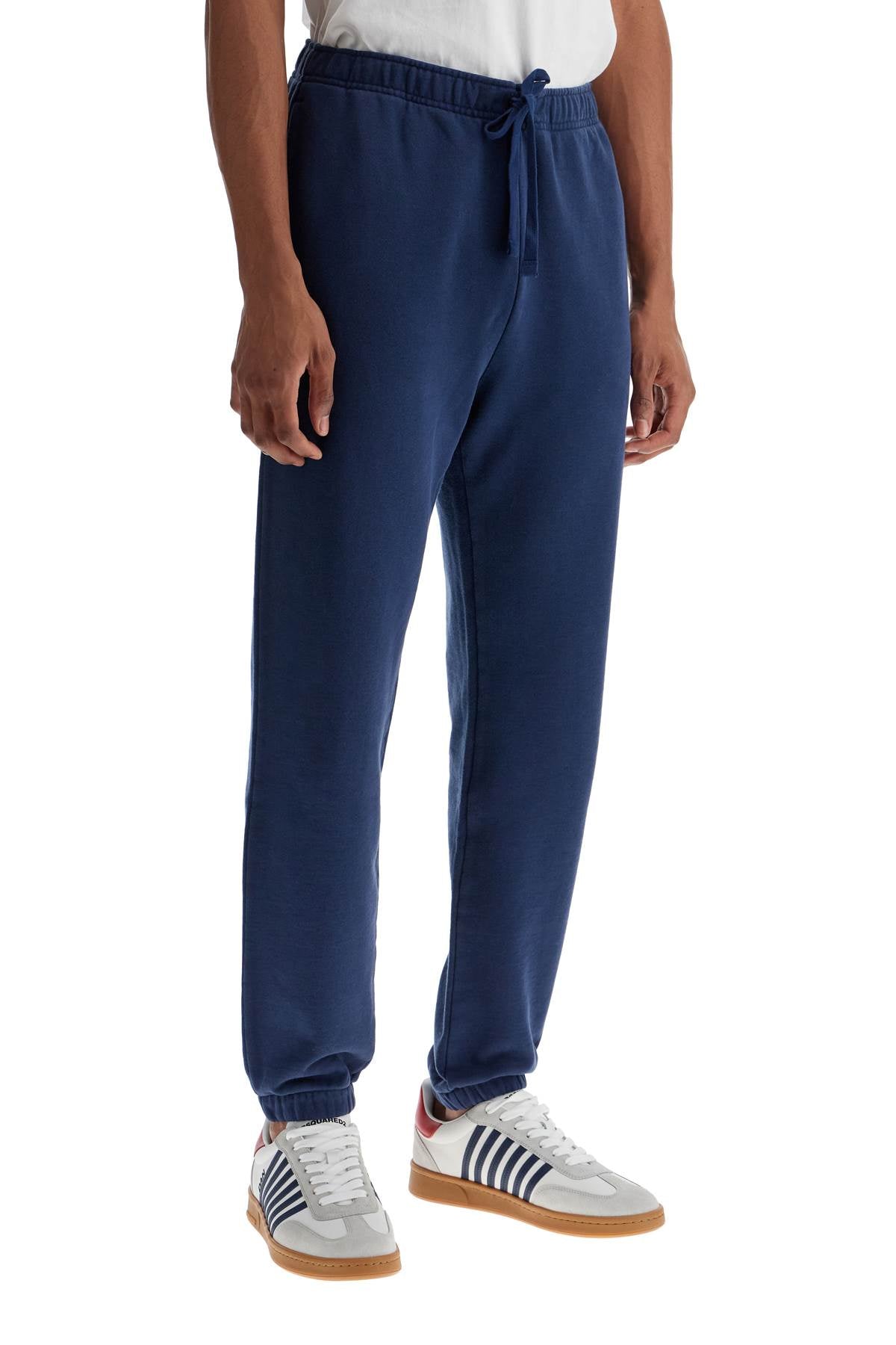 Polo Ralph Lauren drawstring sweatpants in soft loopback cotton jersey with the signature Pony logo embroidered at the left hip. This pair features an elasticized waistband and cuffs, side seam pockets, and a back patch pocket. The model is 182 cm tall and wears a size M.