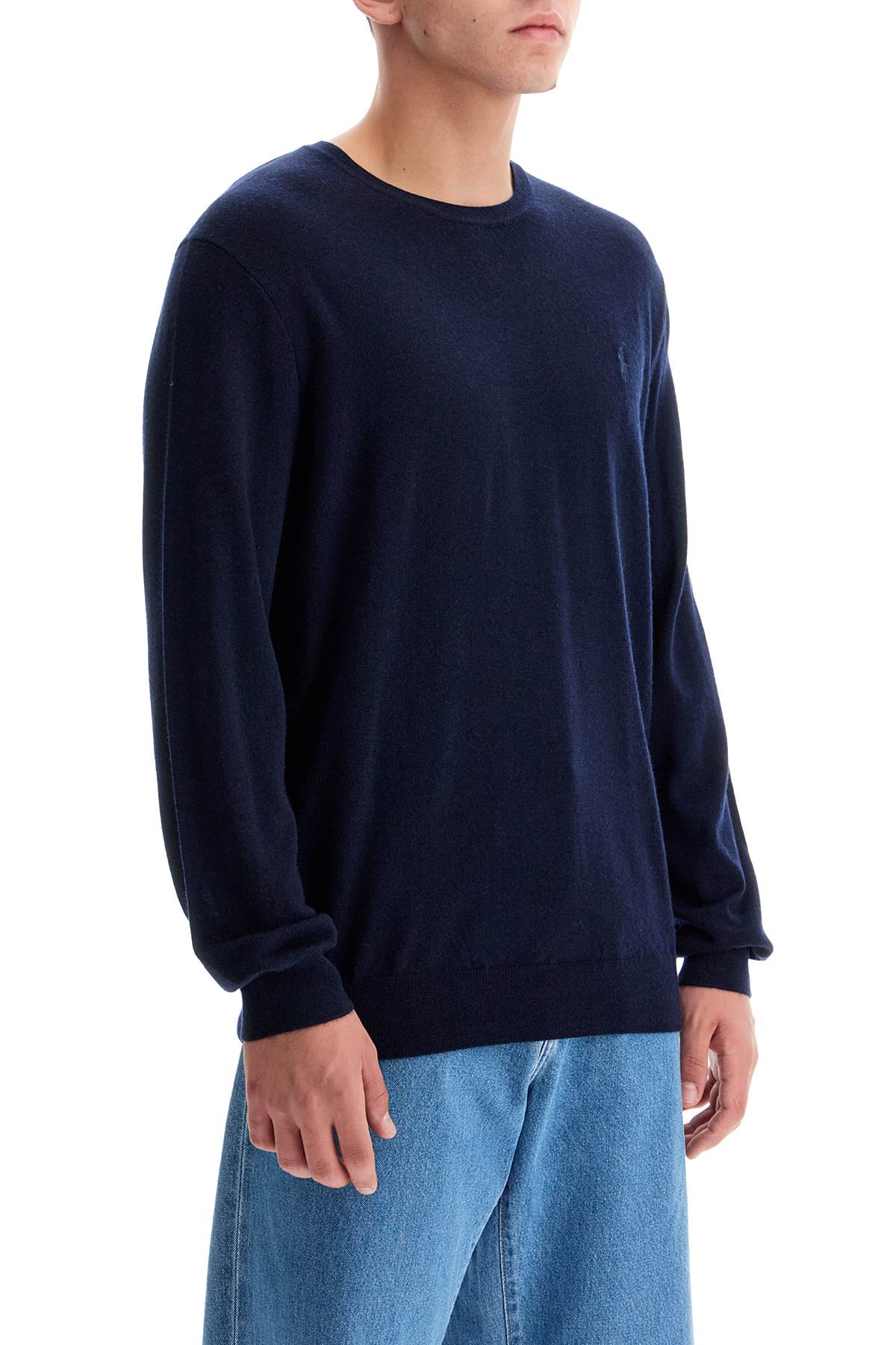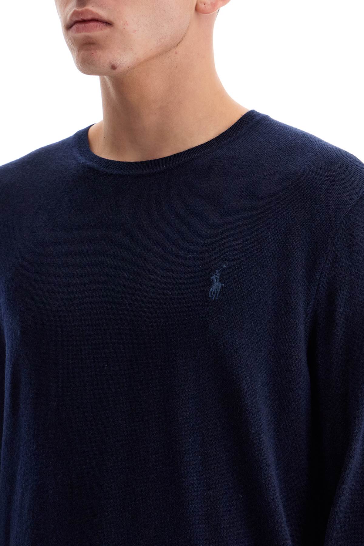 This Polo Ralph Lauren crew neck sweater is made of lightweight pure wool knit, featuring the iconic contrast embroidered pony on the chest and ribbed edges. Regular fit. The model is 182 cm tall and wears size L.