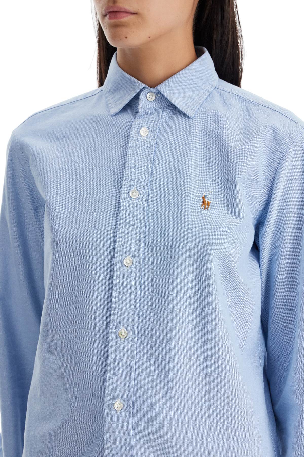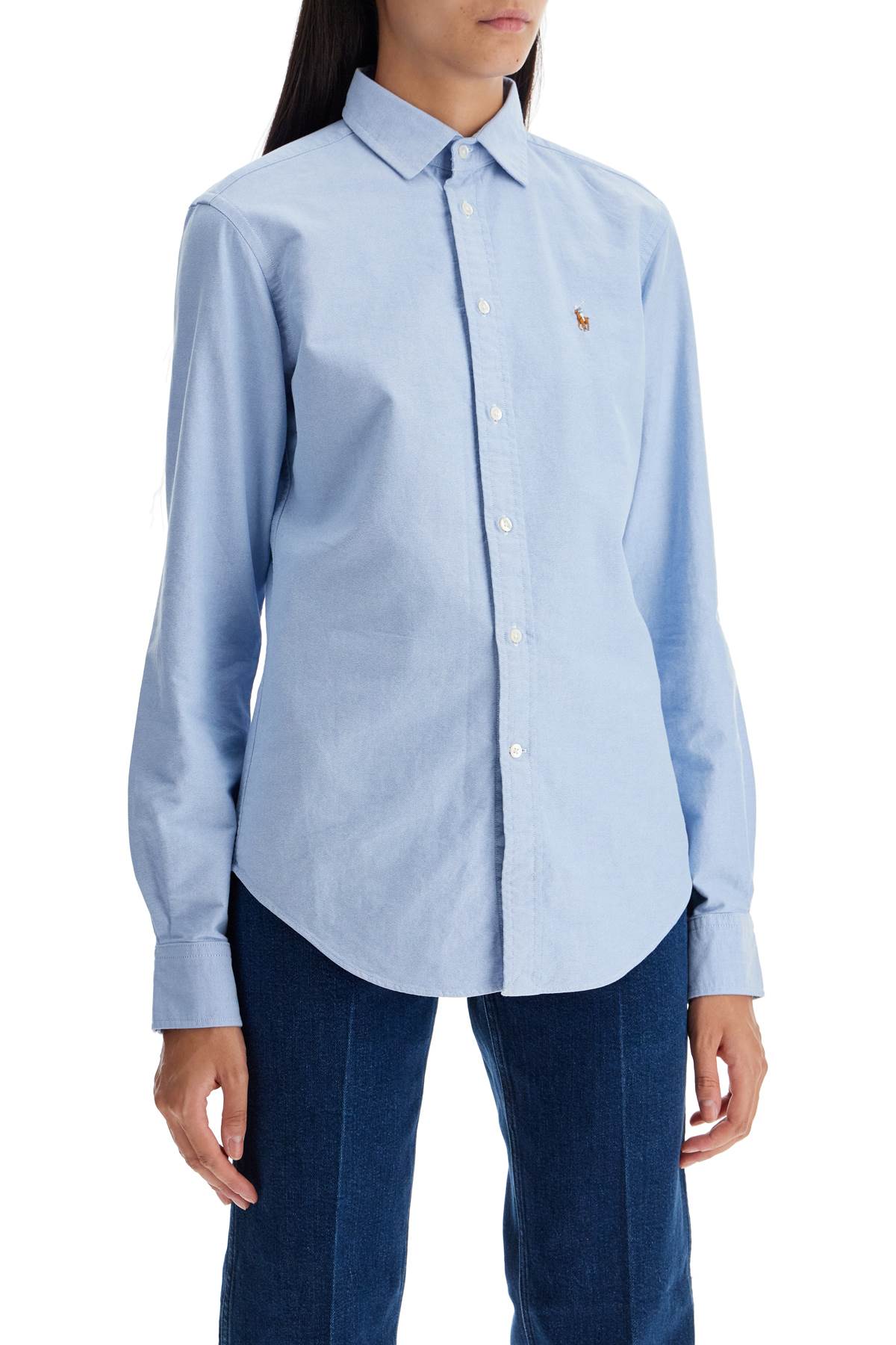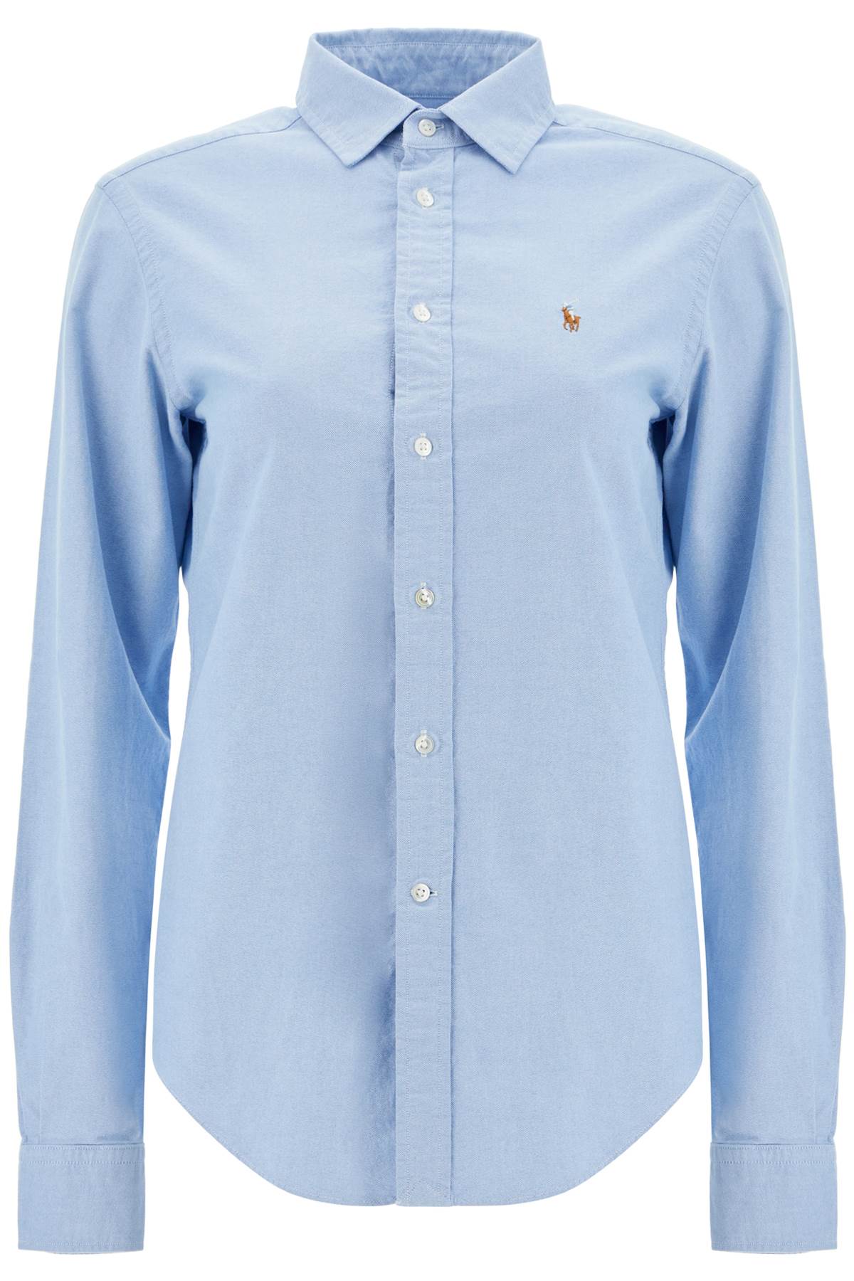 A regular-fit shirt in cotton Oxford from Polo Ralph Lauren, featuring a classic point-collar design with front button placket and a multicolor Pony logo embroidered at the chest. The model is 177 cm tall and wears a size US 2.