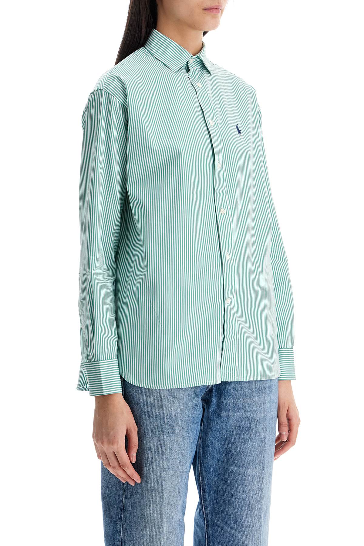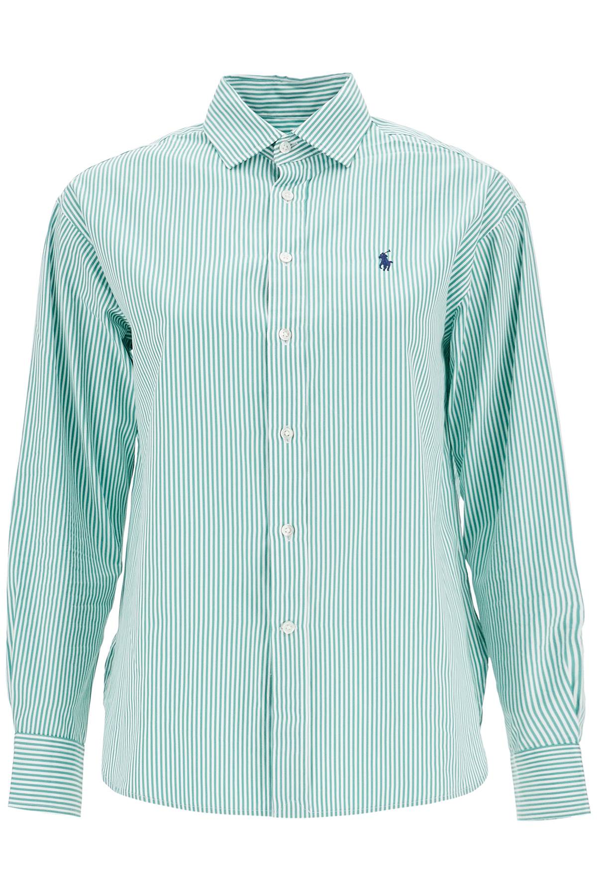 The Polo Ralph Lauren women's shirt in green and white stripes offers timeless elegance. Made from high-quality cotton with a slim cut, it is perfect for any occasion from spring to summer.
