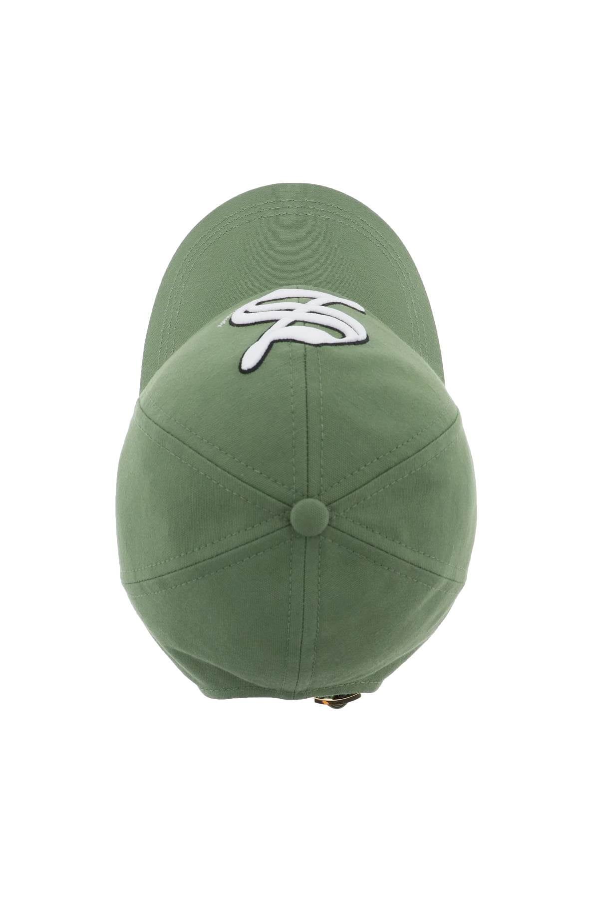 Stella McCartney baseball cap crafted in cotton canvas with the hallmark S embroidered on the front. Topstitched visor, self-covered top button and back adjustable strap with sliding buckle. Gold-tone finish metalware. Item in photo is size 57.