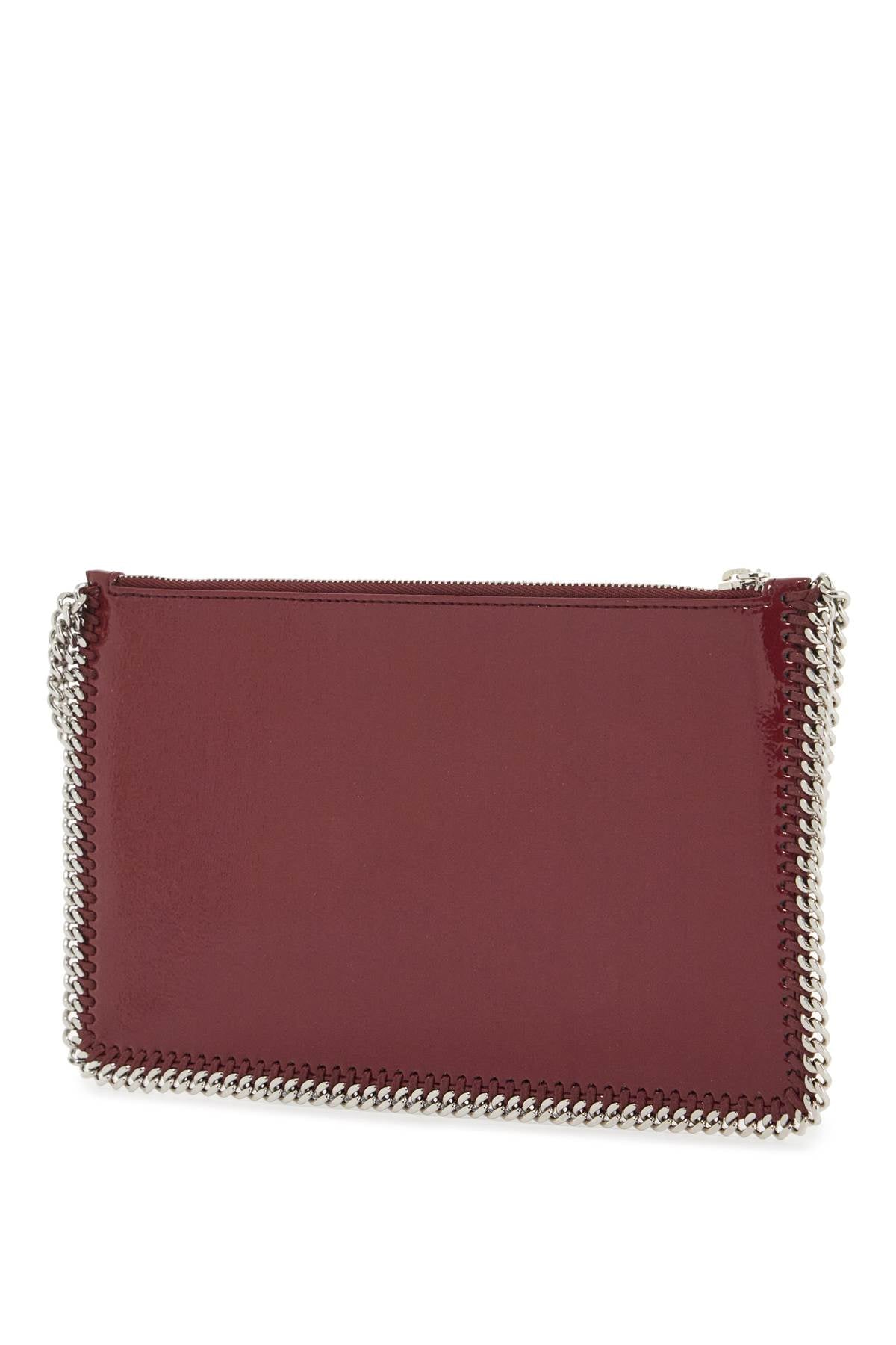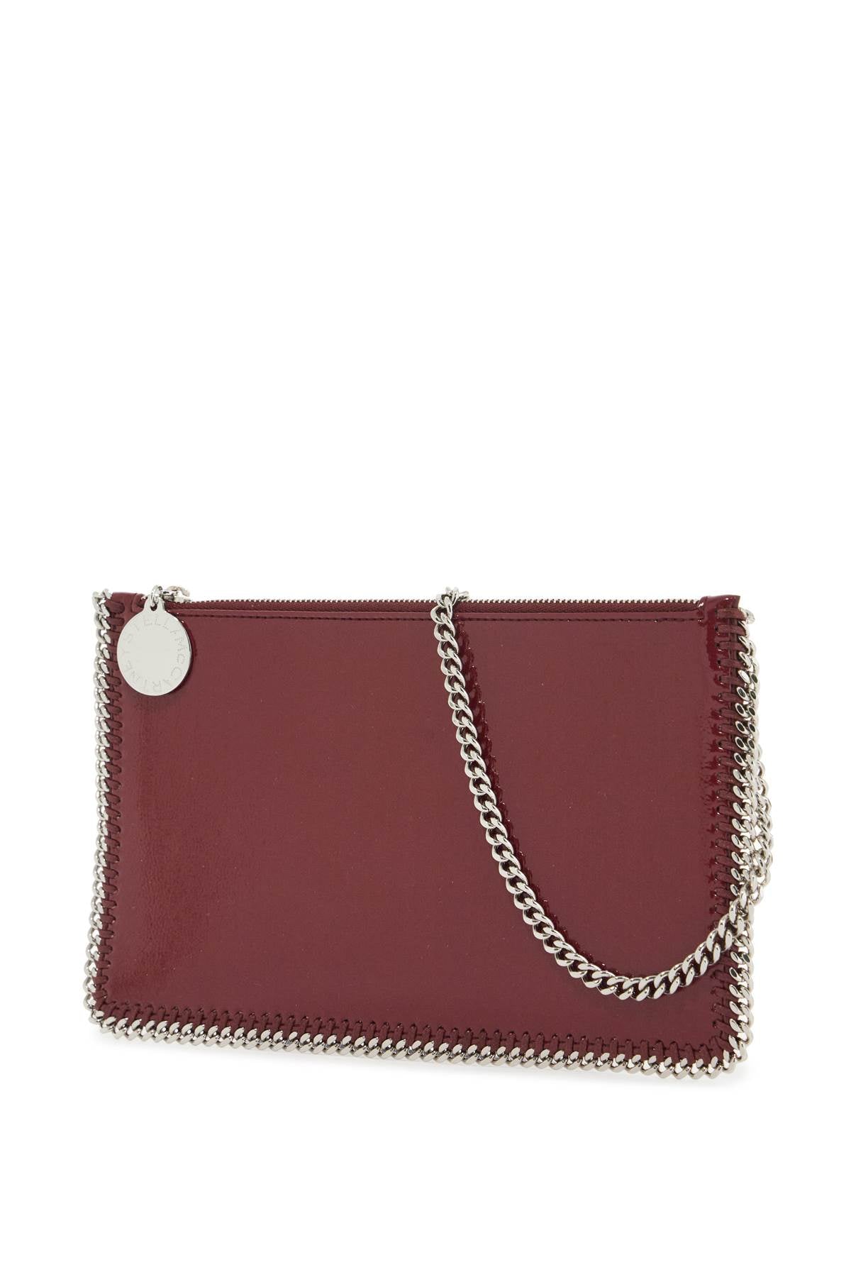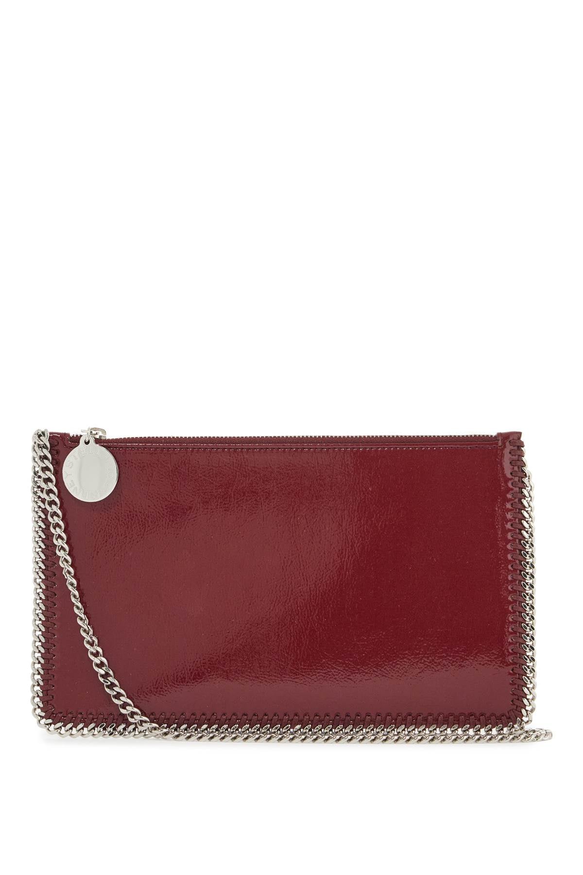 The iconic Falabella by Stella McCartney is revisited in an elegant clutch silhouette with a classic diamond-effect chain strap. Made of ecovernice, it features a top zip closure and an engraved medallion charm, with a logo-lined fabric interior. The metallic accessories have a silver finish. Size and Fit - Bag Length = 22,5 cm, Bag Height = 13,5 cm, Bag Weight = 1 cm,