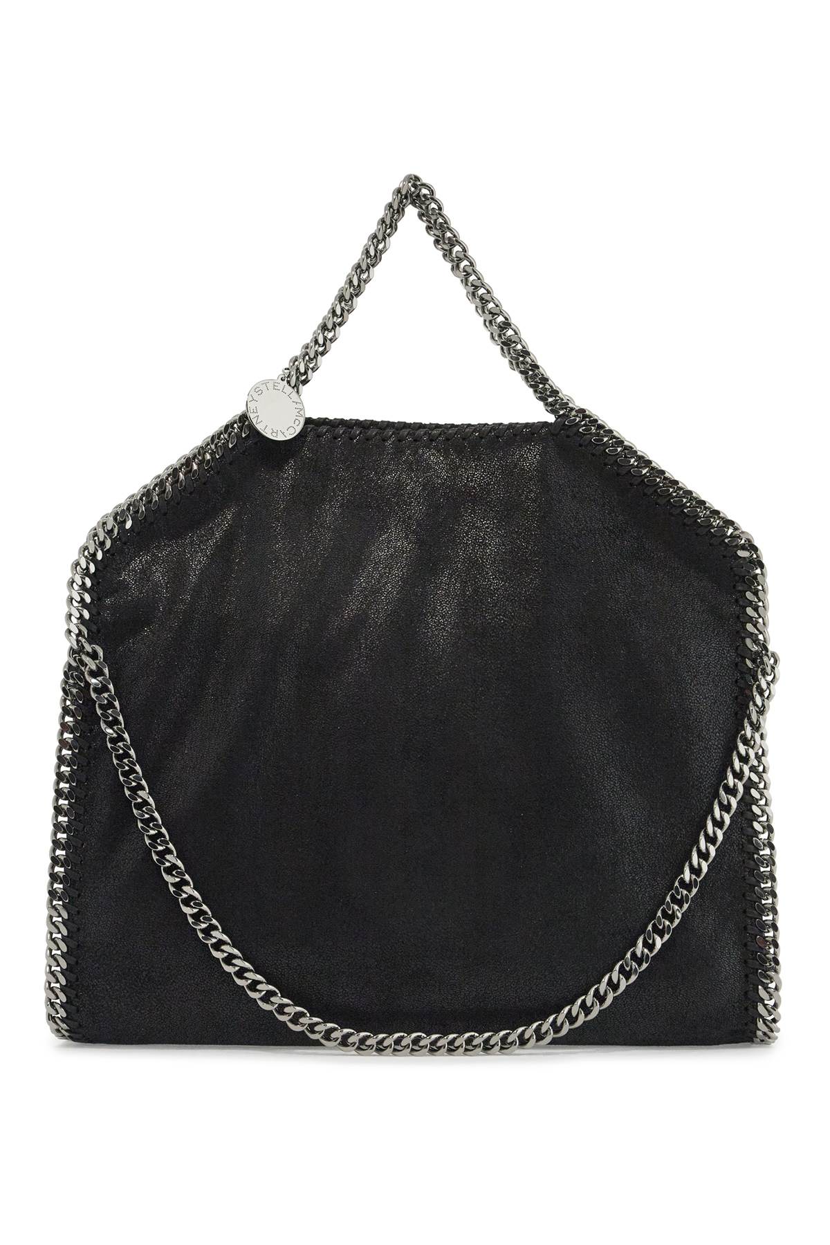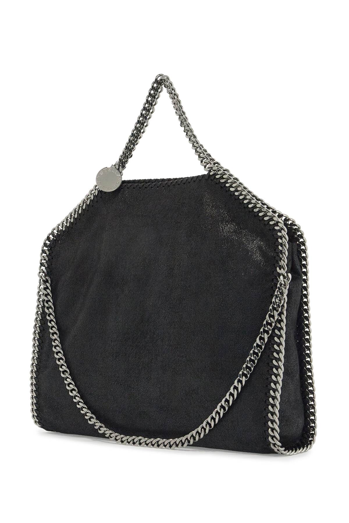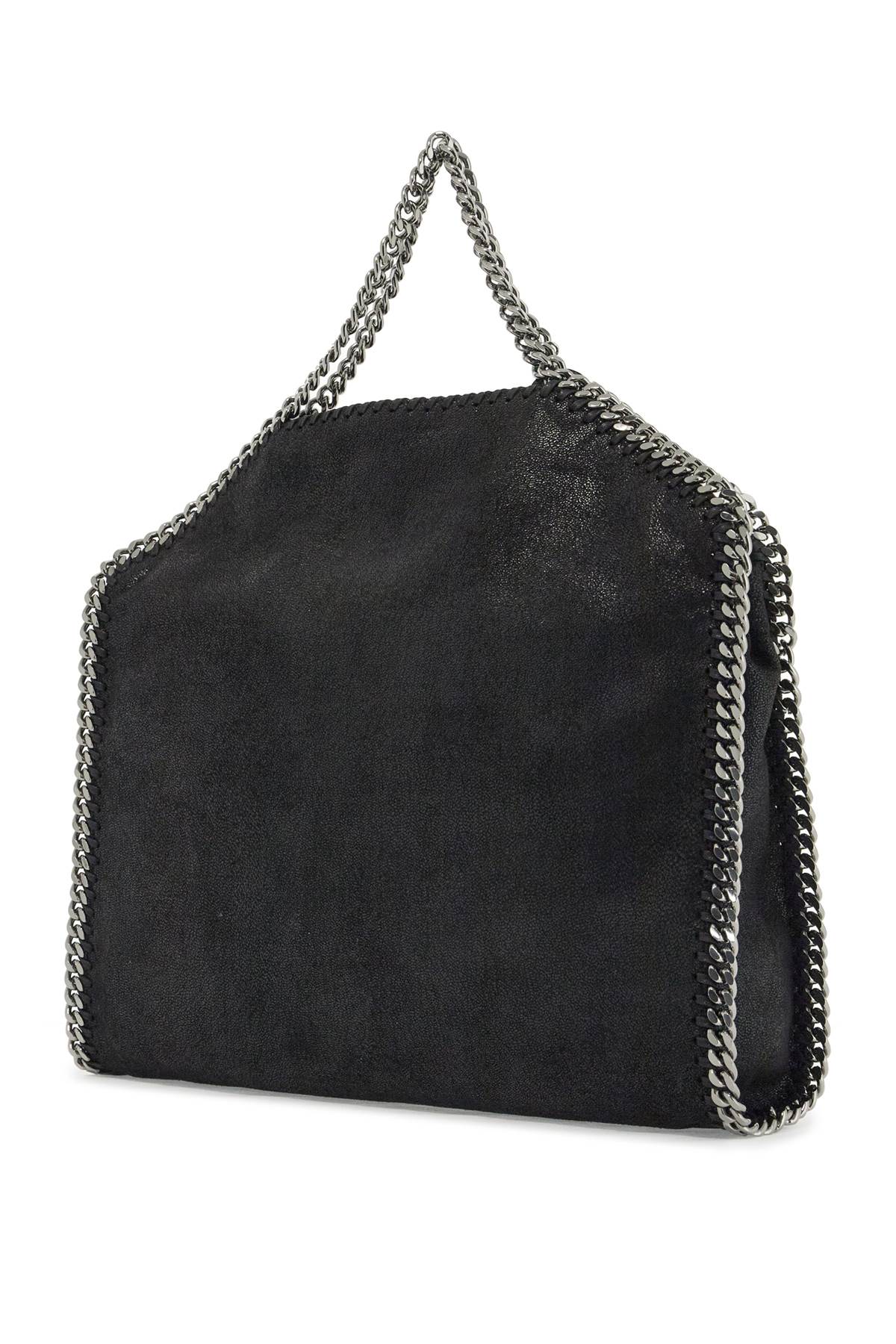 The Falabella tote bag by Stella McCartney is made of Shaggy Deer eco-leather with intertwined chain details and handles made of organic cotton waxed laces. Its design stands out for its versatility, as it can be worn by hand or on the shoulder by folding the top part. It features a magnetic button closure and a lined interior with a zippered pocket. The iconic engraved logo medallion and metal accessories with ruthenium finish complete the look. Size and Fit - Bag Length = 37 cm, Bag Height = 34 cm, Bag Weight = 8 cm, Handle Height = 13-20 cm,