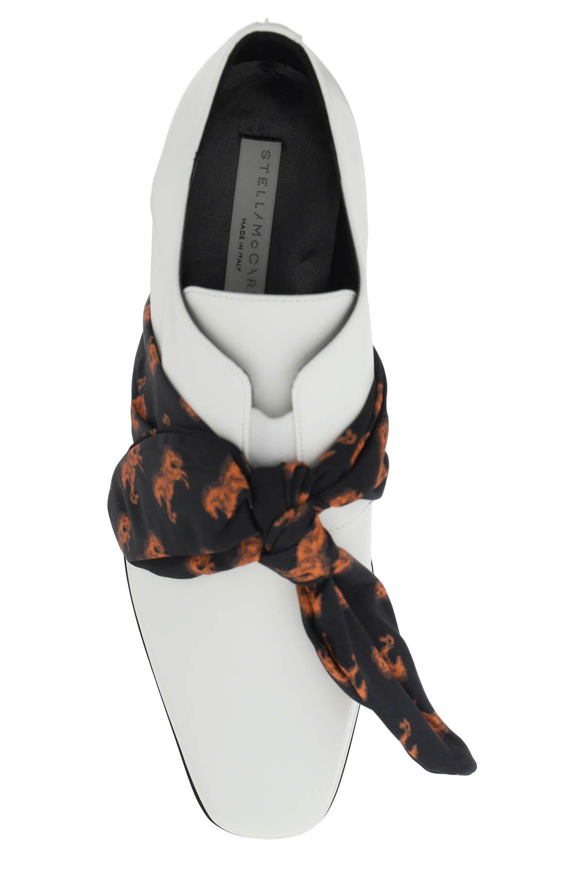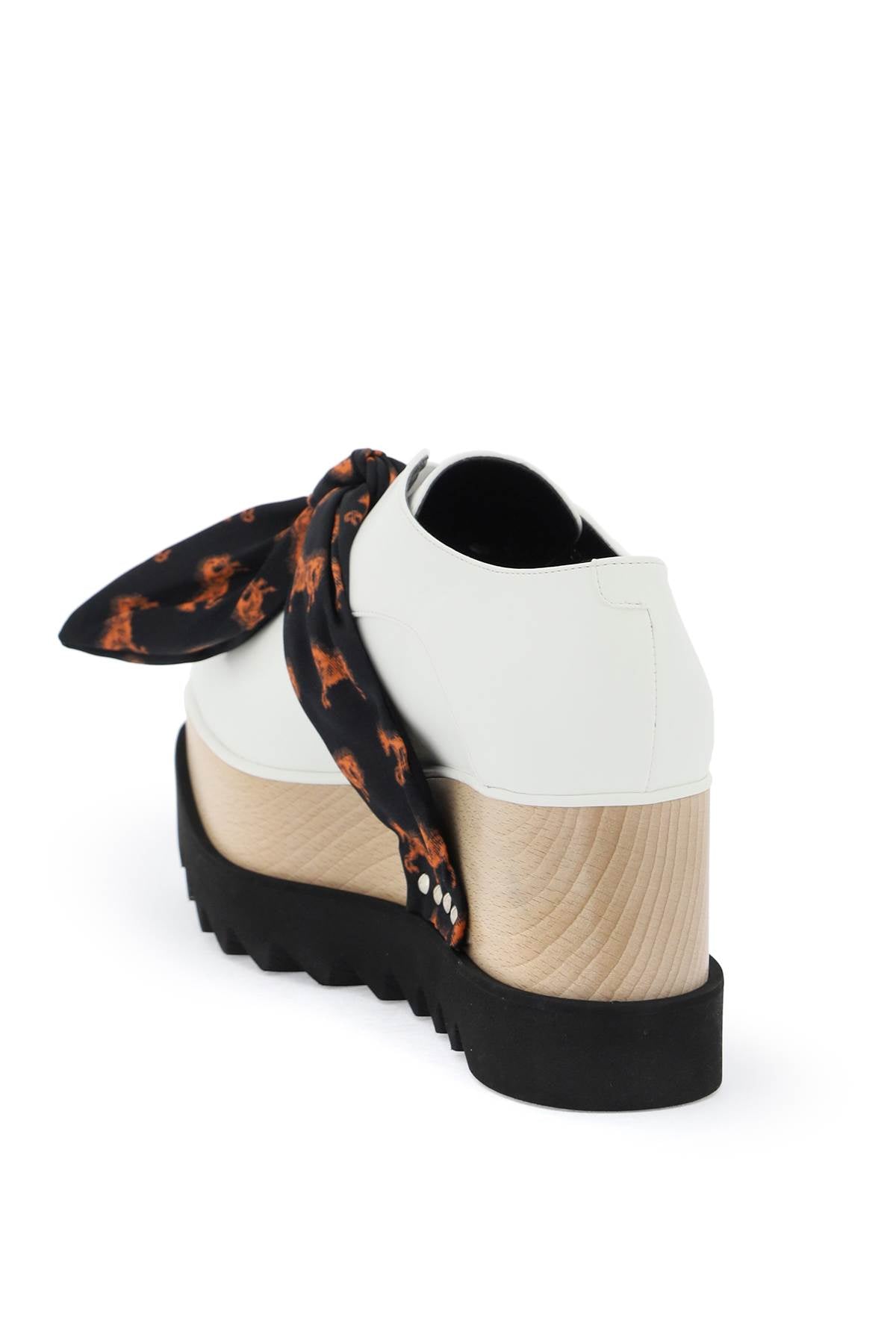Platform Elyse loafers by Stella McCartney crafted in Alter Mat, characterized by the sustainable wood wedge and the gimped rubber sole. The design is complete by an eco-sustainable viscose band featuring Pixel Horse print. Faux leather lining. Size and Fit - Heel Height = 8 cm, Plateau Height = 6 cm,