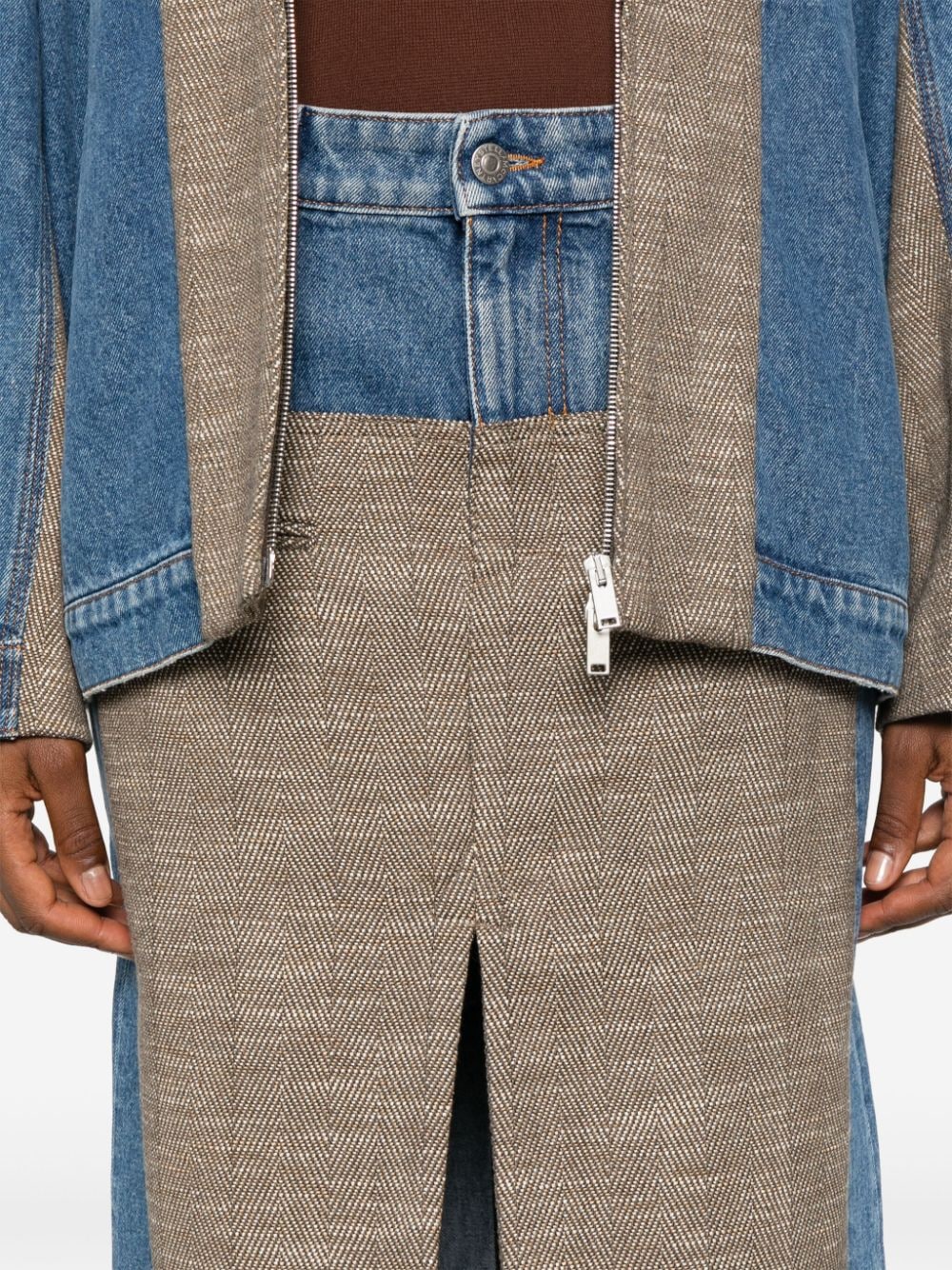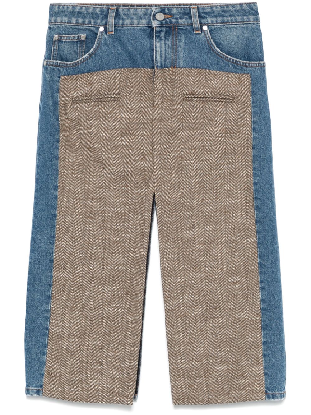 blue/beige cotton denim tweed front button and zip fastening belt loops classic five pockets tweed panelling front slit rear slit straight hem mid-length We've partnered with Good On You — an independent agency that rates how brands perform in relation to their impact on the planet, people and animals, with a multi-criteria rating simplified to a five points scale. In order to be awarded our conscious label, larger brands need to score a minimum of four out of five ('Good'), while smaller brands must score at least three out of five ('It's a start'). This item comes from a brand rated four out of five ('Good') by Good on You at the time it was added on FARFETCH. Please note, this is a brand-level rating and does not guarantee that this product is made with conscious materials. Learn more about what makes a product Conscious on our Conscious Criteria page Size and Fit - This piece fits true to size. We recommend you get your regular size. Model is 1,75m / 5ft 8in wearing size S