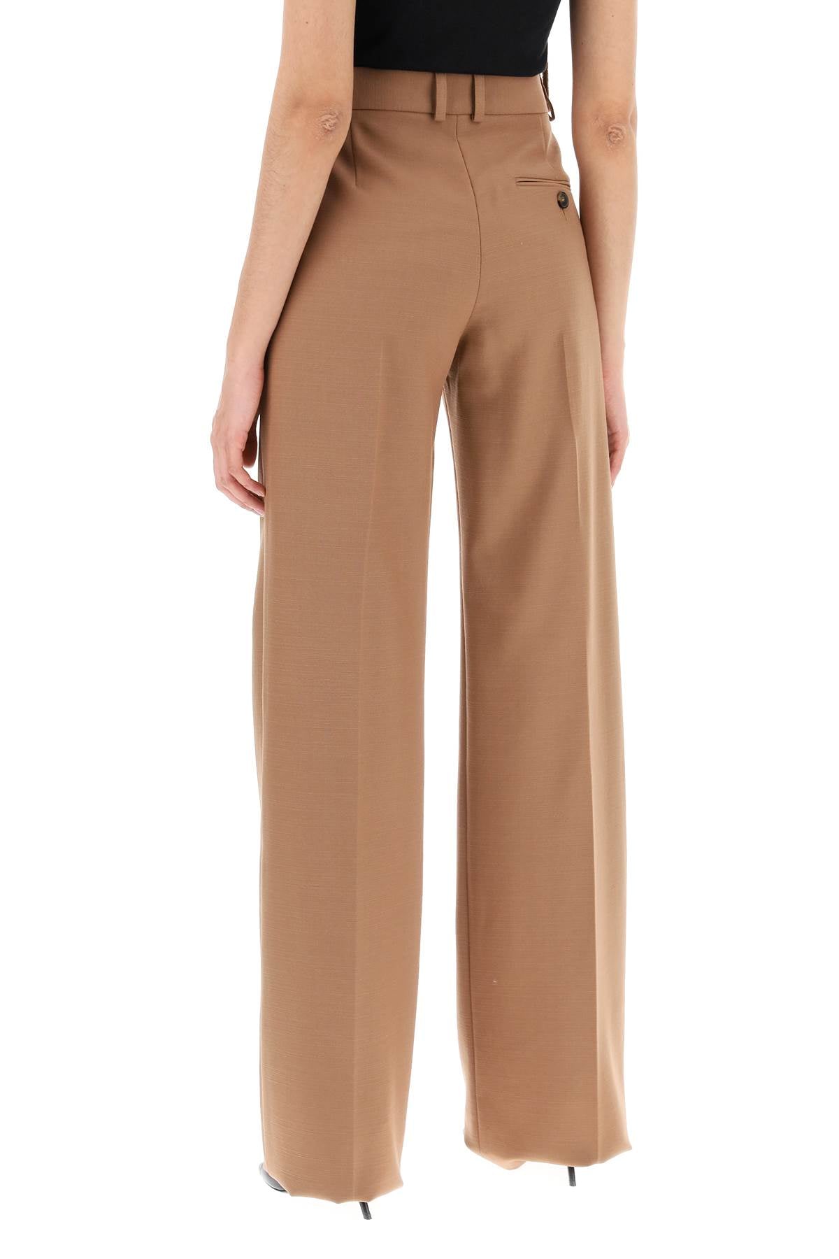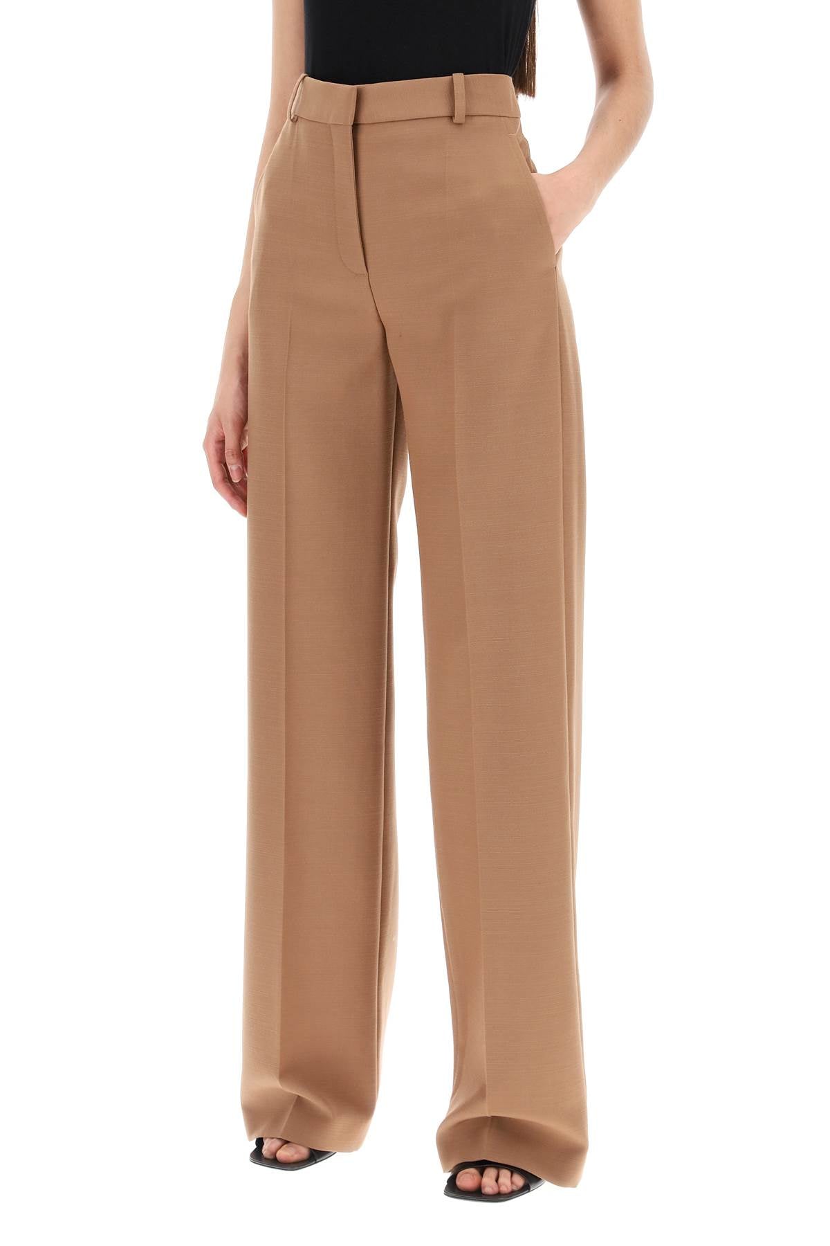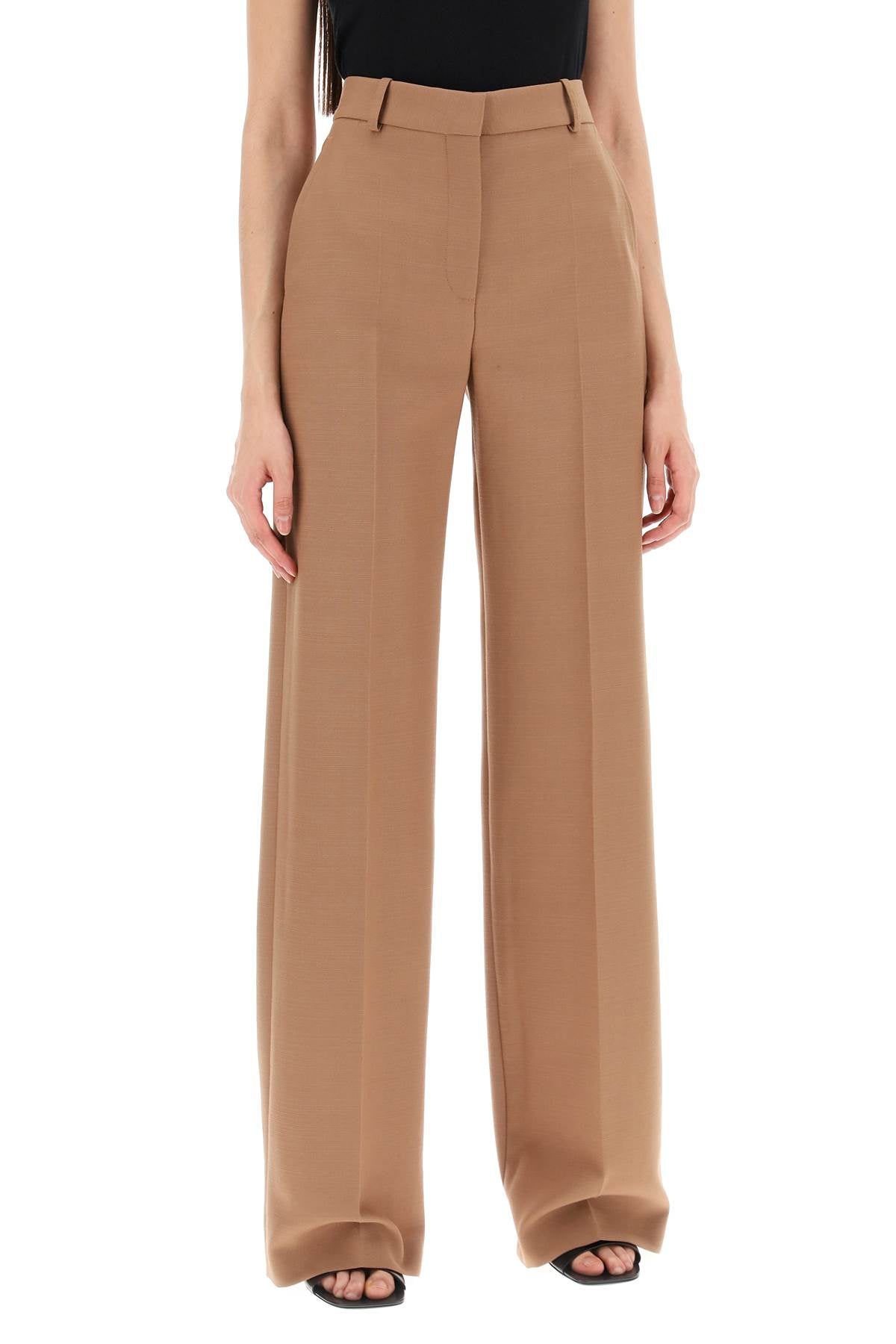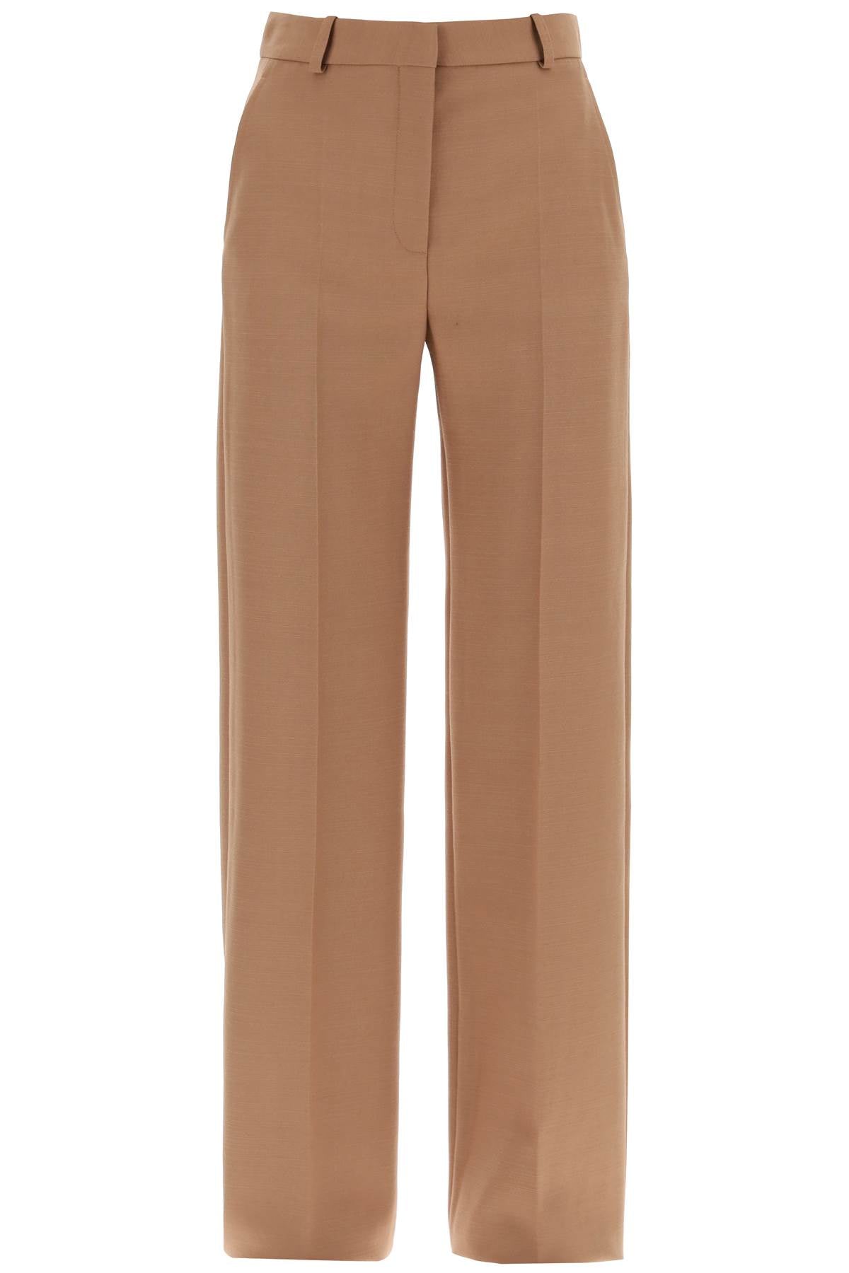 These Stella McCartney pants are made from responsibly sourced flamed wool fabric, with a straight and soft cut enhanced by pressed pleats on the front and back. The clean design features a zip and hook closure, belt loops, side French pockets, and a buttoned welt pocket at the back. Unlined. The model is 177 cm tall and wears size IT 38.