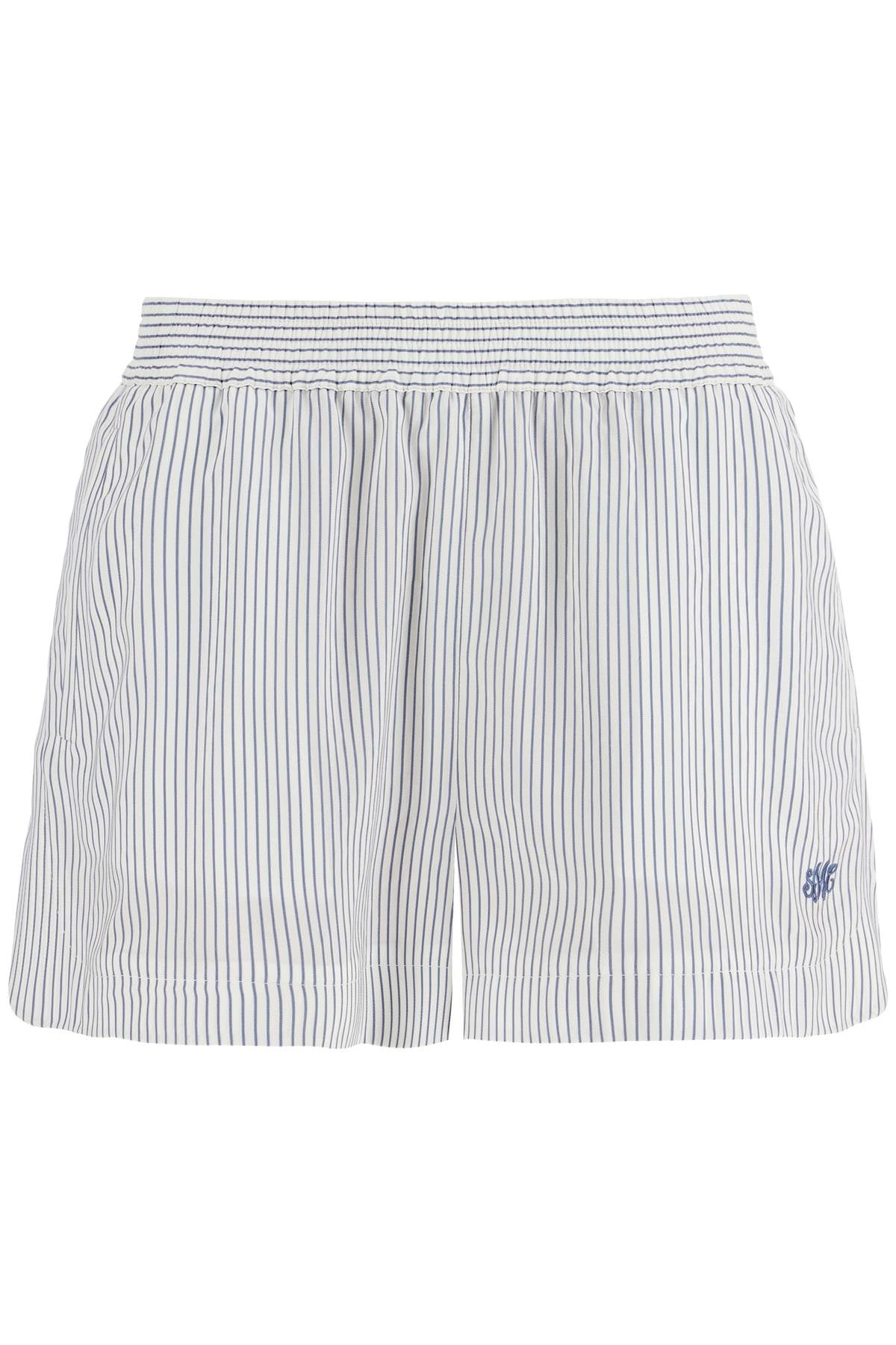 These Stella McCartney pure silk shorts are embellished with an all-over striped pattern and a SMC embroidered detail on the left hem. The fit is relaxed, with an elasticated waistband and side pockets. The model is 177 cm tall and wears size IT 38.