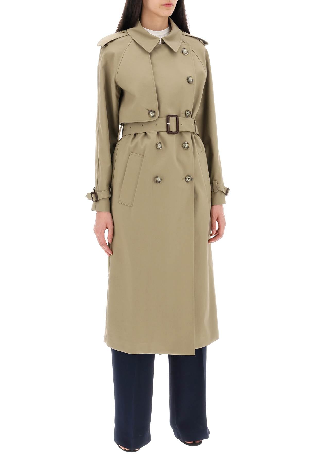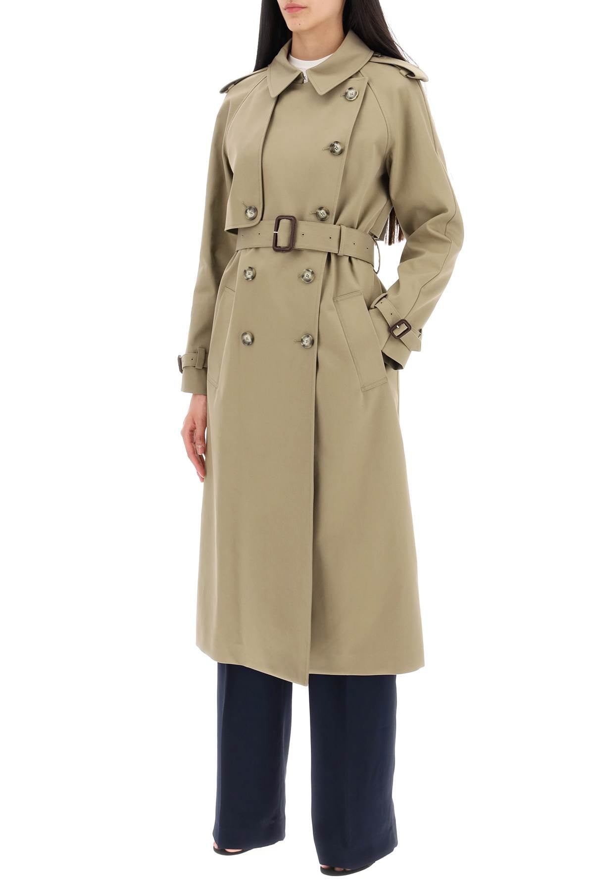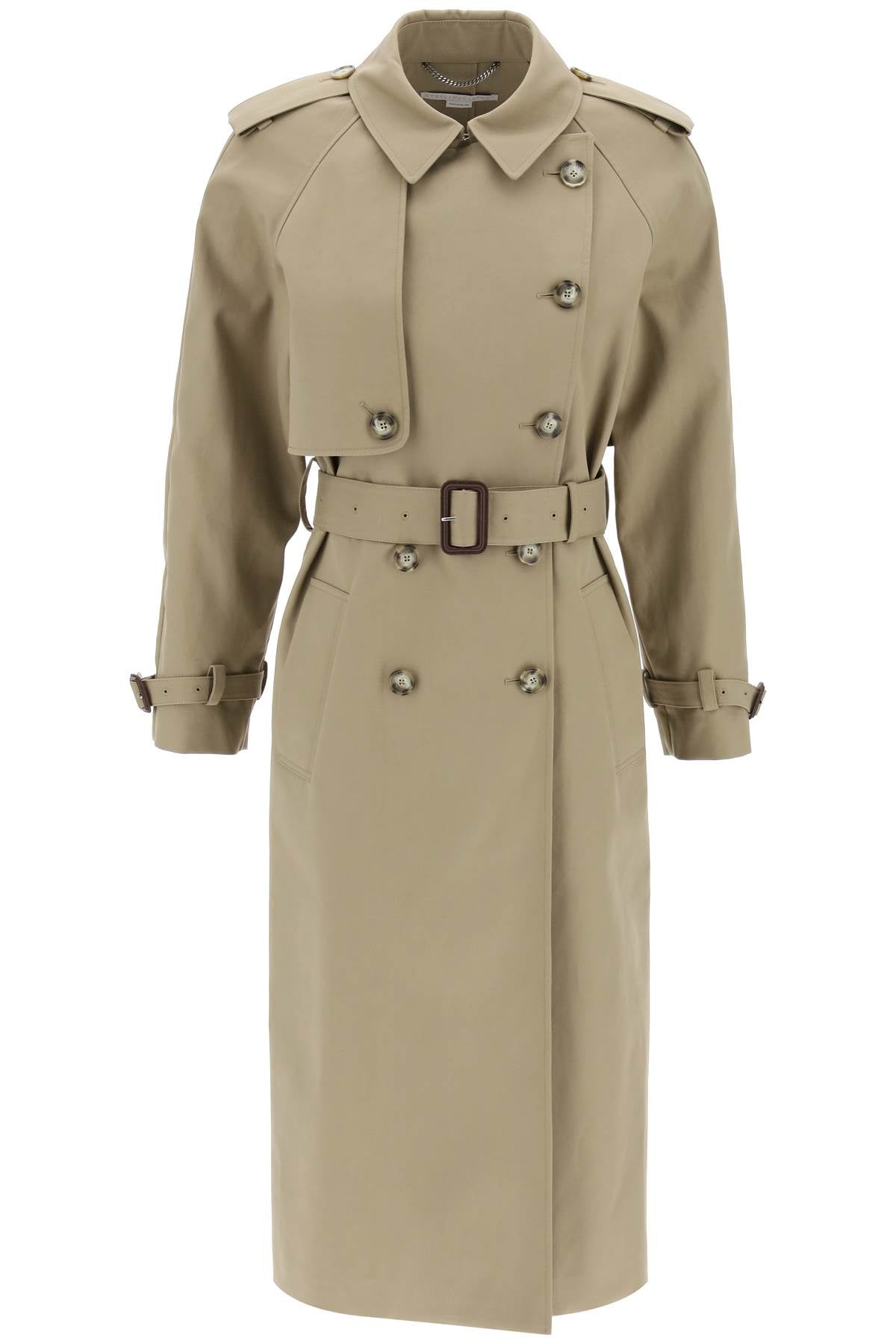 Made from sustainable cotton gabardine, this traditional Stella McCartney trench coat features a double-breasted design with raglan sleeves. It has a classic collar, button closure, front welt pockets, shoulder epaulettes, back vent and storm flap. The adjustable straps on the cuffs and belt cinch in at the waist for a flattering fit. The model is 177 cm tall and wears an IT size 40.