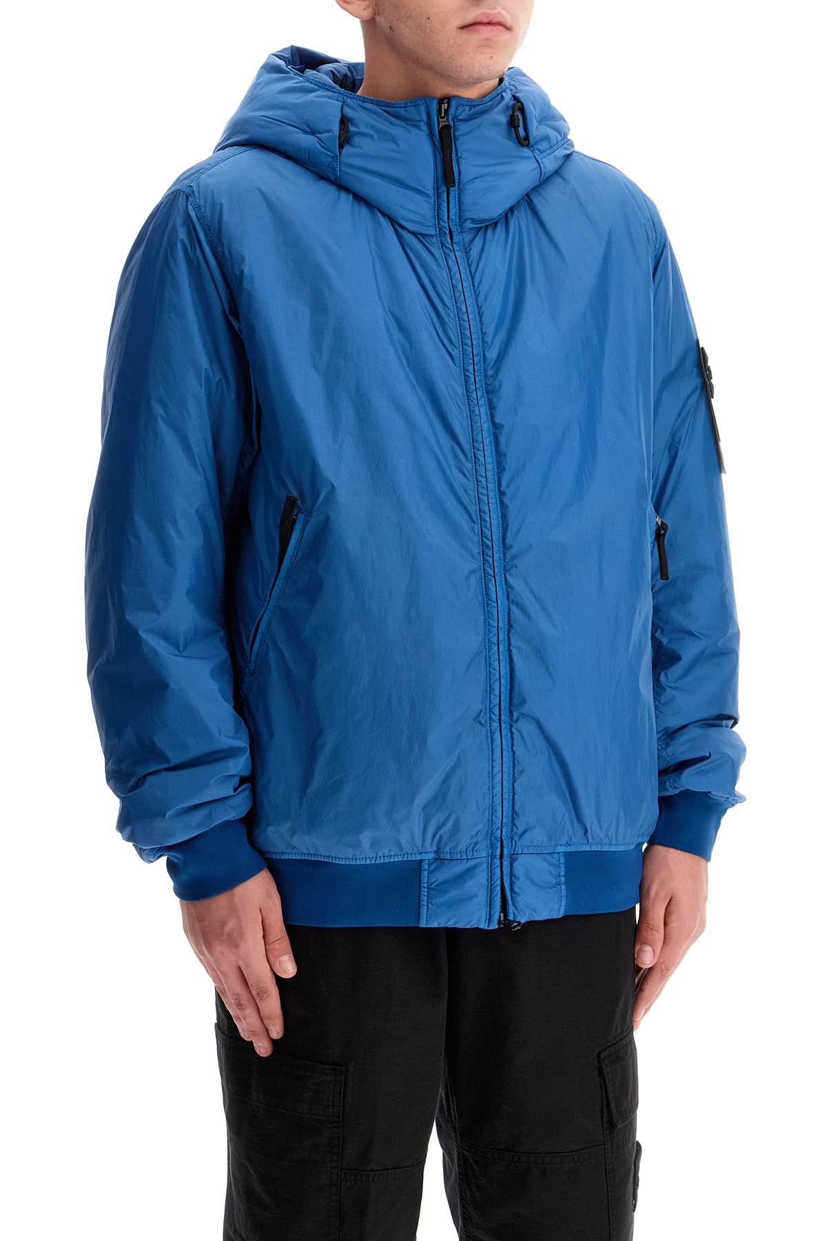 This Stone Island jacket is made of nylon reps and padded with a layer of PrimaLoft. It features a two-way zip closure, drawstring hood, side pockets with zips, and elasticated ribbed cuffs and hem. The fit is regular. The model is 182 cm tall and wears size L.