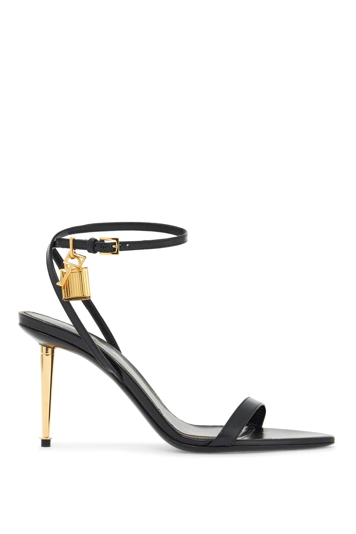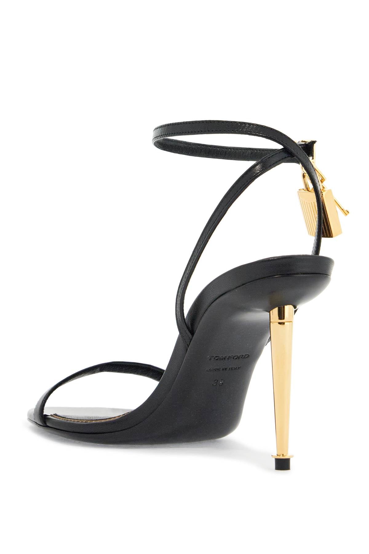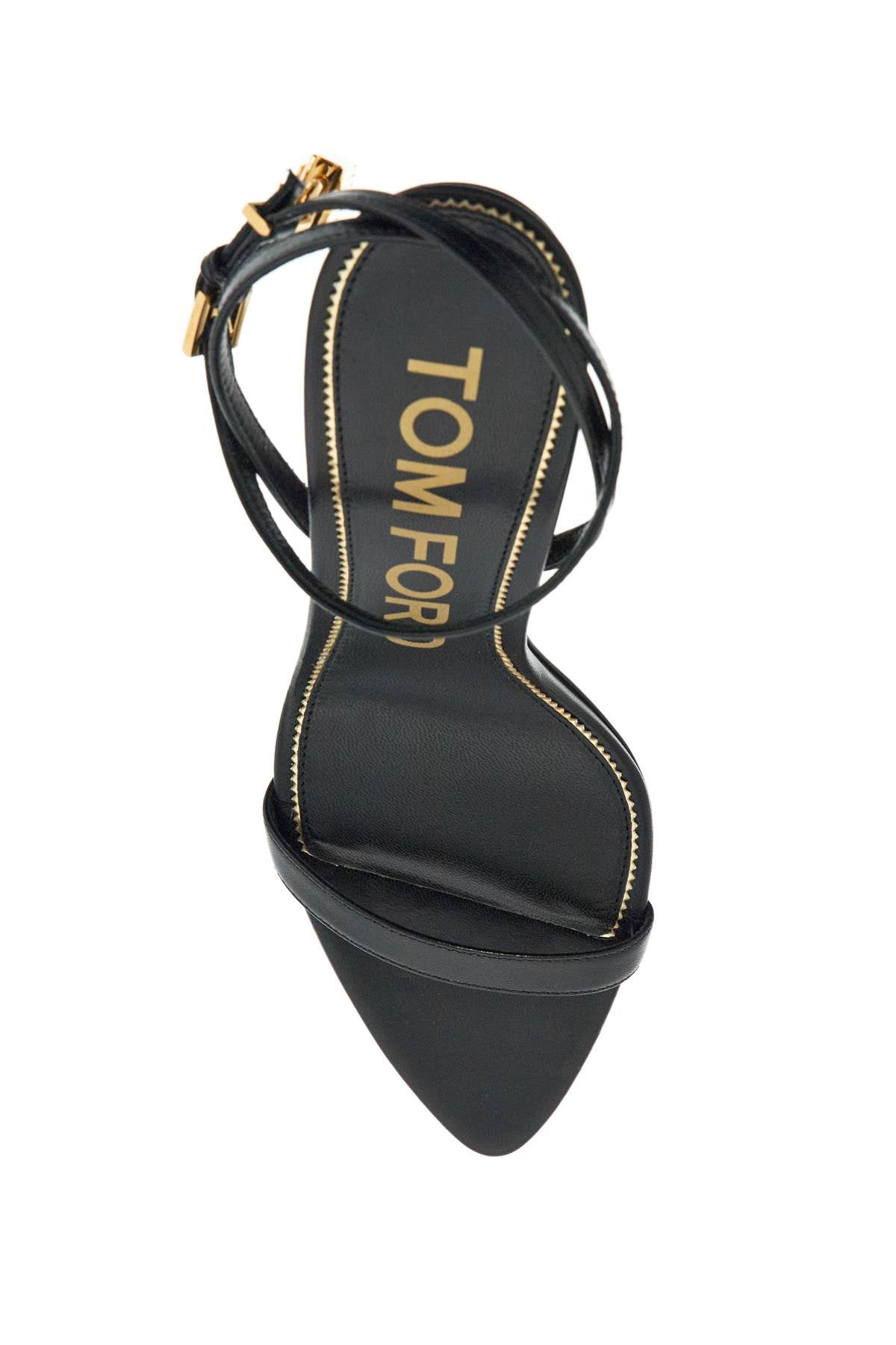 TOM FORD women's sandals in black goat leather with 10 cm heel. Italian elegance, comfort, and timeless style. Metallic details and versatile design for formal and casual chic occasions. Authentic luxury for art lovers.