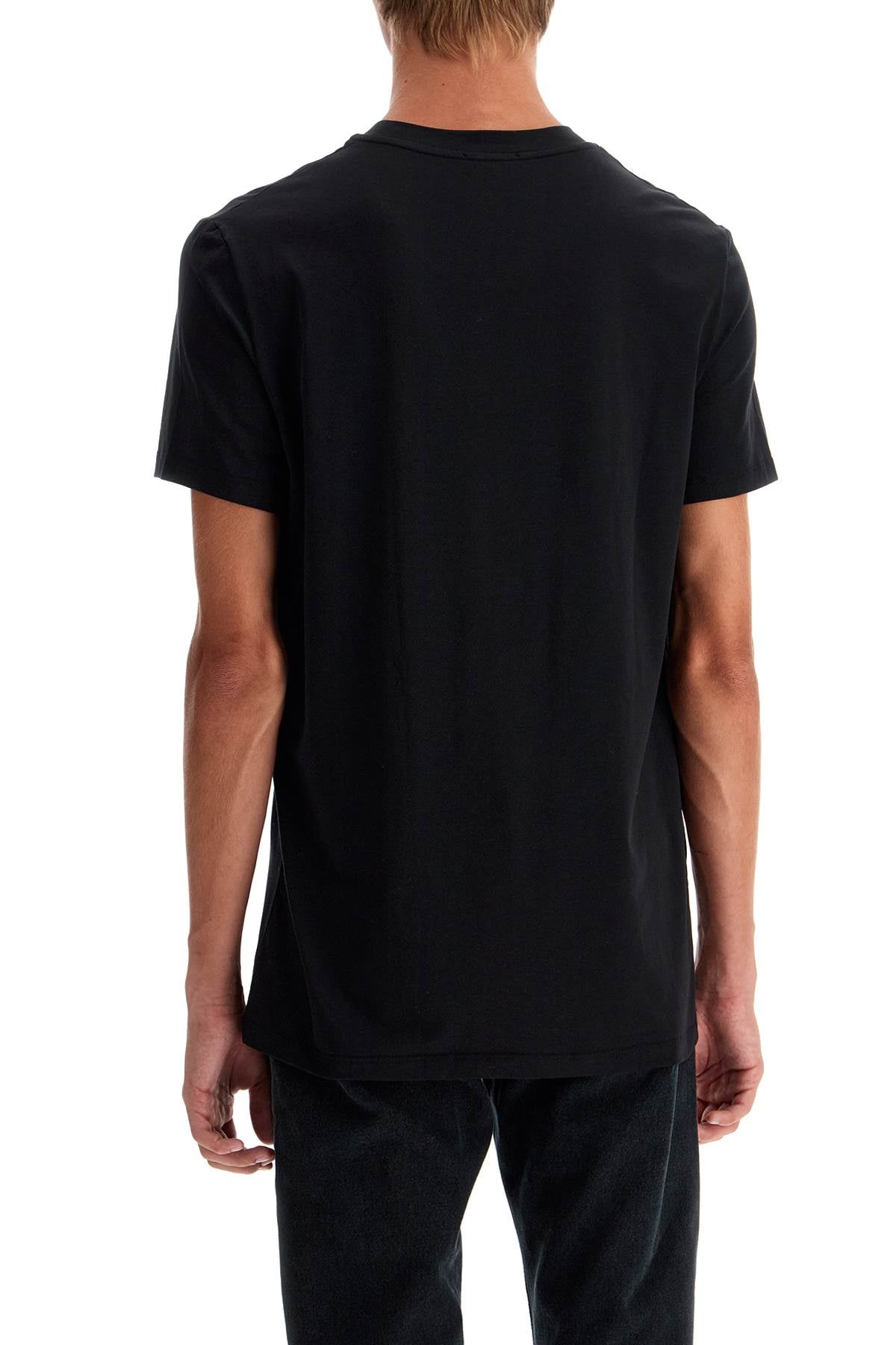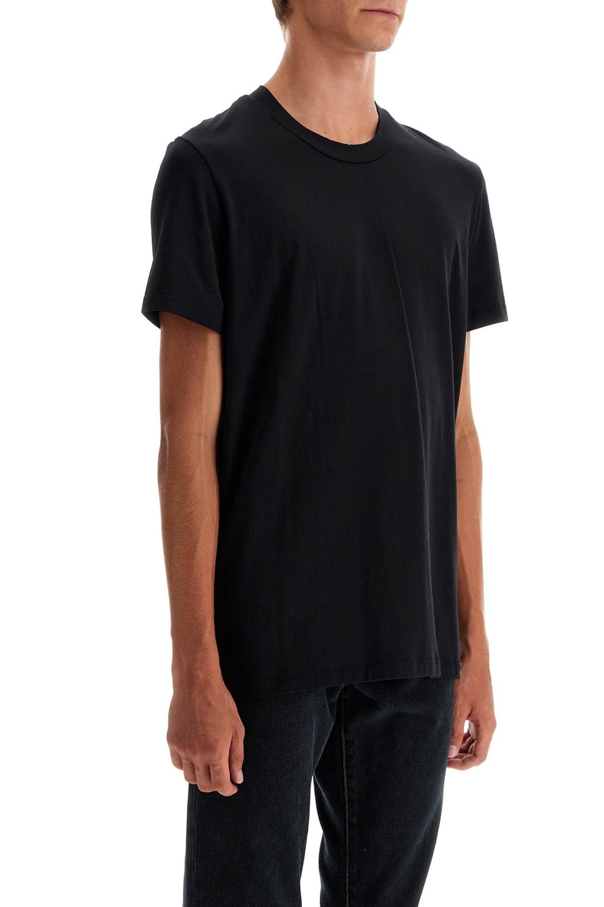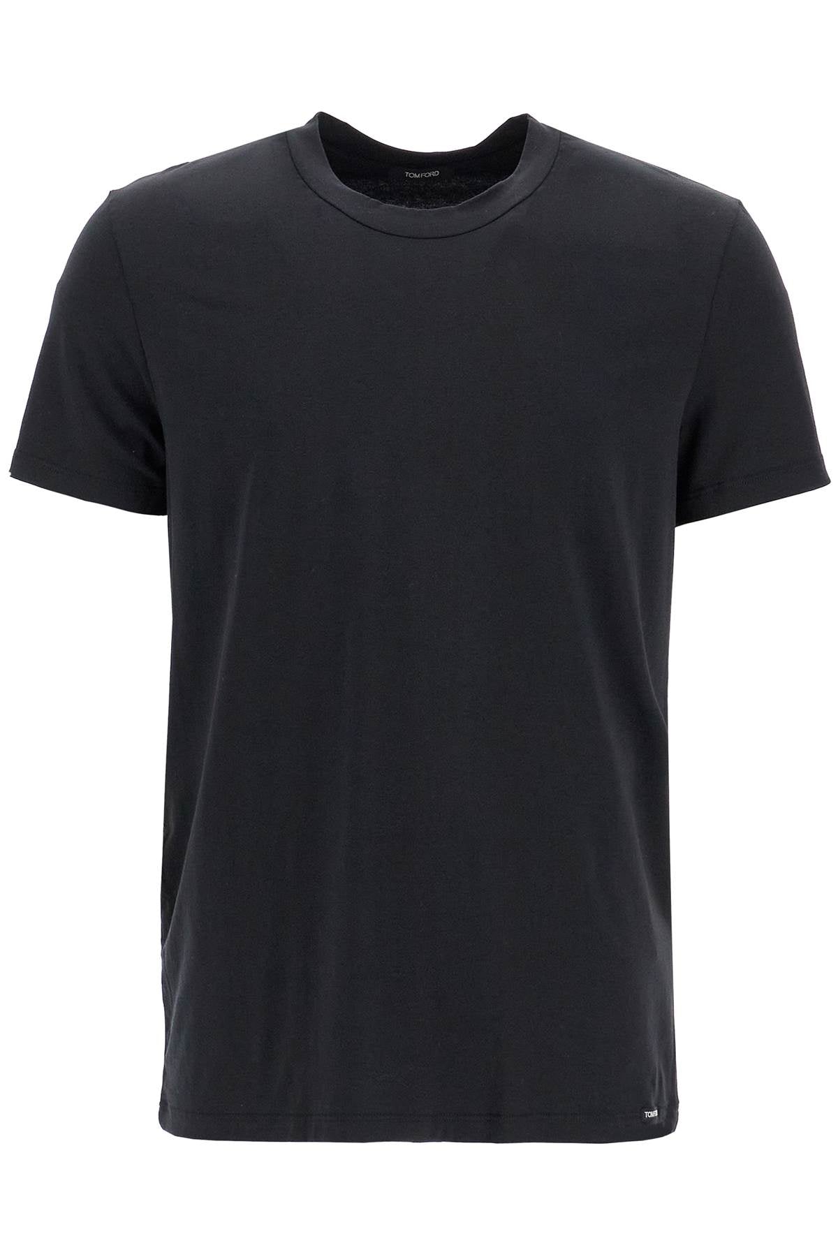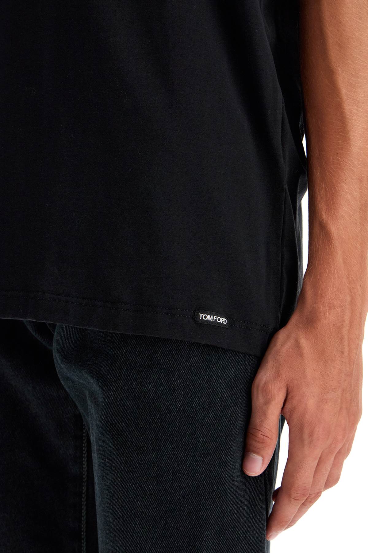 The Tom Ford classic crew neck undershirt is made of lightweight stretch jersey cotton and modal, with a logo label applied at the bottom. The model is 187 cm tall and wears size L.