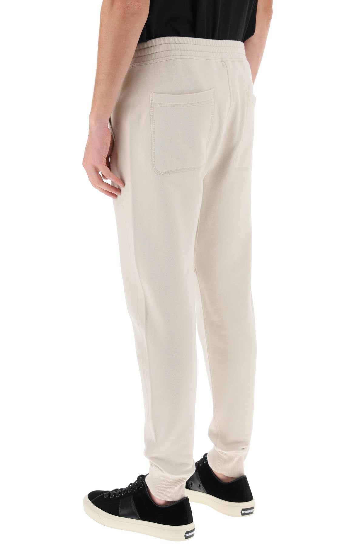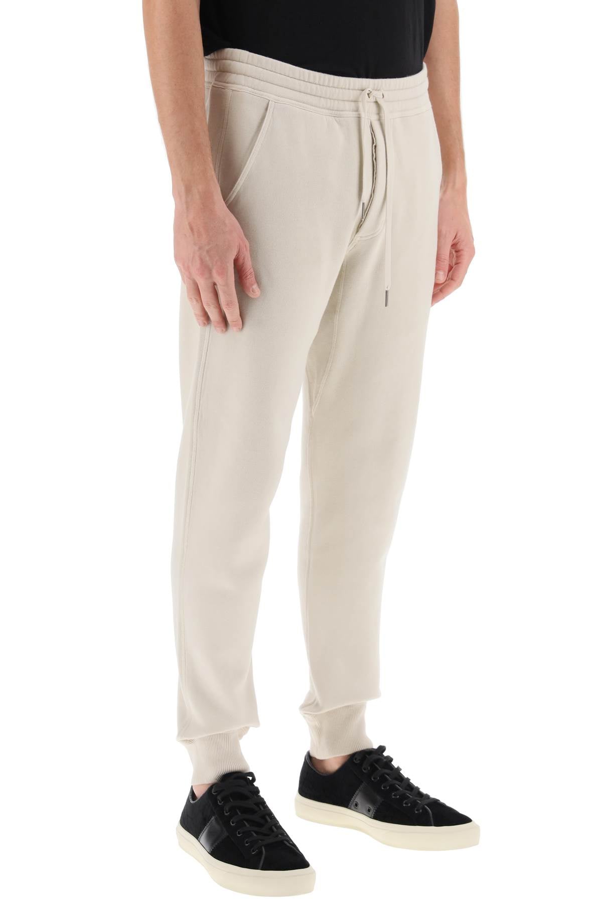 Made from super soft, mid-weight cotton jersey fleece, these Tom Ford drawstring sweatpants feature a tapered cut finished with ribbed cuffs and an elasticated low-rise waist. Its sporty design is finished with four pockets and a button fly. Regular fit. The model is 187 cm tall and wears a size IT 48.