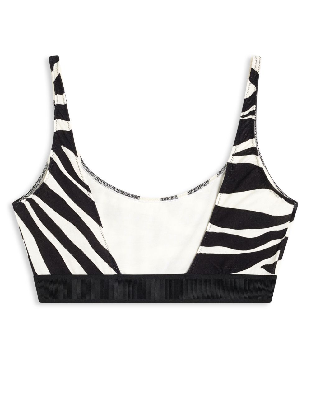 black/white stretch-design zebra print logo waistband thin shoulder straps round neck open back cropped