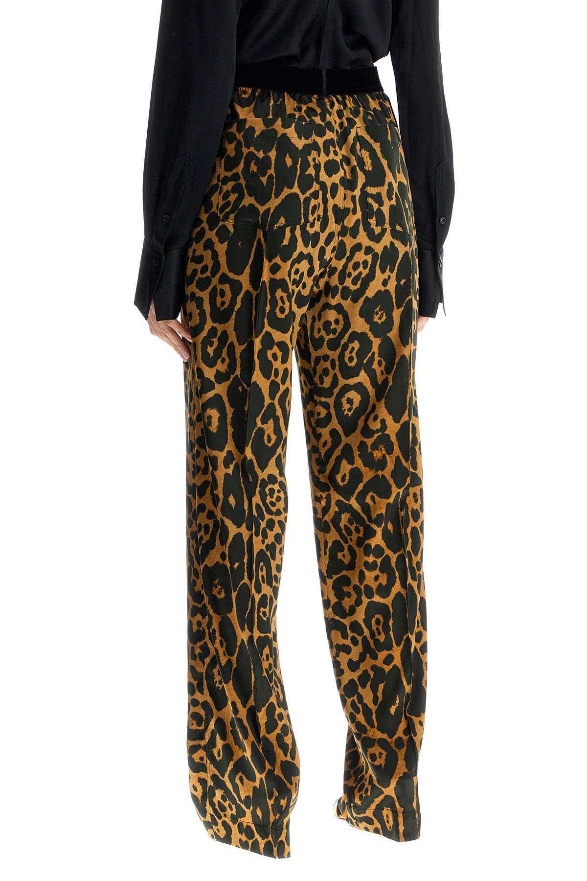 Tom Ford wide leg leopard print silk pants in camel and black