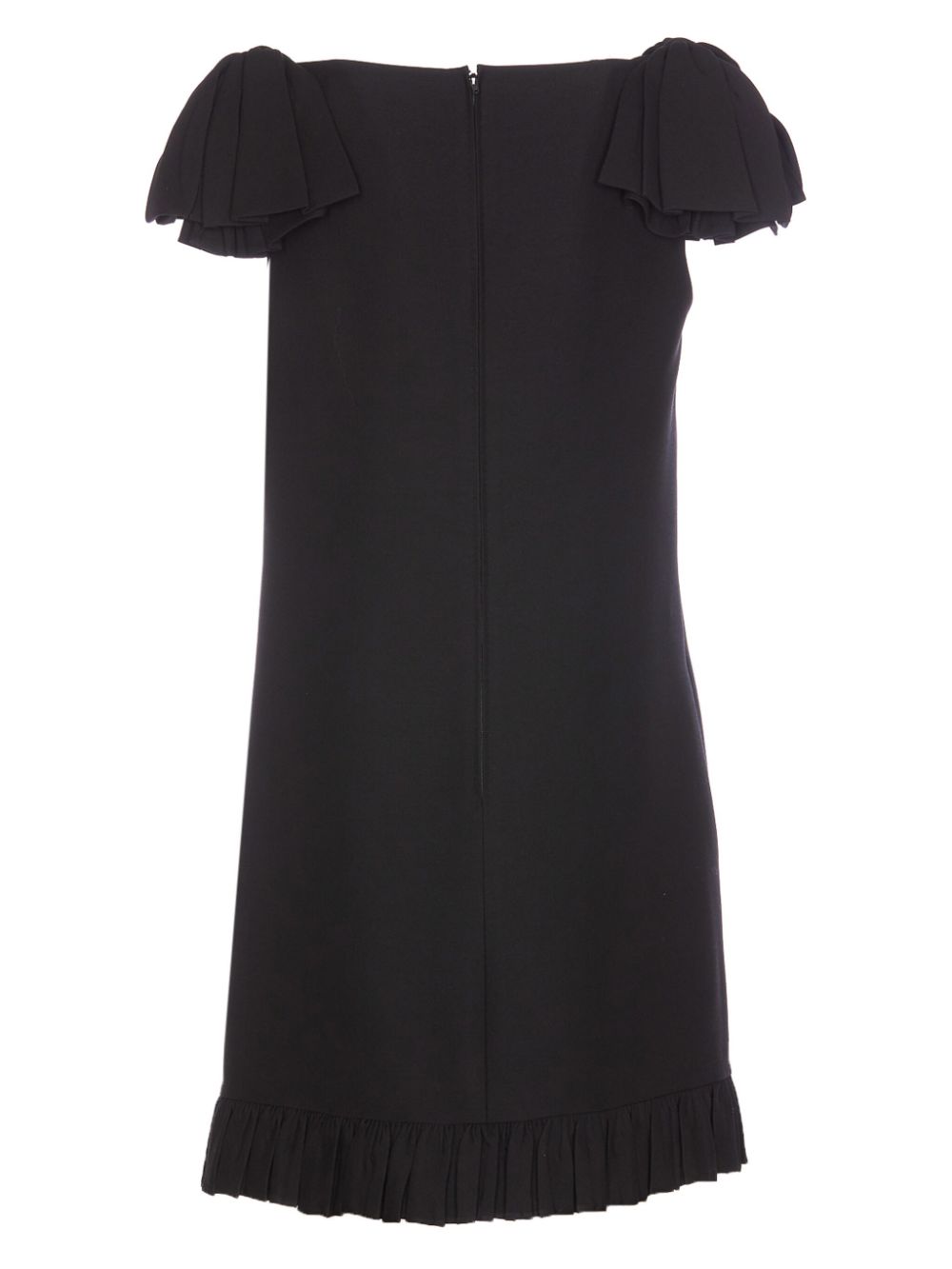 black concealed rear zip fastening ruffled detailing boat neck short sleeves Size and Fit - This piece fits true to size. We recommend you get your regular size. Model is 1,75m / 5ft 8in wearing size 40 (IT)