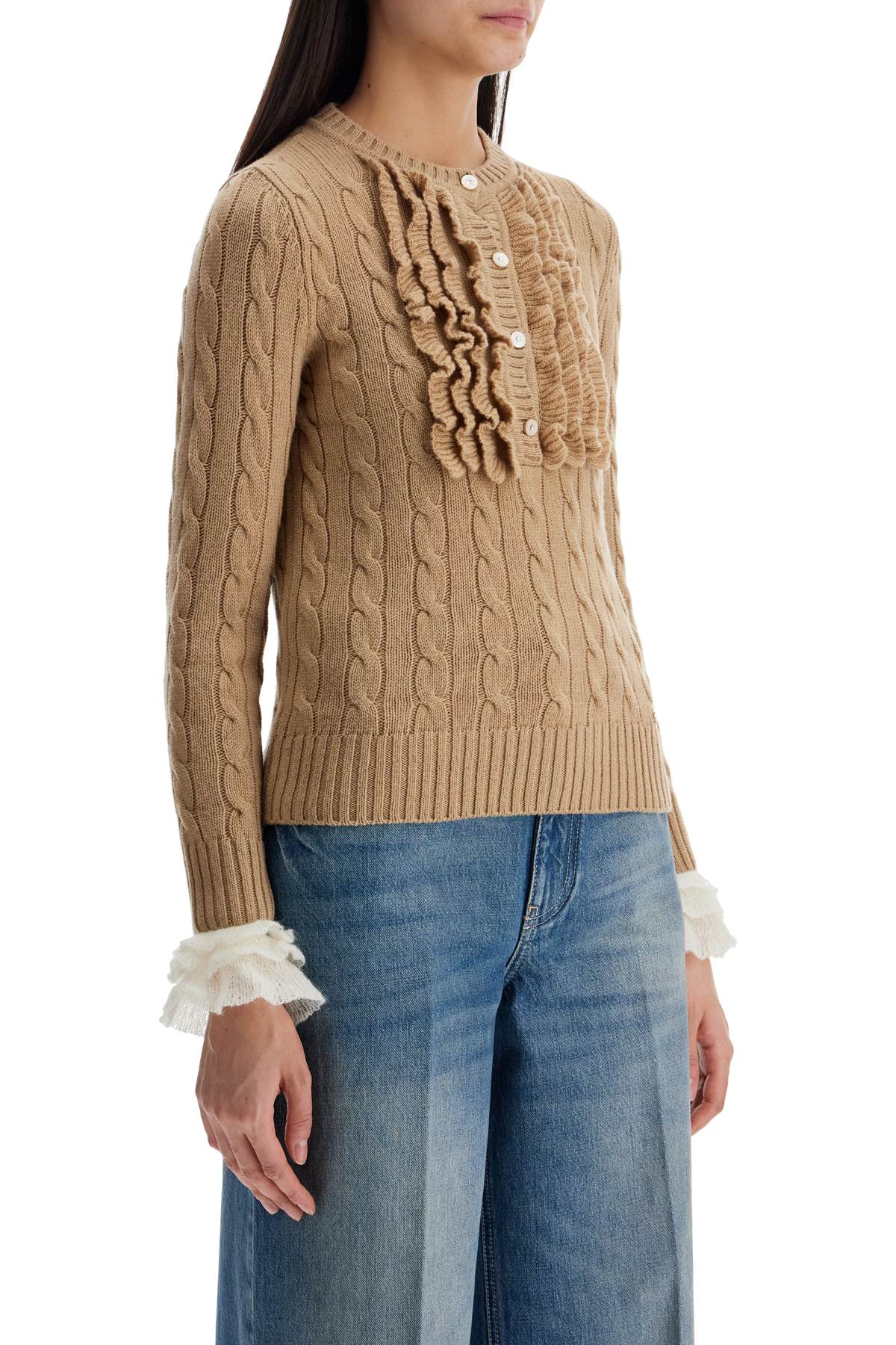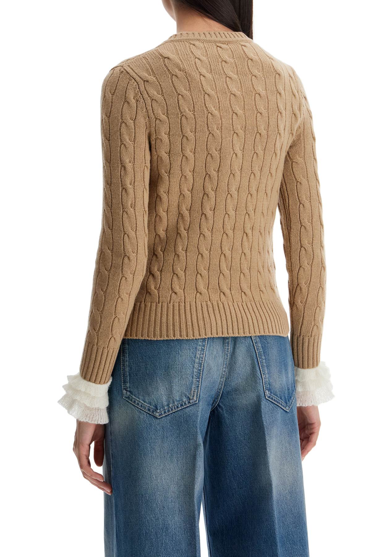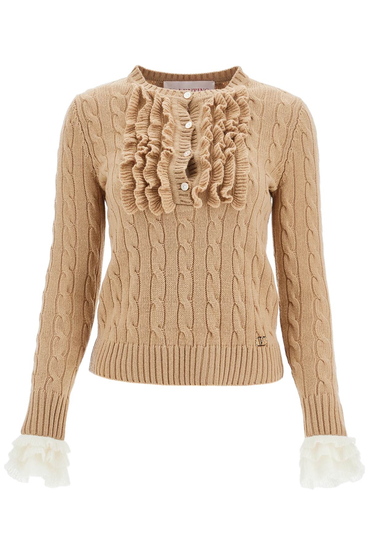 Valentino Garavani beige and ivory cable knit crew neck sweater