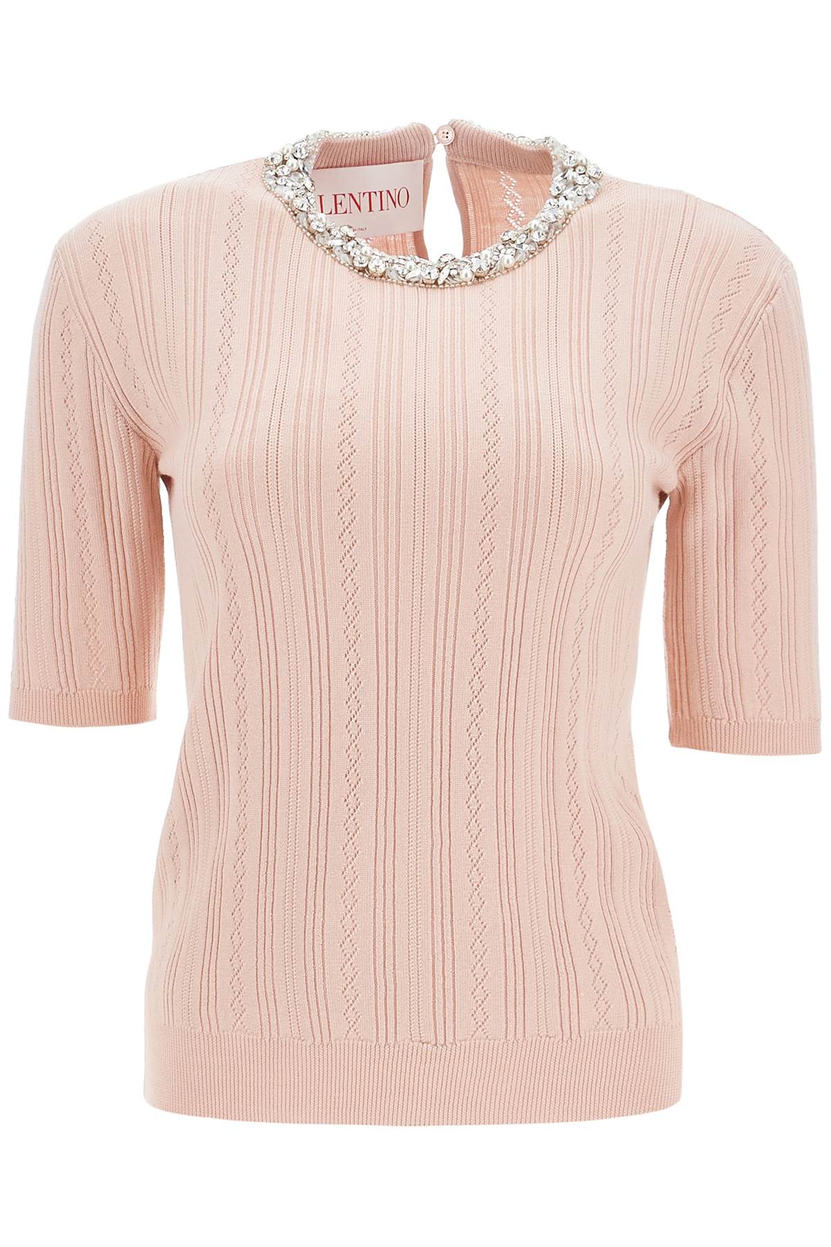 The Valentino Garavani sweater offers timeless elegance. In fine wool with vertical stripes and rhinestone details, it combines Italian style and comfort. Perfect for any occasion, it elevates the look with refined luxury.