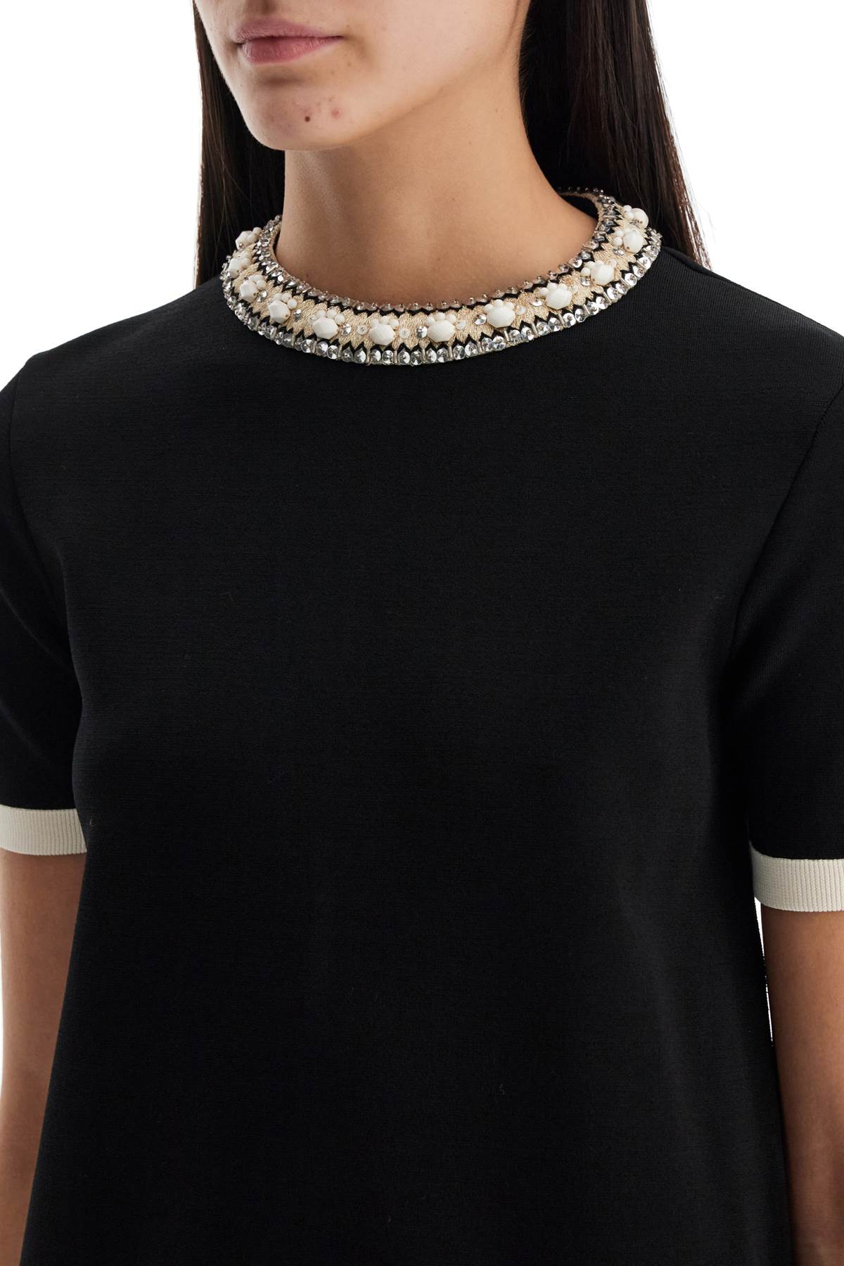Valentino Garavani black and ivory knit dress with round neck in viscose