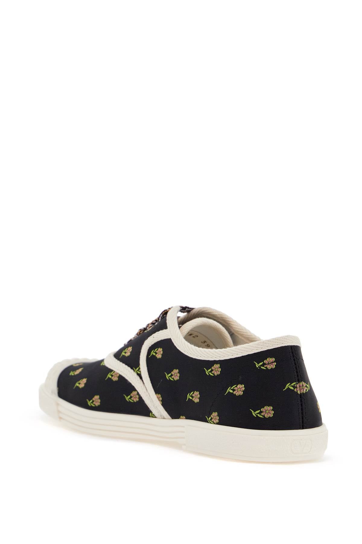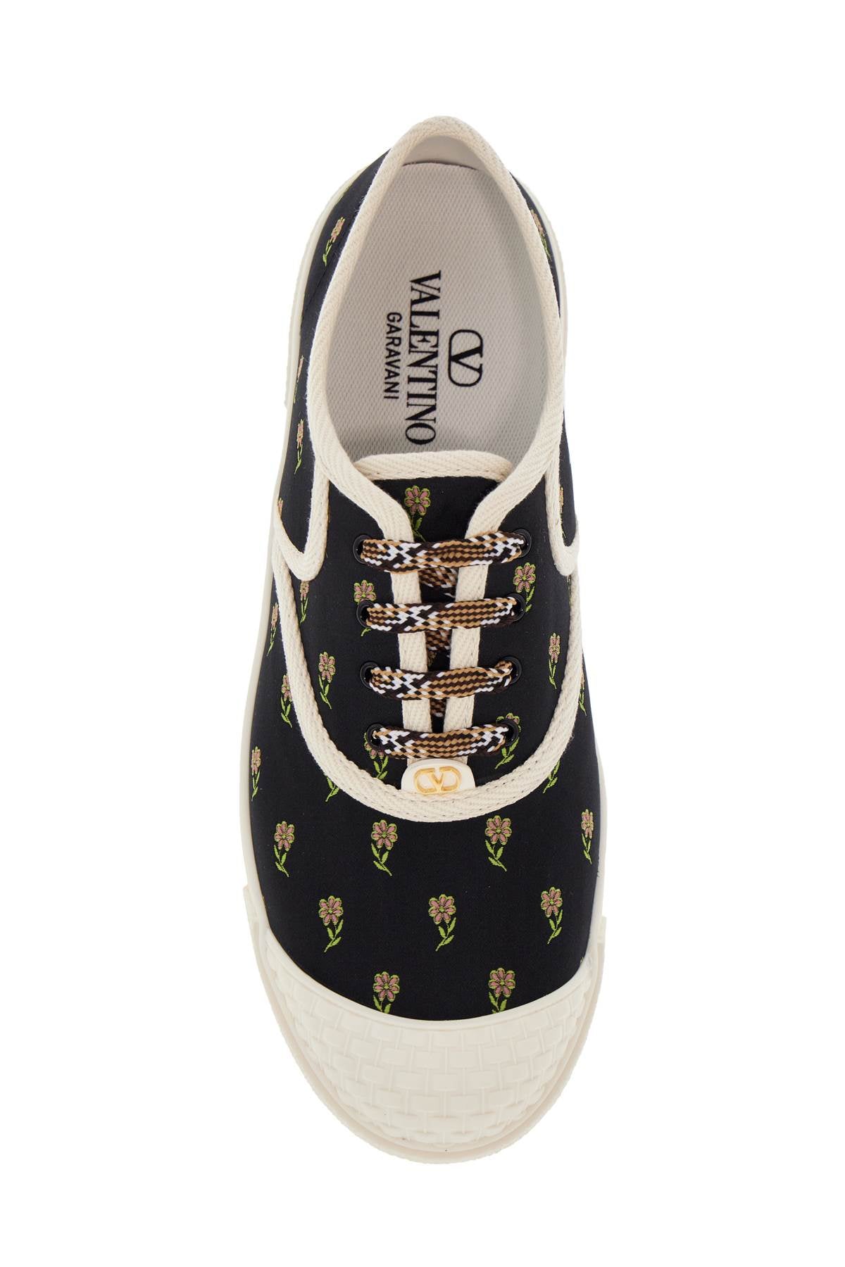 Valentino Garavani black cotton sneakers with floral pattern and rubber sole
