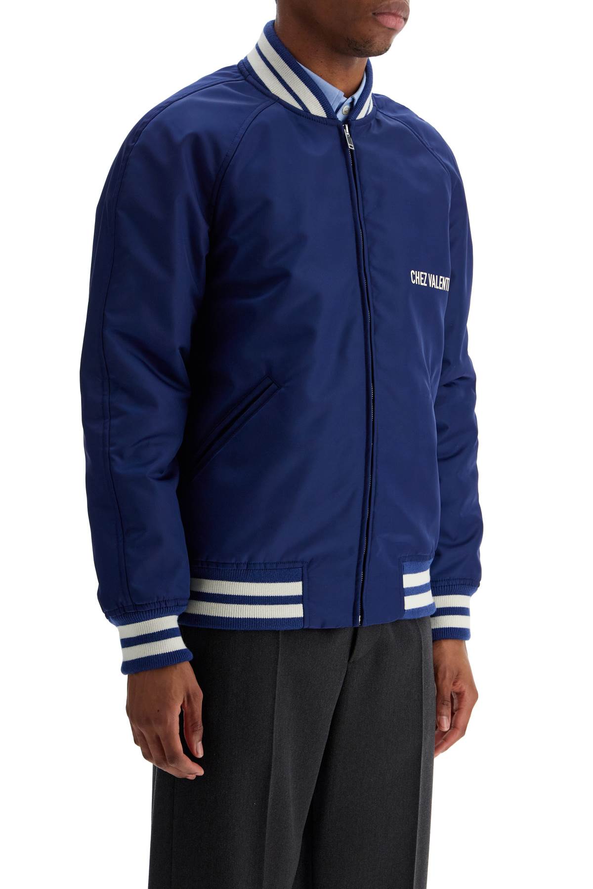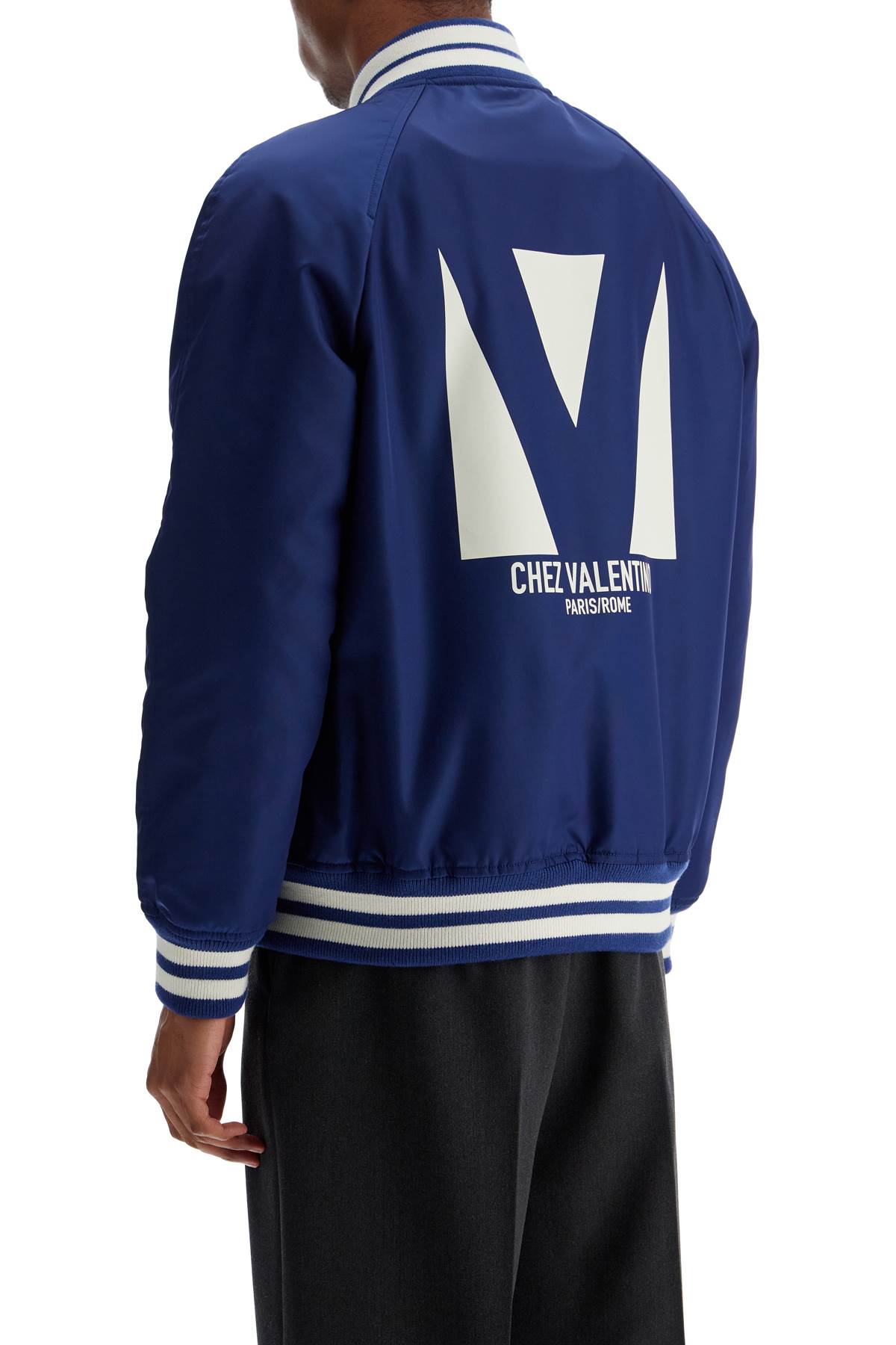 The Valentino Garavani blue bomber combines style and comfort. Made of polyamide with a distinctive logo for spring summer fashion 2025. Versatile and refined for the demanding cultural collector.