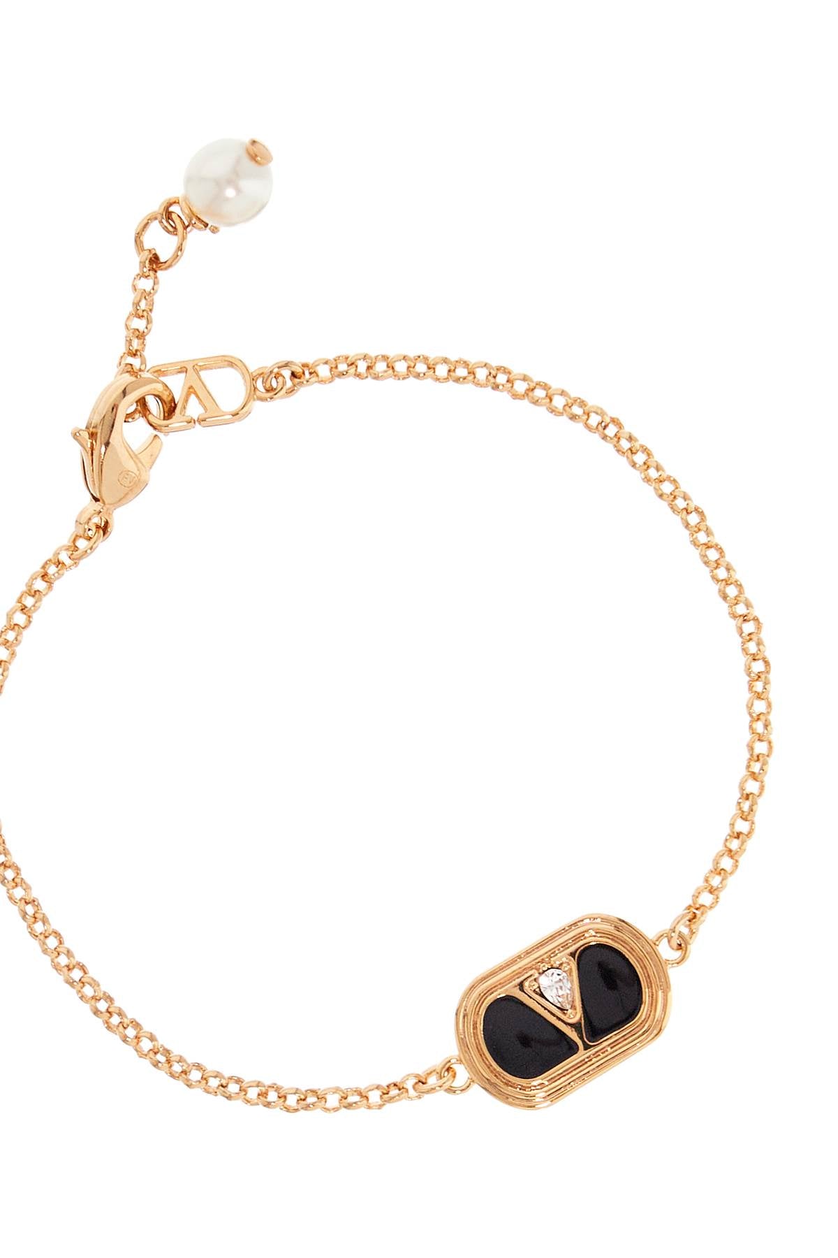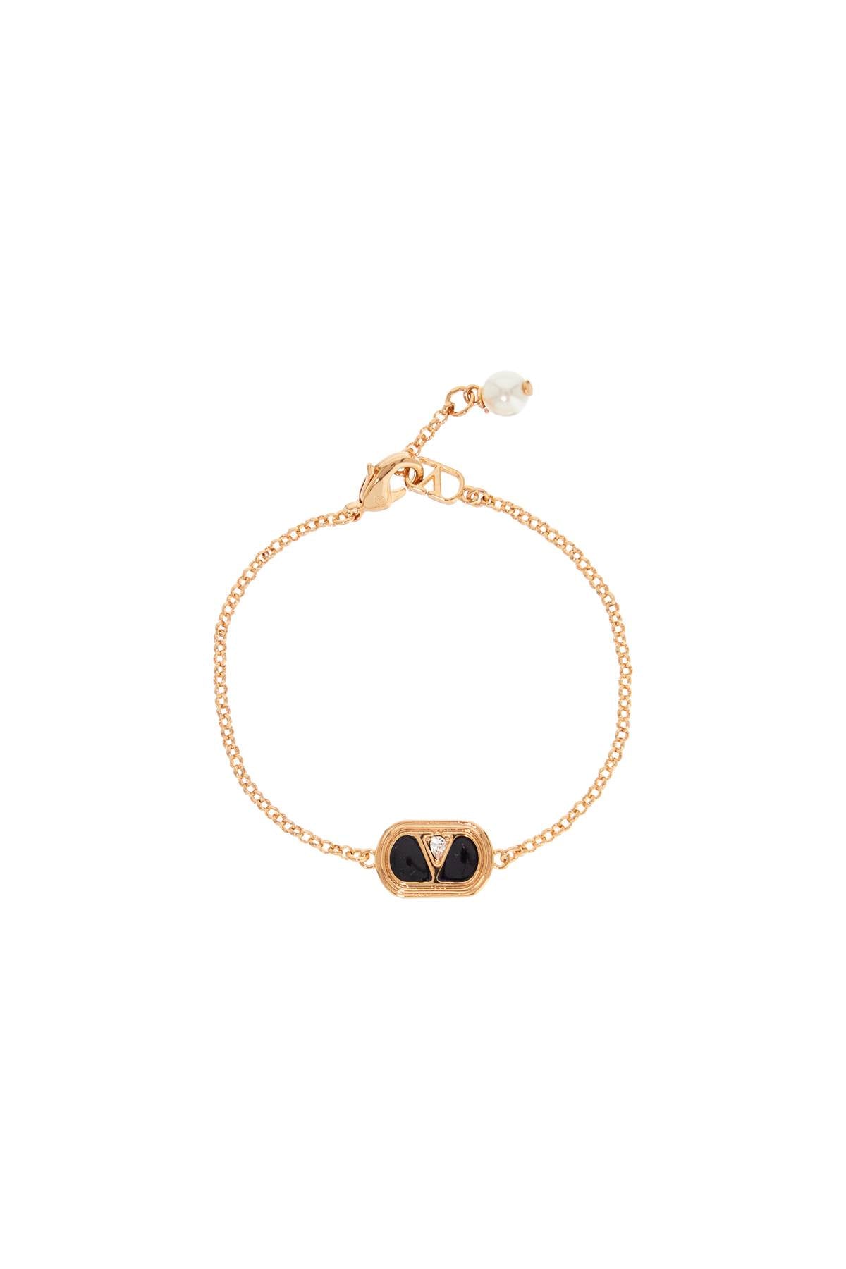 Valentino Garavani bracciale elegante oro e nero con cristalli e perla